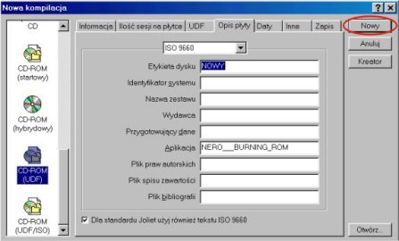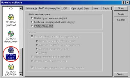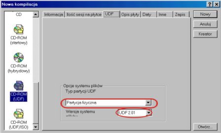 Z okna wyboru kompilacji wybieramy opcję CD-ROM (UDF) lub CD-ROM (UDF/ISO).