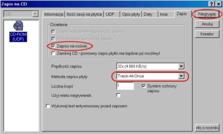 Przy nagrywaniu ostatniej sesji włączamy opcję Zamknij CD.