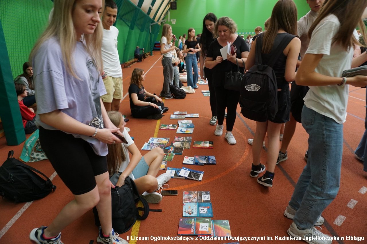 W pierwszym tygodniu nowego roku szkolnego tj. 7 i 8 września 2023r. w naszej szkole zorganizowany został kiermasz podręczników szkolnych. Jak co roku i tym razem cieszył się dużym zainteresowaniem kupujących i sprzedających. Na kiermaszu pojawili się nie tylko obecni uczniowie, ale również rodzice i sporo tegorocznych absolwentów.