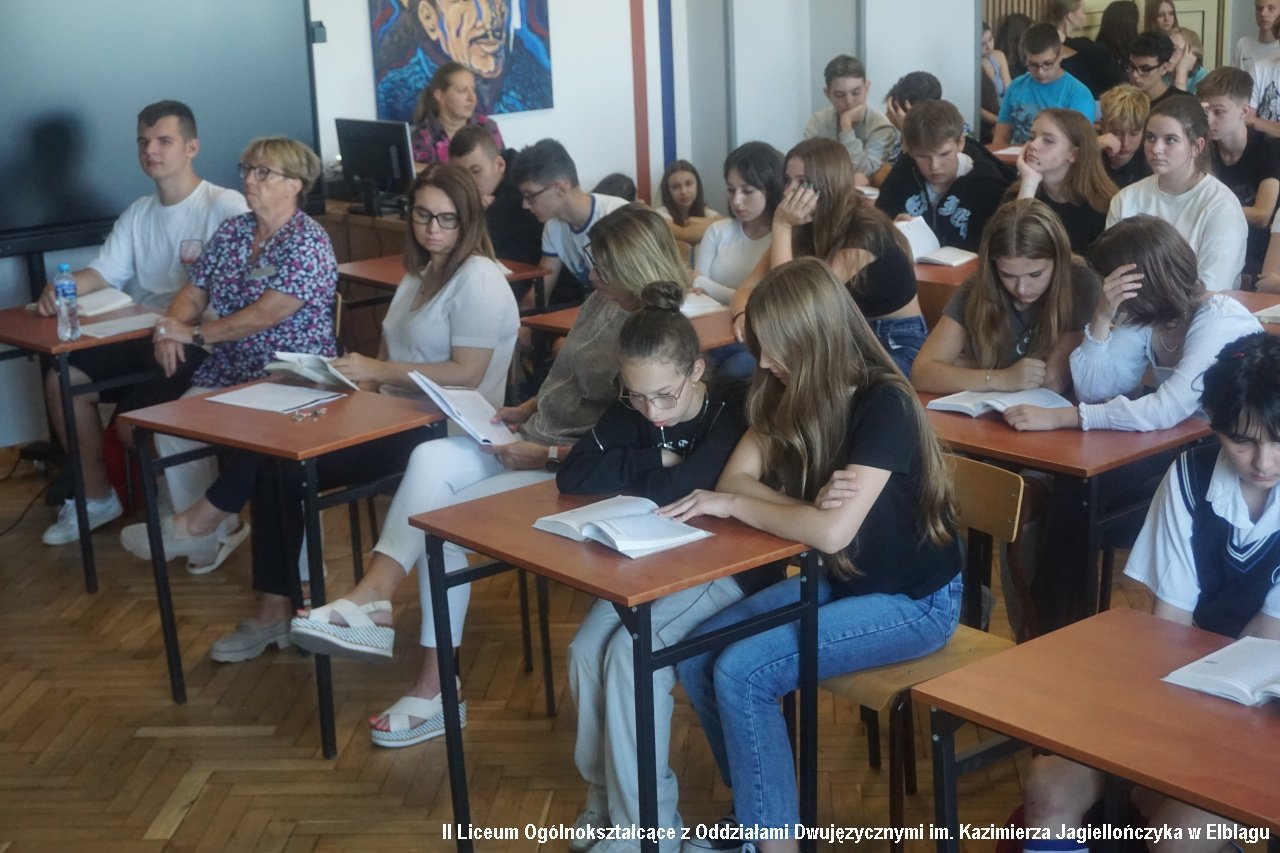 Lekturę na głos czytali uczniowie :Aleksandra Kociąba 2f, Paulina Parczewska 2f, Katarzyna Skowrońska 3b, Mateusz Tocha 3b, Marika Kuriata 3b, Martyna Suzinowicz 3b, Oliwia Sinkiewicz 3b oraz Maja Lender 3d