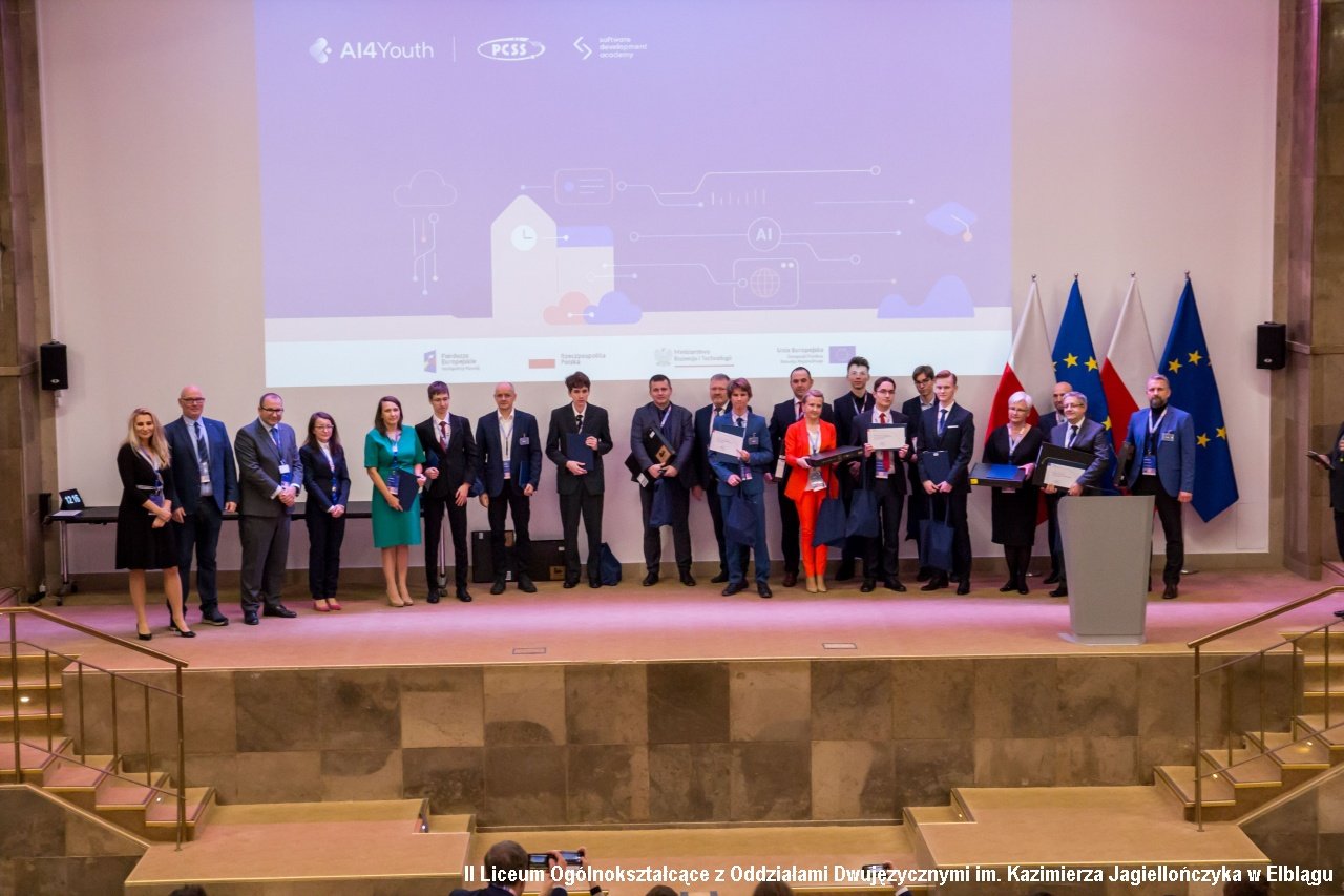 W Ministerstwie Rozwoju i Technologii odbył się finał projektu AI for Youth Sztuczna Inteligencja dla młodzieży. AI for Youth to pilotażowy projekt realizowany przez Poznańskie Centrum Superkomputerowo-Sieciowe oraz firmę SDA na zlecenie Ministerstwa Rozwoju i Technologii, którego celem było wyposażenie uczniów i nauczycieli w kompetencje z zakresu sztucznej inteligencji.