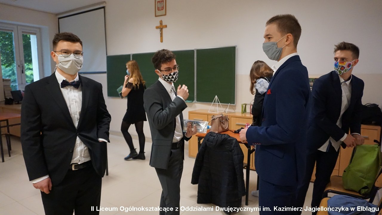 Klasa zadbała o szczegóły patriotyczne, wydarzenia z ważnych momentów historii Polski i wkomponowała je w matematyczny charakter gabinetu. Była tam zatem oś historii Polski, były figury geometryczne symbolizujące różne zawiłości naszego dziedzictwa. W sposób szczególny w projekt zaangażowana była wychowawczyni klasy – pani Magdalena Adryjanek. Brawo!