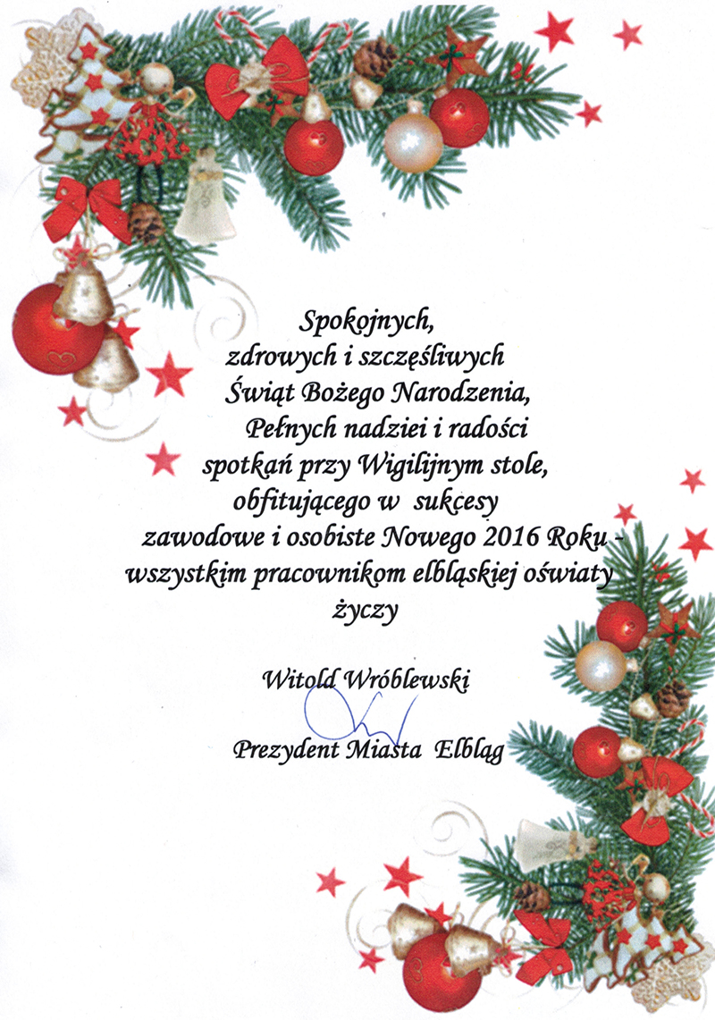Życzenia Prezydenta Miasta Elbląga