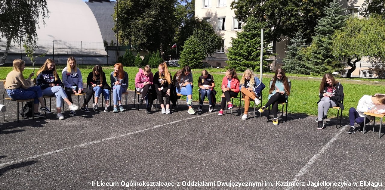 W innym zadaniu nasi pierwszoklasiści dowiedzieli się, co ich łączy, a co dzieli. Opowiedzieli również o swoich obawach i oczekiwaniach związanych z nauką w II LO. Humory dopisały. Pogoda była jeszcze wakacyjna. Teraz codzienność szkolna powinna być weselsza.