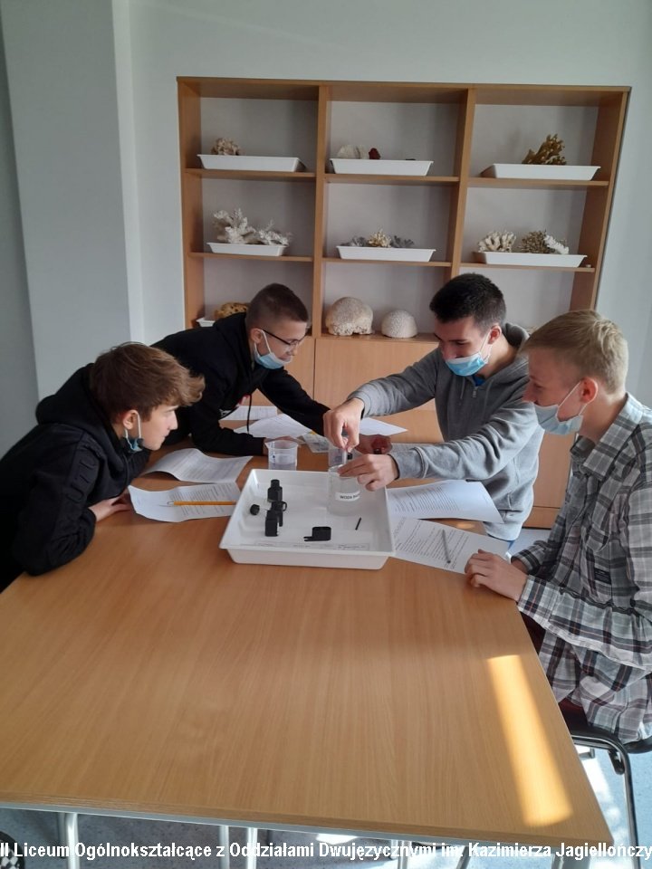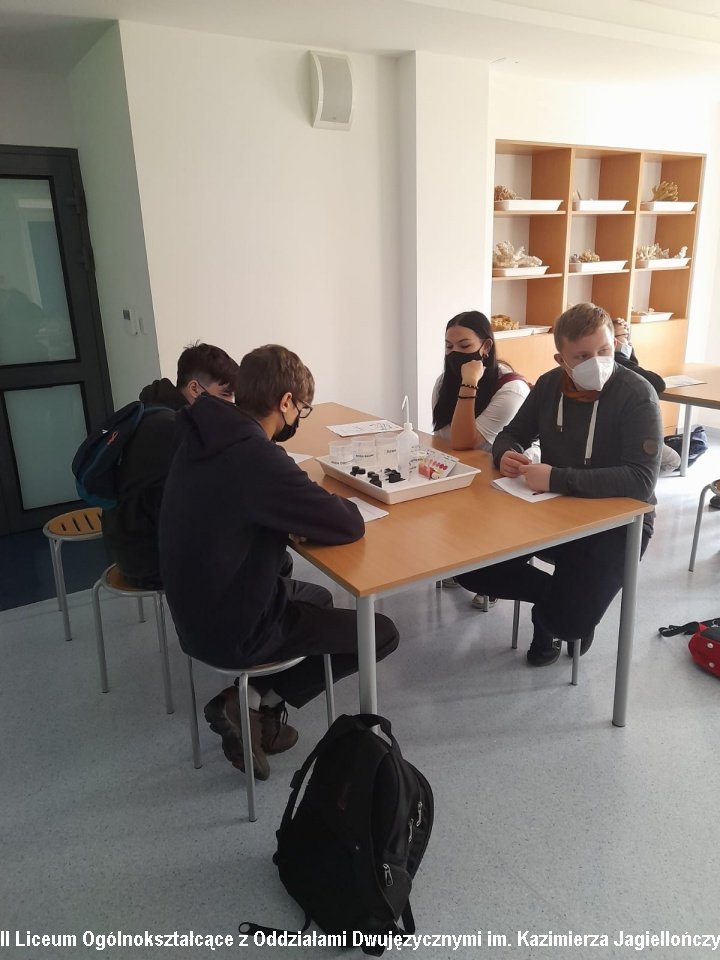 Nauka poza szkołą – to jest to co lubimy najbardziej. W ostatni wtorek (5.10.2021) wybraliśmy się całą klasą do Gdyni. Pogoda rano nie była zachęcająca. Okropnie wiało. Nie była to jednak żadna przeszkoda, ponieważ całe przedpołudnie spędziliśmy w Akwarium Gdyńskim – oglądaliśmy okazy bardzo ciekawych zwierząt morskich (płaszczki, ogromne węgorze elektryczne, piranie i piękne ukwiały) oraz uczestniczyliśmy w warsztatach badawczych pod nazwą „Chemia wody”. Mieliśmy okazję zbadać i porównać właściwości fizyko-chemiczne wody z akwarium oraz wody morskiej. Okazało się, że sytuacja naszego Bałtyku jest umiarkowanie trudna. Wprawdzie poziom azotanów i fosforanów przekracza nieco normę, ale pozostałe parametry nie budzą zastrzeżeń.