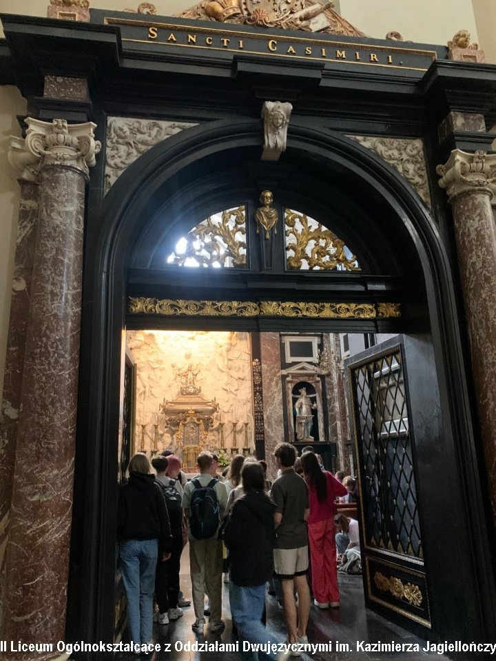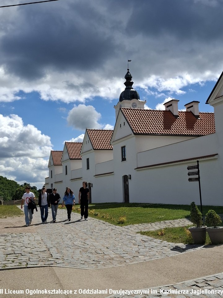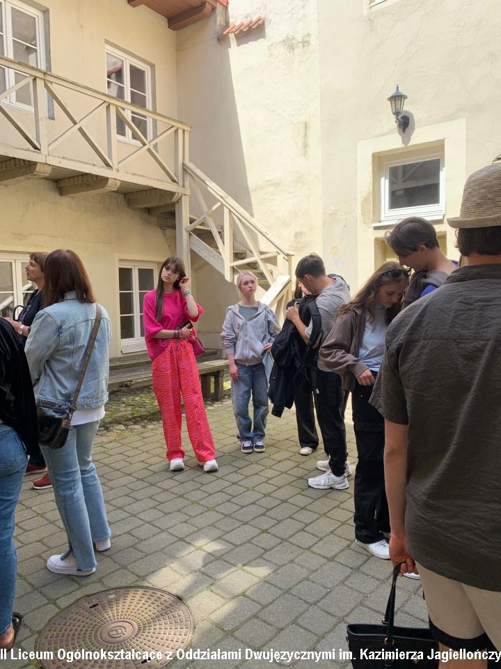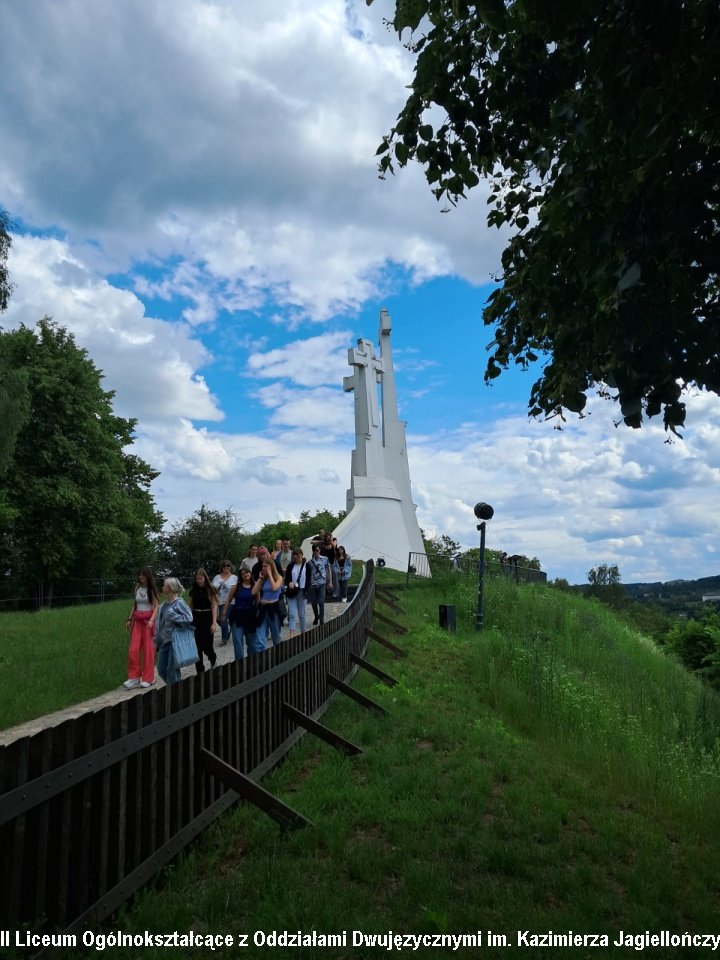 Następnego dnia wyjazd już o 6.00. Nie obyło się bez spóźnień, więc kara musiała być. A że kara musi być dotkliwa i długotrwała spóźnialscy następnego dnia odtańczyli dla nas piękny taniec. Film również w galerii. Zwiedzanie Wilna zaczęliśmy od Cmentarza na Rossie – odwiedziliśmy grób, w którym spoczywa serce Józefa Piłsudskiego i jego Matka, a następnie podziwialiśmy grobowce. Na większości z nich odnajdywaliśmy polskie nazwiska. Następnie pojechaliśmy na Starówkę. Tam Ostra Brama z cudownym wizerunkiem Matki Boskiej Miłosierdzia (religia), Cerkiew Świętego Ducha gdzie trafiliśmy akurat na liturgię (religioznawstwo), Cela Konrada (język polski), Muzeum Mickiewicza (które niestety jest czasowo zamknięte) (język polski), plac Ratuszowy (historia) i Katedra Wileńska z relikwiami św. Kazimierza (syna króla Kazimierza IV Jagiellończyka – historia). Potem czas wolny (jedzonko, zakupy itp. – polecamy litewskie cepeliny) i wycieczka na górę Trzech Krzyży (historia w korelacji z wychowaniem fizycznym J) Następny punkt programu to Troki – piękne jezioro Gelwe, zamek zbudowany przez księcia Witolda i karaimskie kibiny (dla ciekawych co to takiego podrzucamy link https://www.obzarciuch.pl/2016/01/kibiny.html) . Wróciliśmy zmęczeni, ale pełni wrażeń.