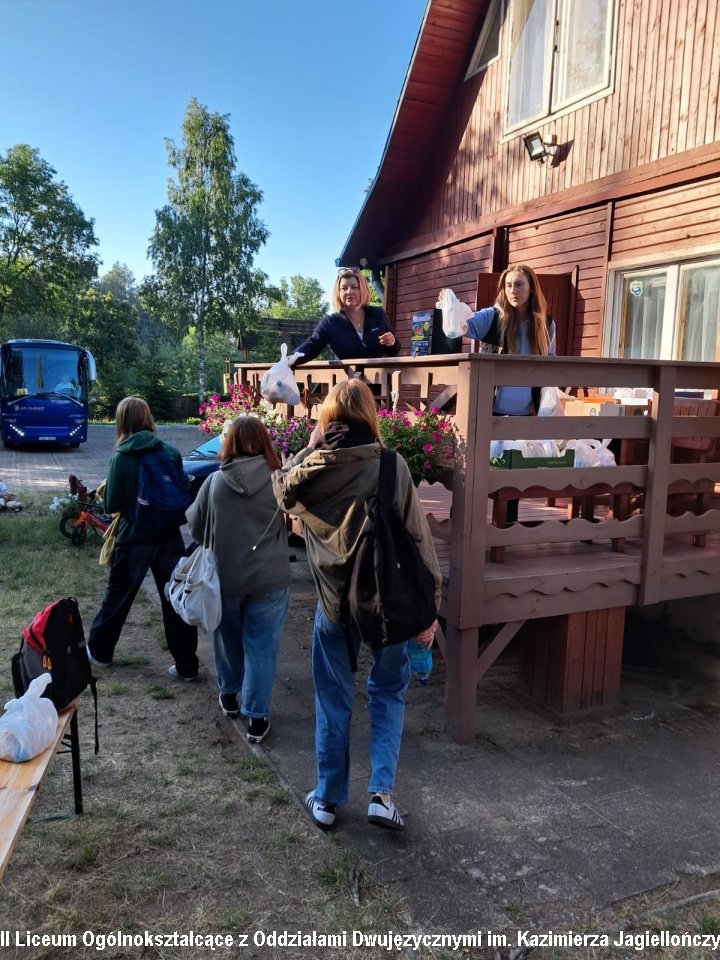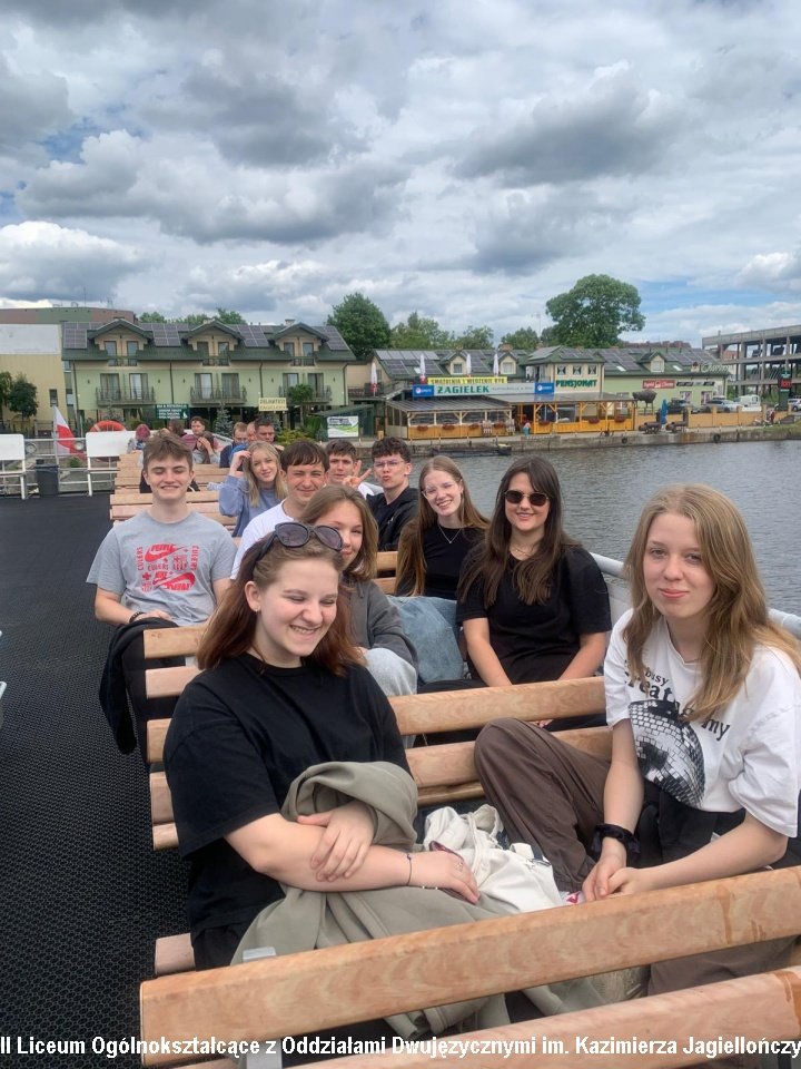 Pierwszy dzień, dzień wyjazdu zaczęliśmy od poszukiwań. Zgubił nam się ksiądz Marek. Na szczęście w ciągu kilku minut się odnalazł i mogliśmy ruszyć w drogę. Pierwszy punkt programu to Augustów. Jak myślicie? Jaka lekcja? Oczywiście biologia! Podczas rejsu statkiem po jeziorach Necko i Białym byliśmy ciągle zasypywani pytaniami: A jak się nazywa ta roślinka? A jaki ma miękisz? A co to aerenchyma i po co roślinkom? Ufffff…… Nie możemy jednak narzekać, wystarczyło też czasu na relaks i podziwianie krajobrazów. Po rejsie dalej w drogę, do ośrodka Gieret w Gibach, tuż przy polsko-litewskiej granicy. I tu już zaczyna się matematyka – bo granice (limesyJ) jak najbardziej w programie klasy 3f. Tak nawiasem mówiąc polecamy ośrodek Gieret https://www.gieret.com/ - przesympatyczni właściciele i piękna okolica.