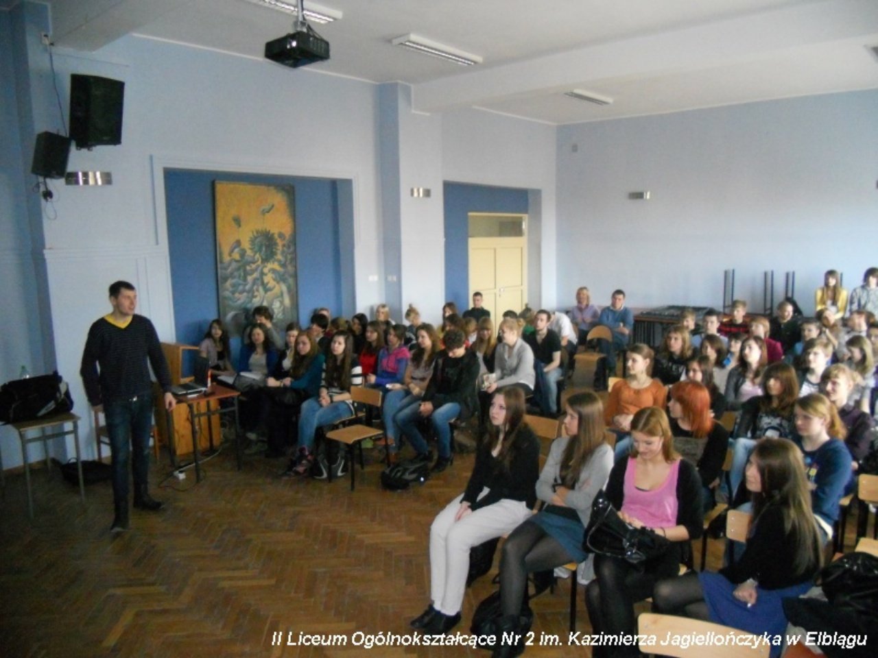 Gimnazjaliści mogli poznać ofertę edukacyjną II LO, obejrzeć komediowe przedstawienie szkolne pt. „Łopata elbląskiego piekarczyka", wziąć udział w zajęciach i doświadczeniach, grach logicznych i quizach. Ważnym elementem zwiedzania szkoły była bezpośrednia rozmowa z przedstawicielami różnych klas.