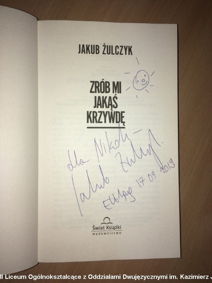 Wieczór z Jakubem Żulczykiem przybliżył nam osobowość autora, nie tylko jako twórcy książek, ale także jako człowieka, który mimo pochodzenia z małej wsi, osiągnął duży sukces. To było naprawdę emocjonujące i cudowne spotkanie.