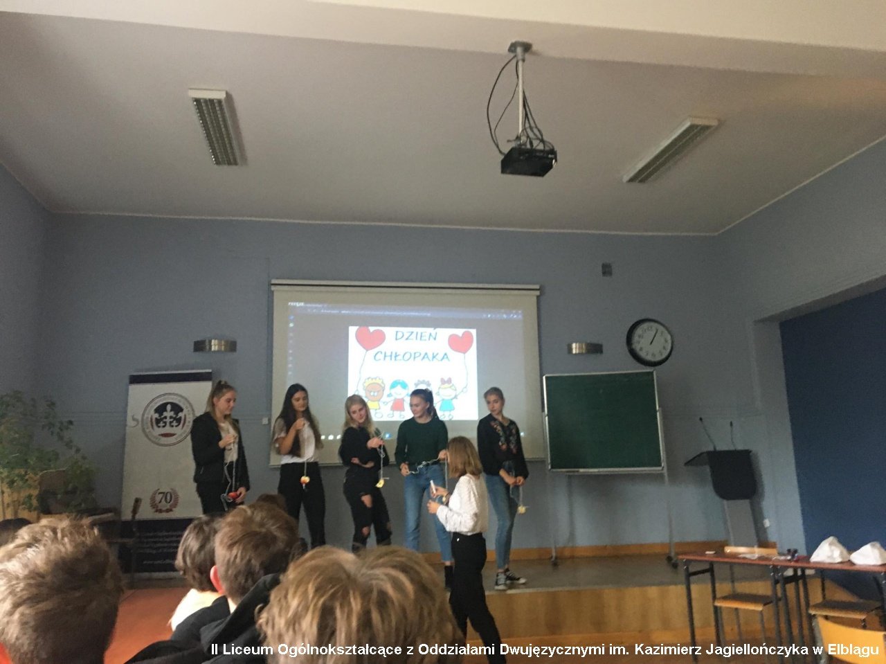 Dziewczyny z 1B postanowiły zaskoczyć swoich klasowych chłopaków i zorganizowały niespodziankę w postaci konkursu - było jedzenie ptysiów na czas, gryzienie jabłek na sznurku, zagryzanie pikantnych papryczek i dość wymagający quiz ------- panowie dali radę a w nagrodę zjedli po smacznej pizzy którą, jako prawdziwi gentlemani, podzielili się z dziewczynami i ze mną - thanks :)