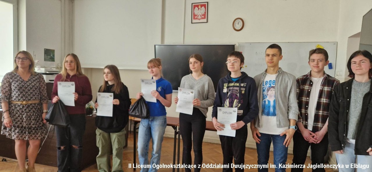 Ania Wlizło, Nina Wojturska, Mikołaj Suszek, Mikołaj Panfil, Bartek Karwowski, Przemek Pindral, Mikołaj Warczak i Konrad Żyhałko wraz z p. Katarzyną Zezulą.