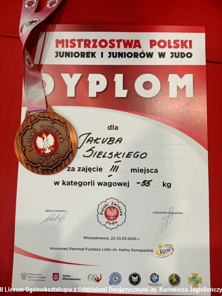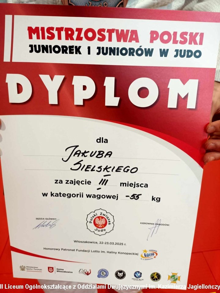 Z wielką radością informuję, że Jakub Sielski z klasy 4C w miniony weekend zdobył brązowy medal ? Mistrzostw Polski juniorów w judo ?, które odbyły się w Włoszczowicach w woj. małopolskim.???