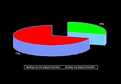 W sierpniu 2000 r. działało 650 detalicznych sklepów internetowych, z których prawie połowa posiada jeden rodzaj artykułu, a mimo to polski handel internetowy ma rozbudowaną ofertę asortymentową. Około 70% sklepów uważa, że posiada stałych klientów – sytuację tą obrazuje wykres.