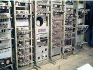 Liebiediew (na drugim planie) przy konsoli MESM. Komputer był szeroko wykorzystywany w programie kosmicznym. Źródła rosyjskie podają, że w Moskwie w roku 1947 powstał lampowy komputer M-1, ale wydaje się że był on wyłącznie urządzeniem eksperymentalnym. Nie wiadomo czy działał, jakie wykonywał operacje - słowem: strogo siekretno.