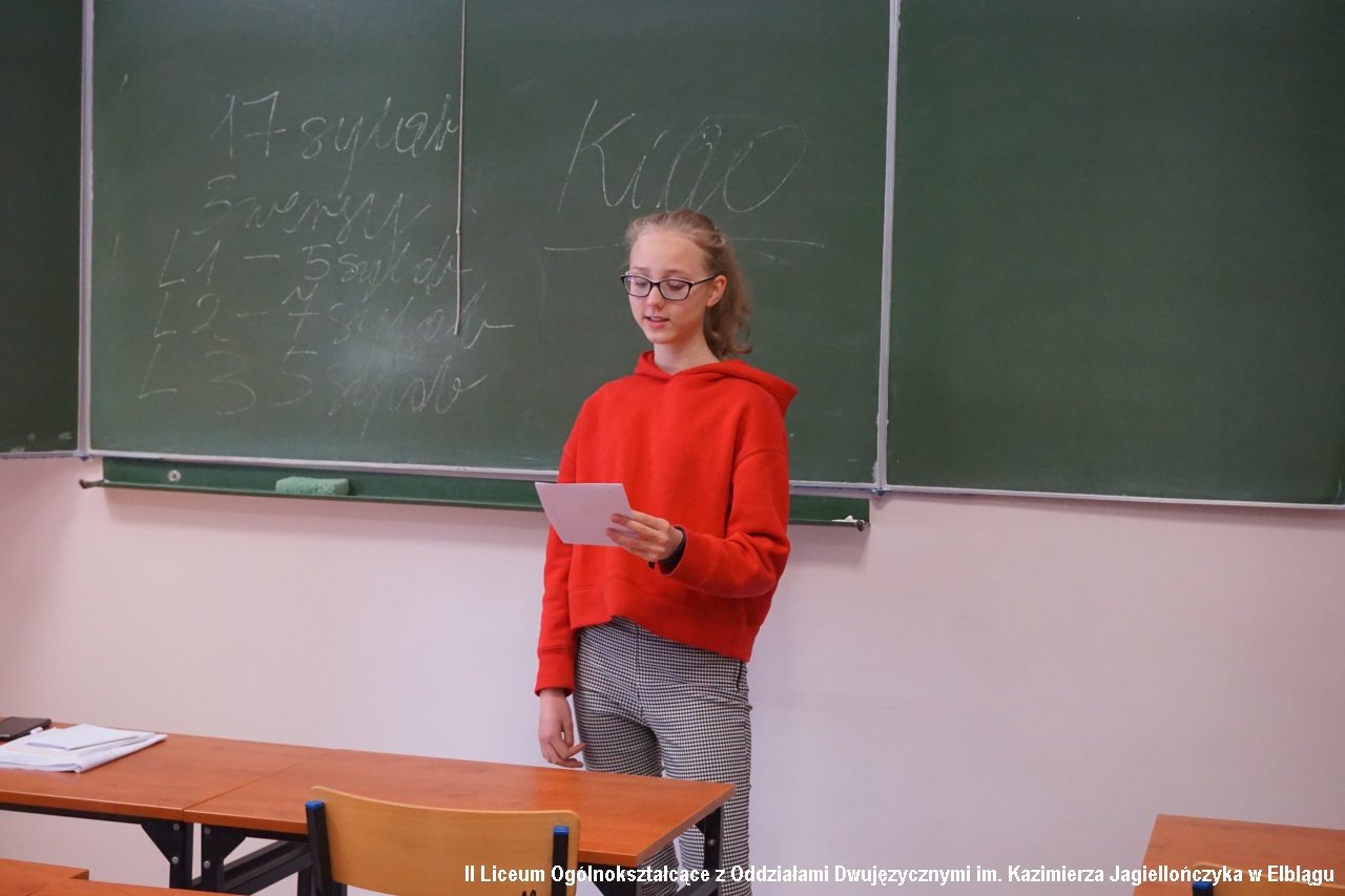Jest to poetka, malarka, animatorka kultury, ilustratorka książek i równocześnie wyjątkowo ciepła i sympatyczna kobieta emanująca ogromem empatii. Autorka zadebiutowała w 2017 roku na łamach 155th WHA Haiga Contest. Napisała 6 tomików o tytułach: Brzydka, Żywot Pliszki, Medalik bez łańcuszka, Juzine, Co pachnie ciszej oraz Papierowe serwetki. Jest założycielką Polskiego Stowarzyszenia Haiku i to właśnie tej formy pisania uczyła nas - pierwszoklasistów - w zeszłym tygodniu. Wytłumaczyła nam sposób tworzenia tego jakże ciekawego, japońskiego rodzaju wiersza, a następnie mieliśmy szansę napisać własne teksty pod nadzorem specjalistki. Świetnie się bawiliśmy, rozwijając równocześnie literackie zdolności. Mamy nadzieję na więcej tak pozytywnych spotkań.