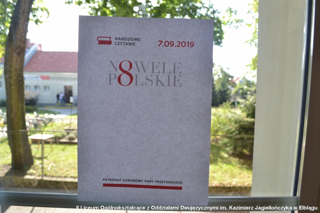 Na stronie kancelarii prezydenckiej https://www.prezydent.pl/kancelaria/narodowe-czytanie/narodowe-czytanie-2019/list-prezydenta/ czytamy, że Już po raz ósmy w ramach akcji Narodowe Czytanie będziemy czytać w całej Polsce wybitne utwory należące do kanonu naszej literatury. W tym roku będzie to zbiór zatytułowany Nowele polskie.