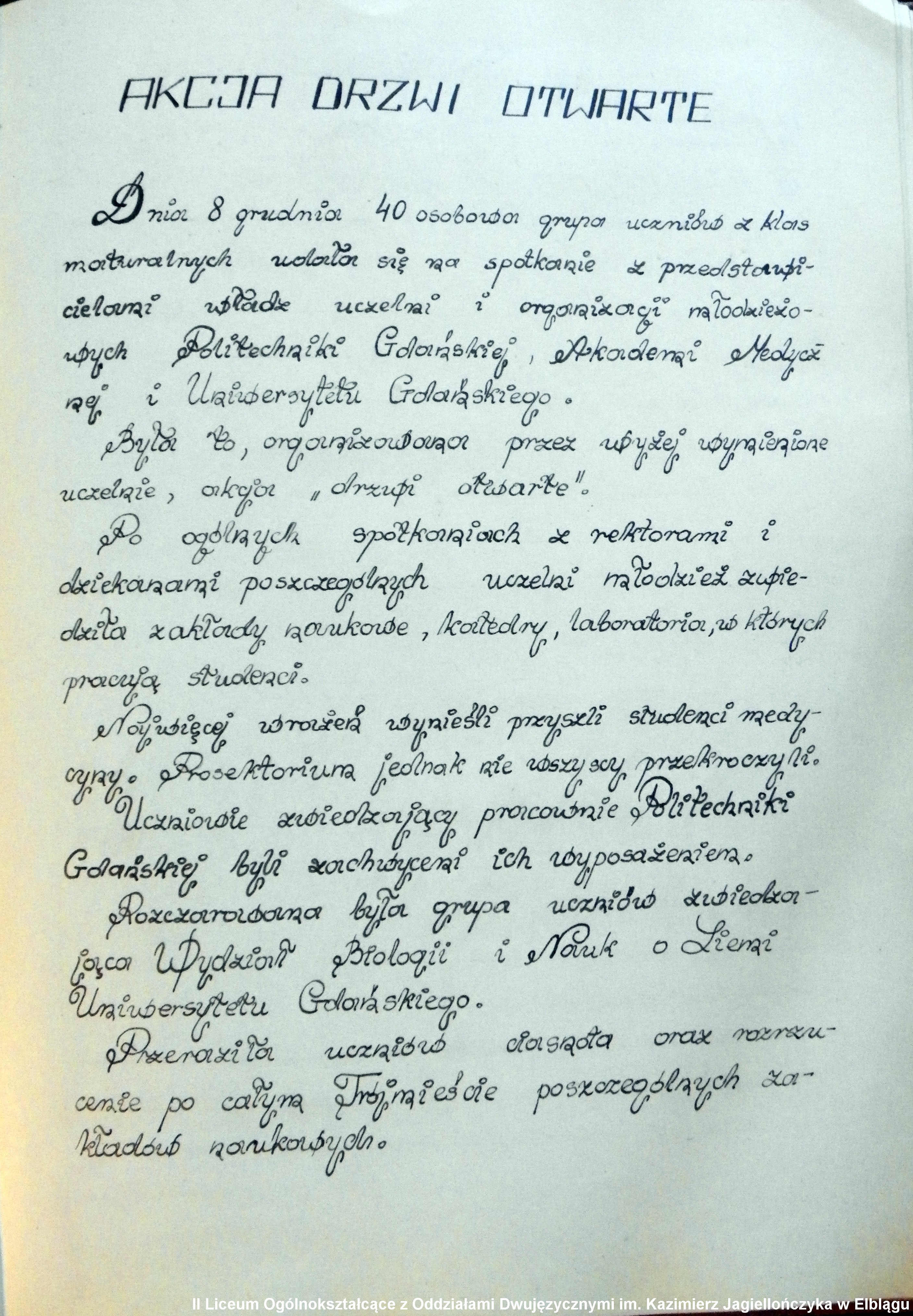 Od bardzo dawna prowadzona jest systematycznie papierowa Kronika Szkolna.