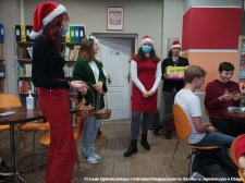 W świętego Mikołaja i jego pomocników wcielili się: Zuzanna Bracka, Alicja Wróblewska, Maja Szydło, Anna Koronowska, Mateusz Paturalski i Piotr Kampiński. Wędrowali z mikołajkowymi cukierkami po szkole, odwiedzając klasy, pokój nauczycielski, bibliotekę, wręczając słodkość tylko grzecznym dzieciom. Byliście grzeczni? ;)