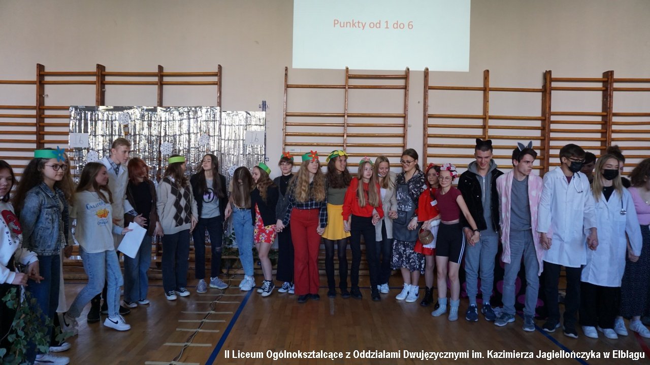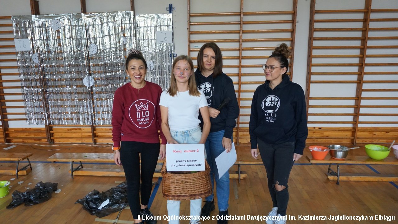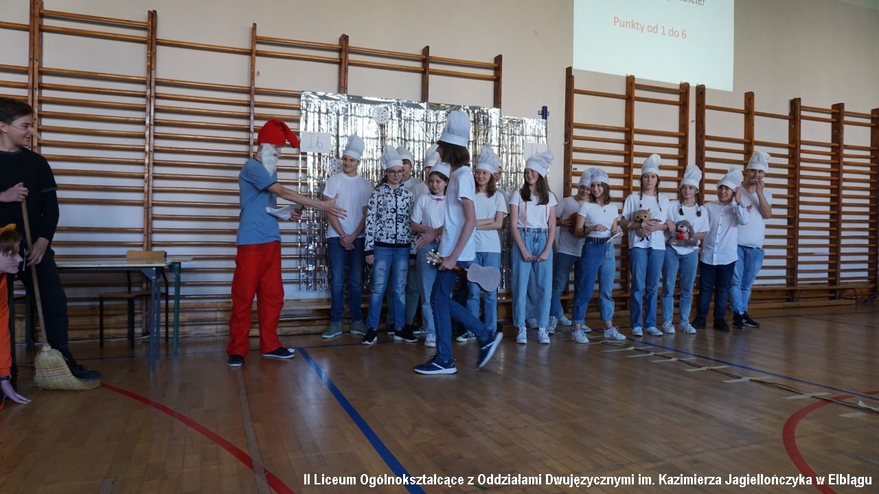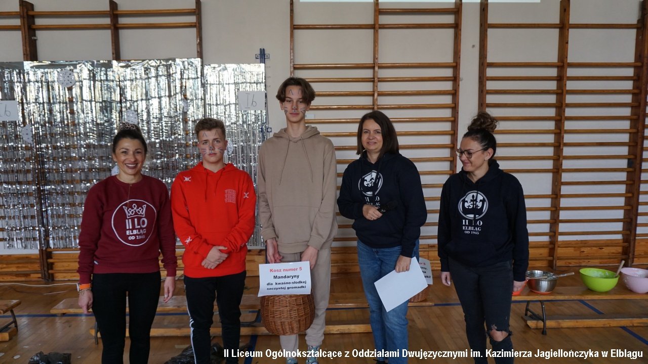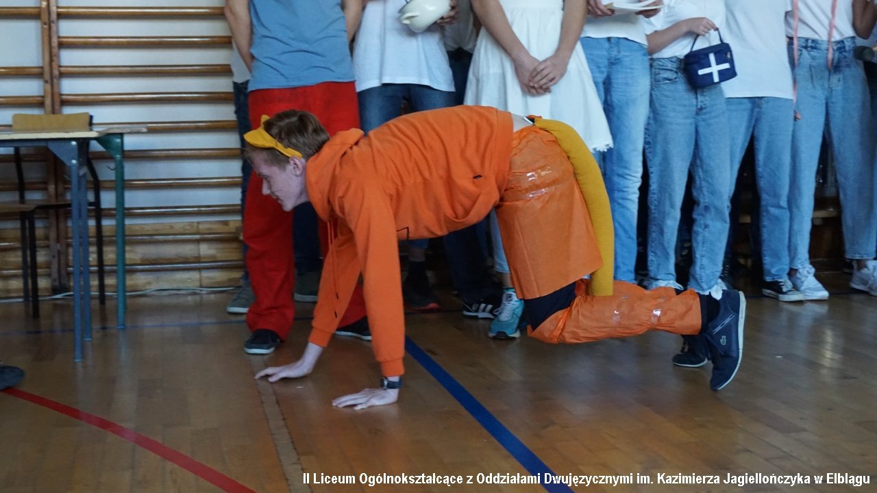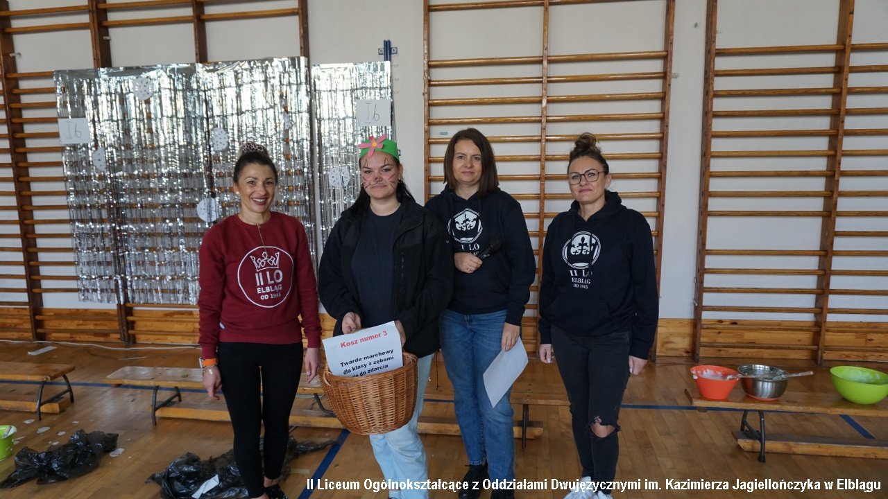 Do przedostatniego zadania nie było wiadomo, która klasa ostatecznie zdobędzie największą ilość punktów, ponieważ finał imprezy „przewrócił wyniki do góry nogami. Był to tzw. ”jajcarski maraton”. Jak się okazało, ubijanie piany z białek jaj kurzych przez męską część klas, to zadanie na wagę złota, a przede wszystkim uczta dla oka! Ha ha. Gromki śmiech i bardzo głośny doping uczestników imprezy rozbrzmiewał w sali gimnastycznej.