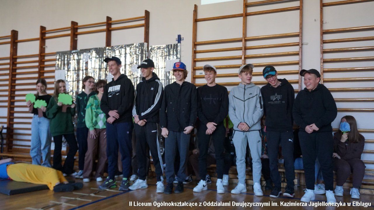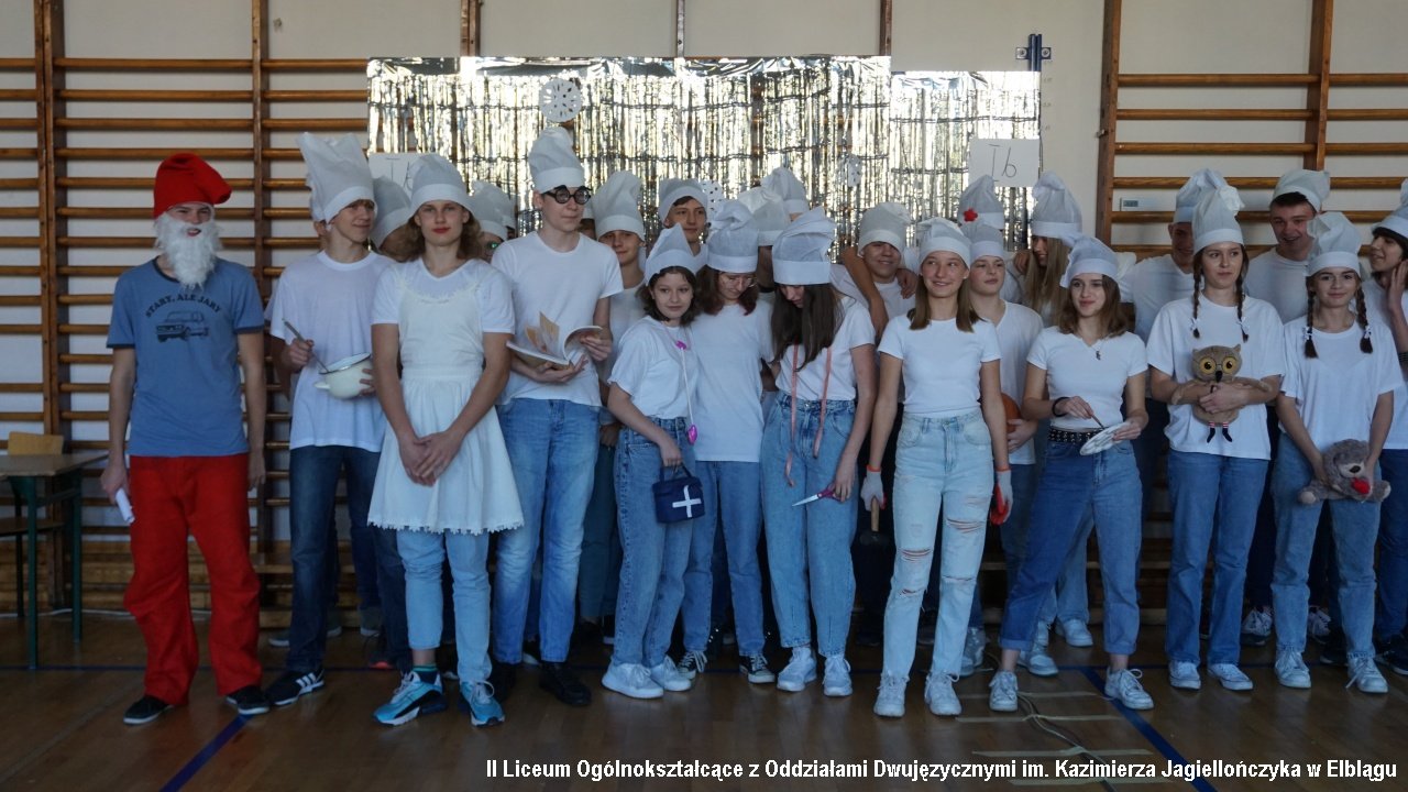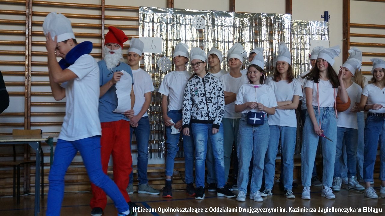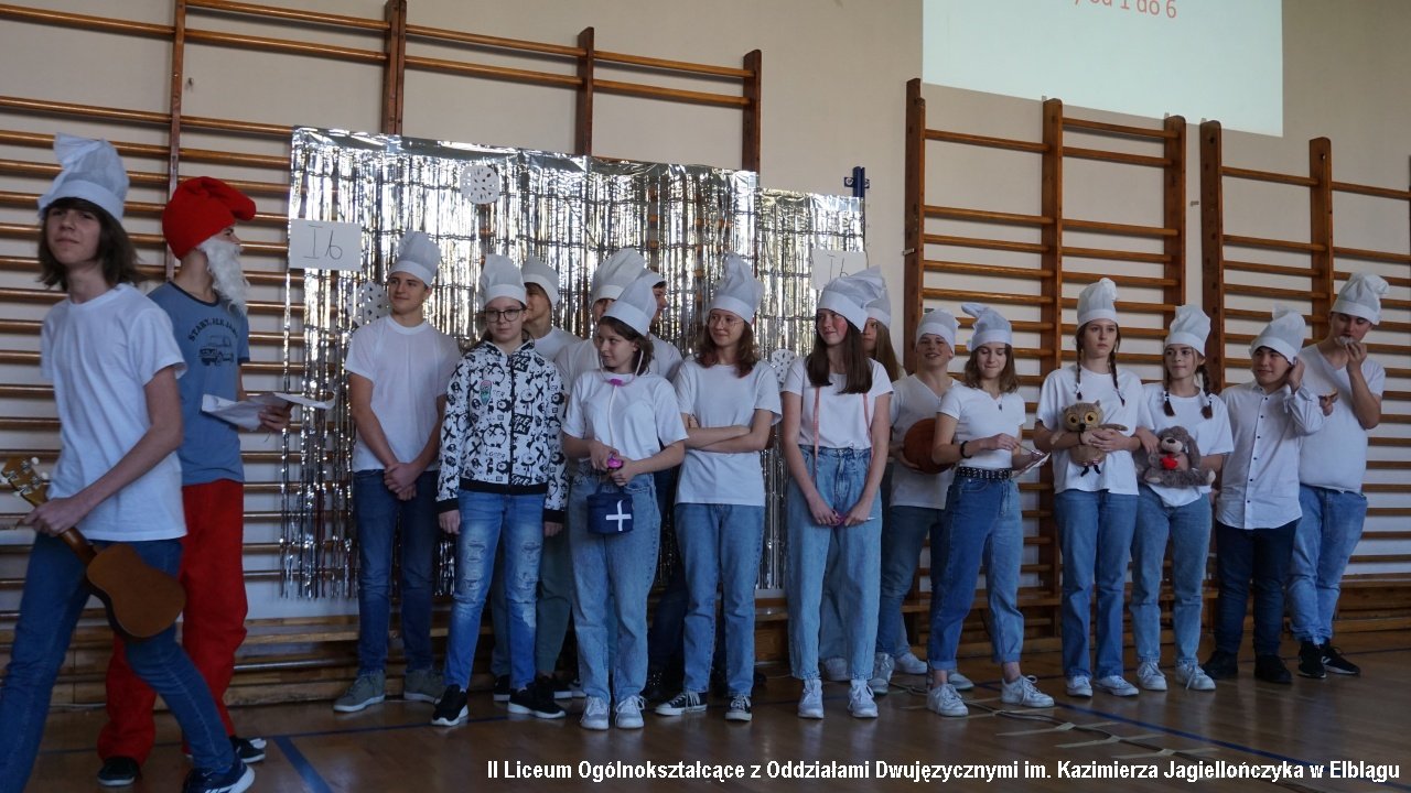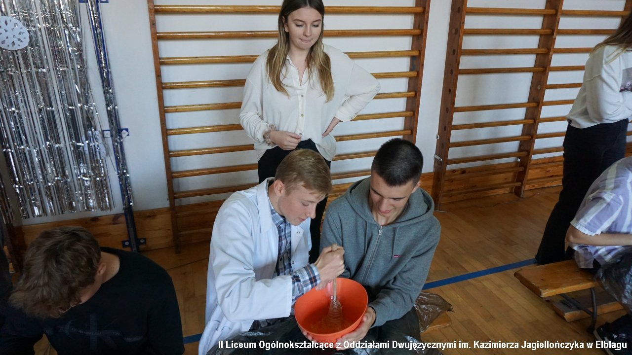 Do przedostatniego zadania nie było wiadomo, która klasa ostatecznie zdobędzie największą ilość punktów, ponieważ finał imprezy „przewrócił wyniki do góry nogami. Był to tzw. ”jajcarski maraton”. Jak się okazało, ubijanie piany z białek jaj kurzych przez męską część klas, to zadanie na wagę złota, a przede wszystkim uczta dla oka! Ha ha. Gromki śmiech i bardzo głośny doping uczestników imprezy rozbrzmiewał w sali gimnastycznej.