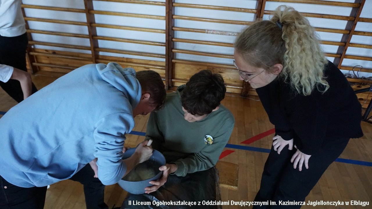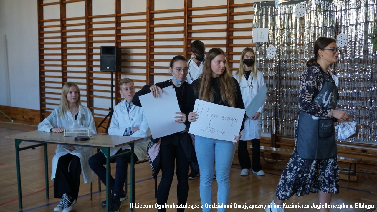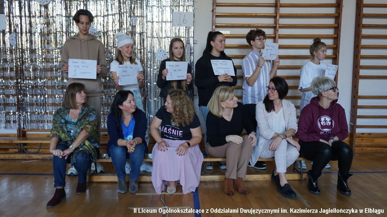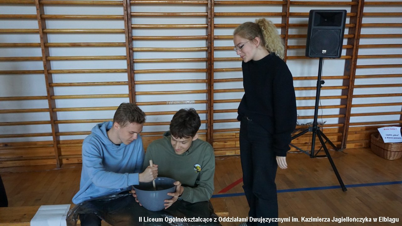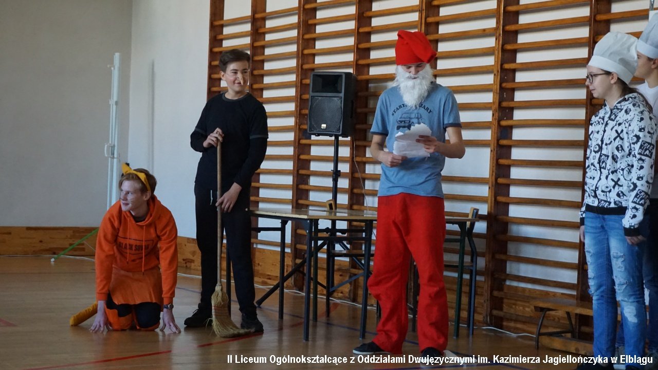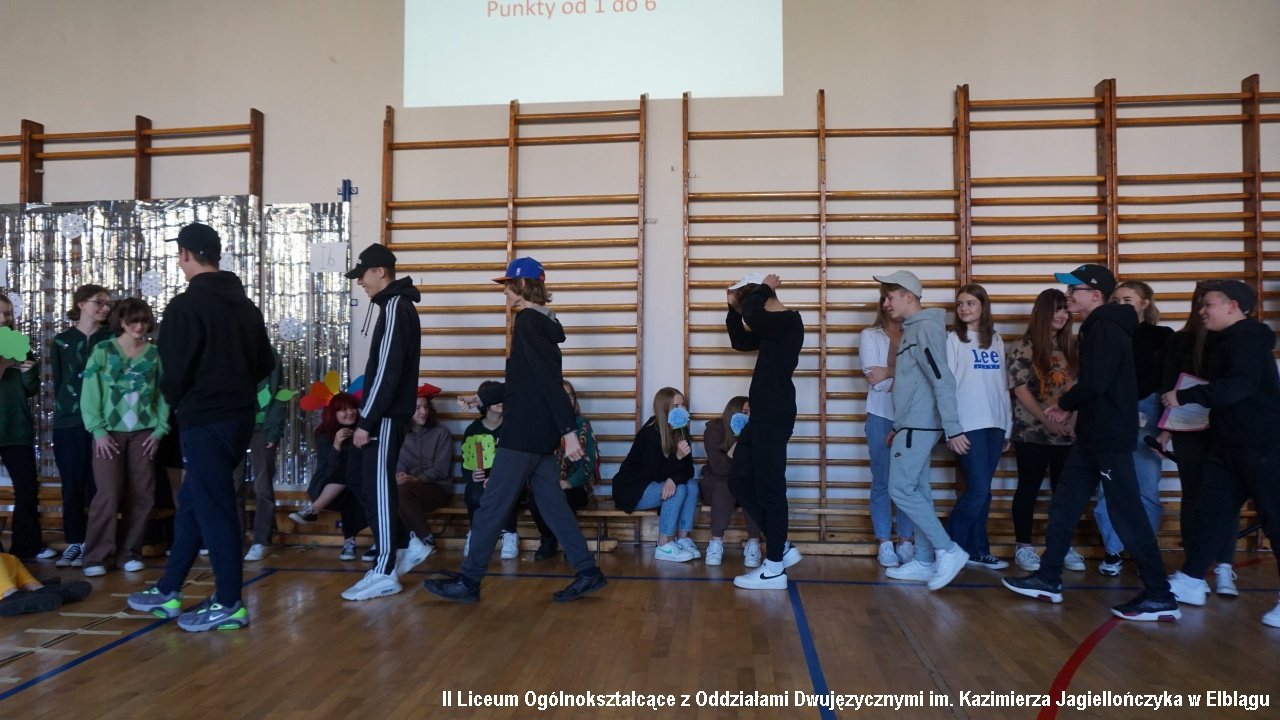 Do przedostatniego zadania nie było wiadomo, która klasa ostatecznie zdobędzie największą ilość punktów, ponieważ finał imprezy „przewrócił wyniki do góry nogami. Był to tzw. ”jajcarski maraton”. Jak się okazało, ubijanie piany z białek jaj kurzych przez męską część klas, to zadanie na wagę złota, a przede wszystkim uczta dla oka! Ha ha. Gromki śmiech i bardzo głośny doping uczestników imprezy rozbrzmiewał w sali gimnastycznej.