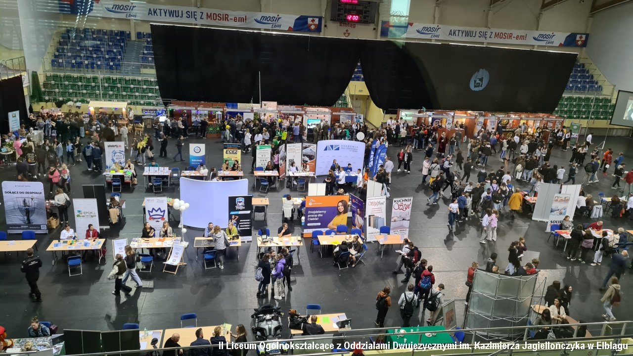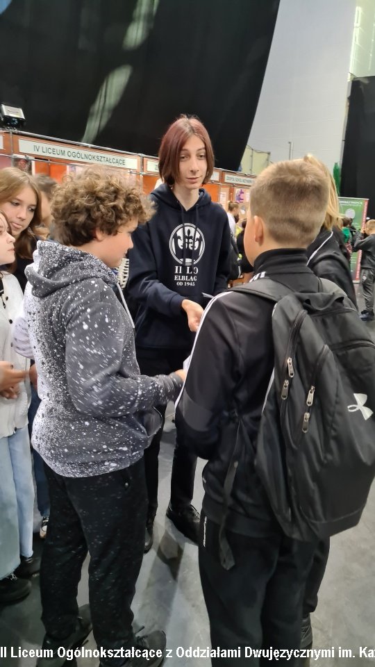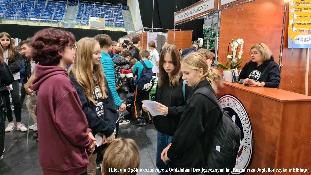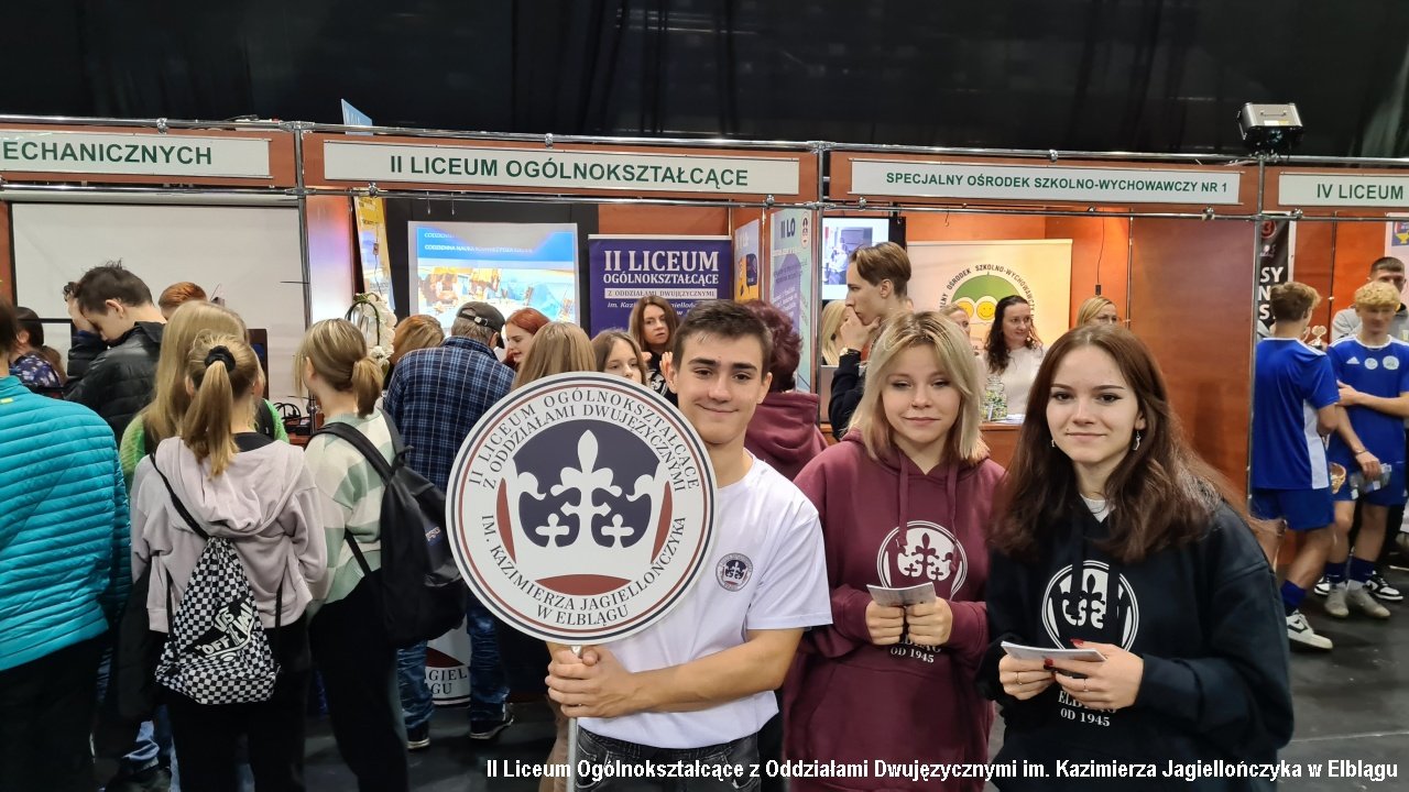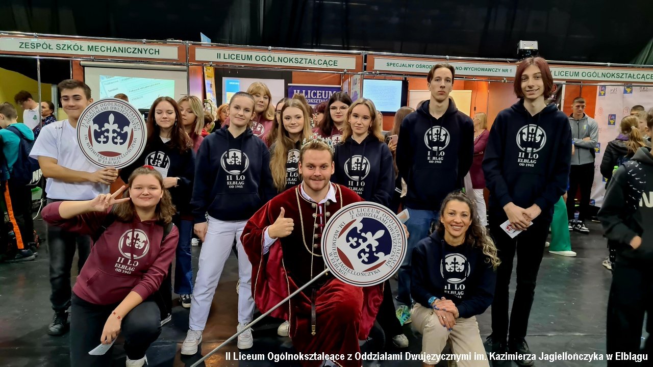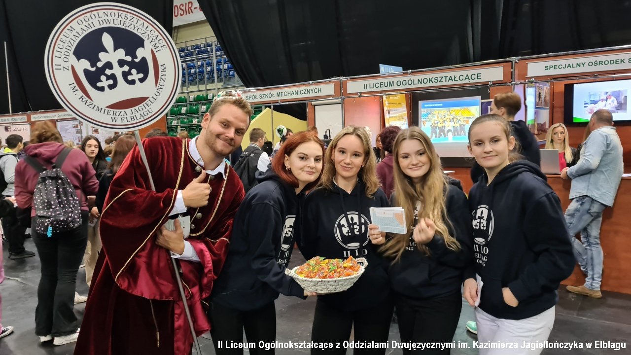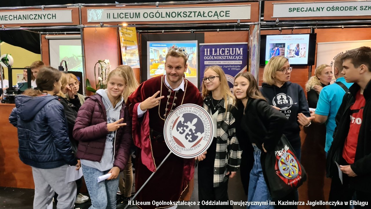 Swoją ofertę przygotowały również elbląskie szkoły ponadpodstawowe. Uczniowie II-go LO z dumą prezentowali swoją szkołę, odpowiadając na szereg różnych pytań zarówno uczniom klas 8 jak i zaciekawionym rodzicom. Król Kazik miał duże „wzięcie” szczególnie u płci przeciwnej, która ochoczo robiła sobie z nim pamiątkowe fotki.