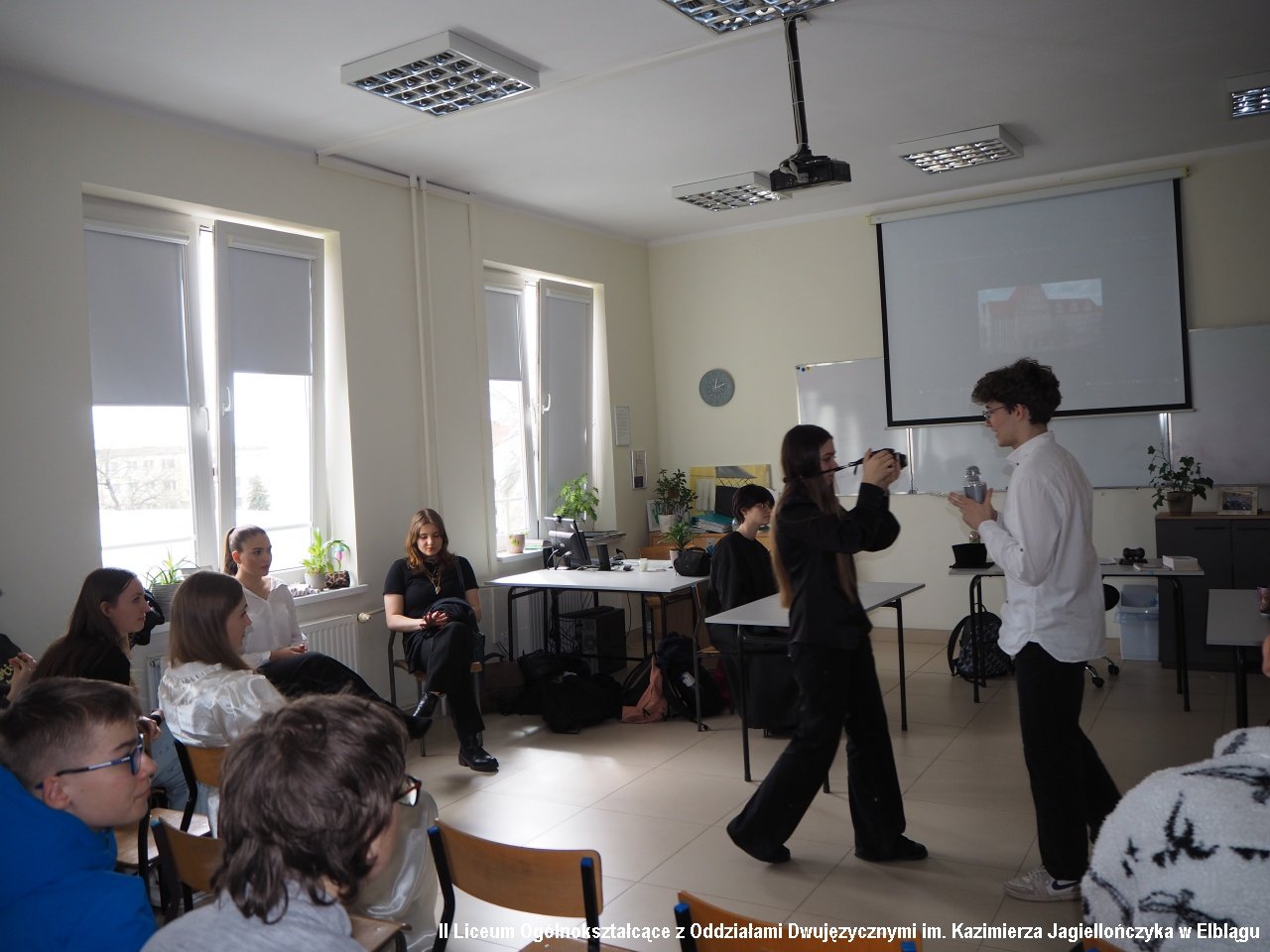 Będąc przewodnikiem na drzwiach otwartych-oprowadzałam po szkole grupę ósmoklasistów- miałam okazję zadawać, ale i odpowiadać na pytania zwiedzających. To wyjątkowa sposobność, by oswoić ich z licealnym życiem.