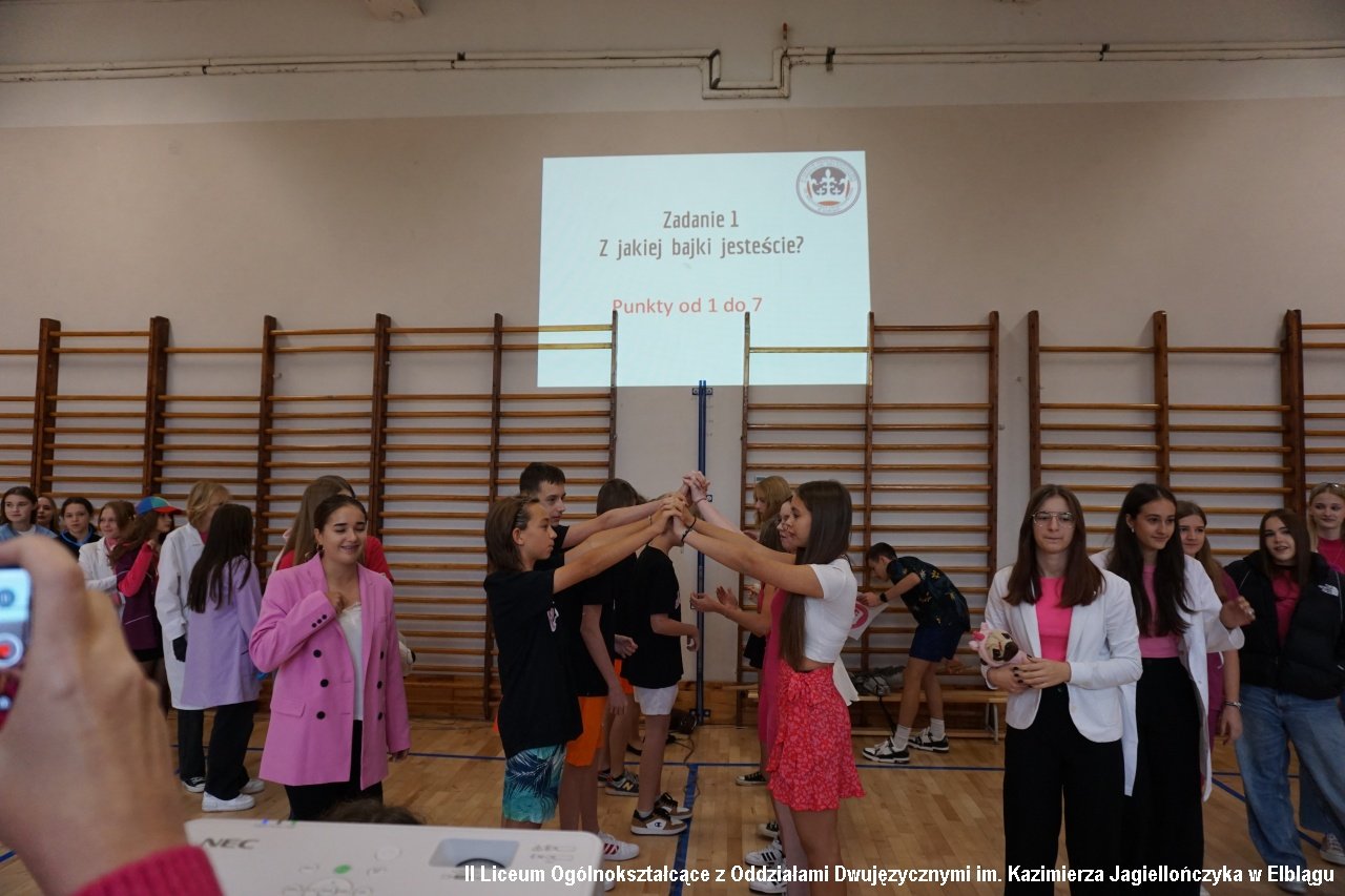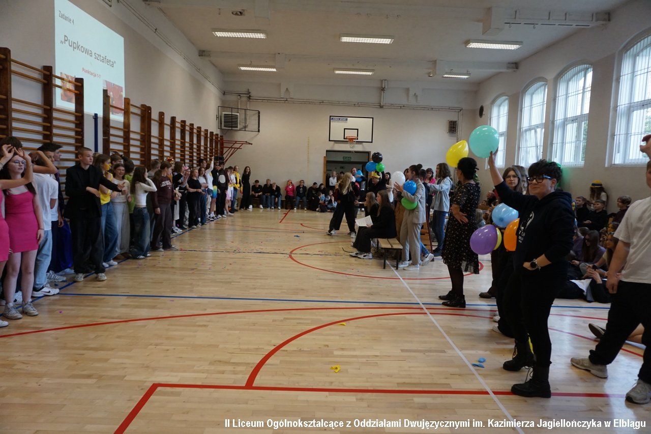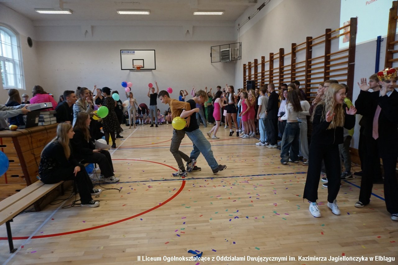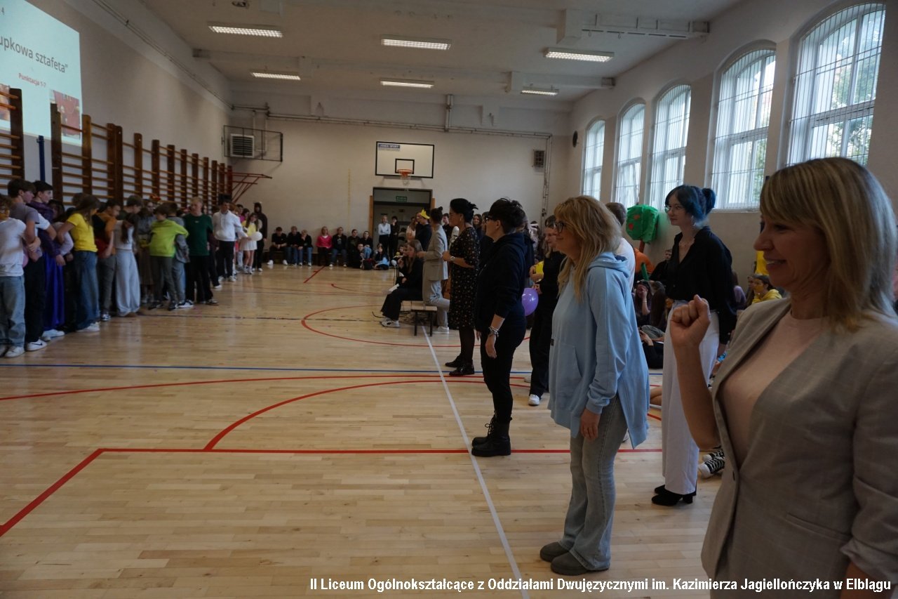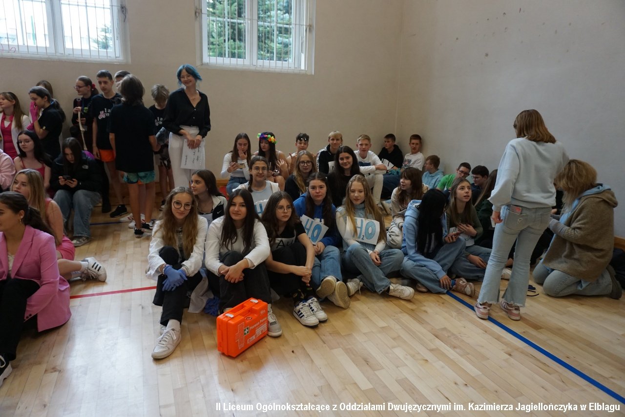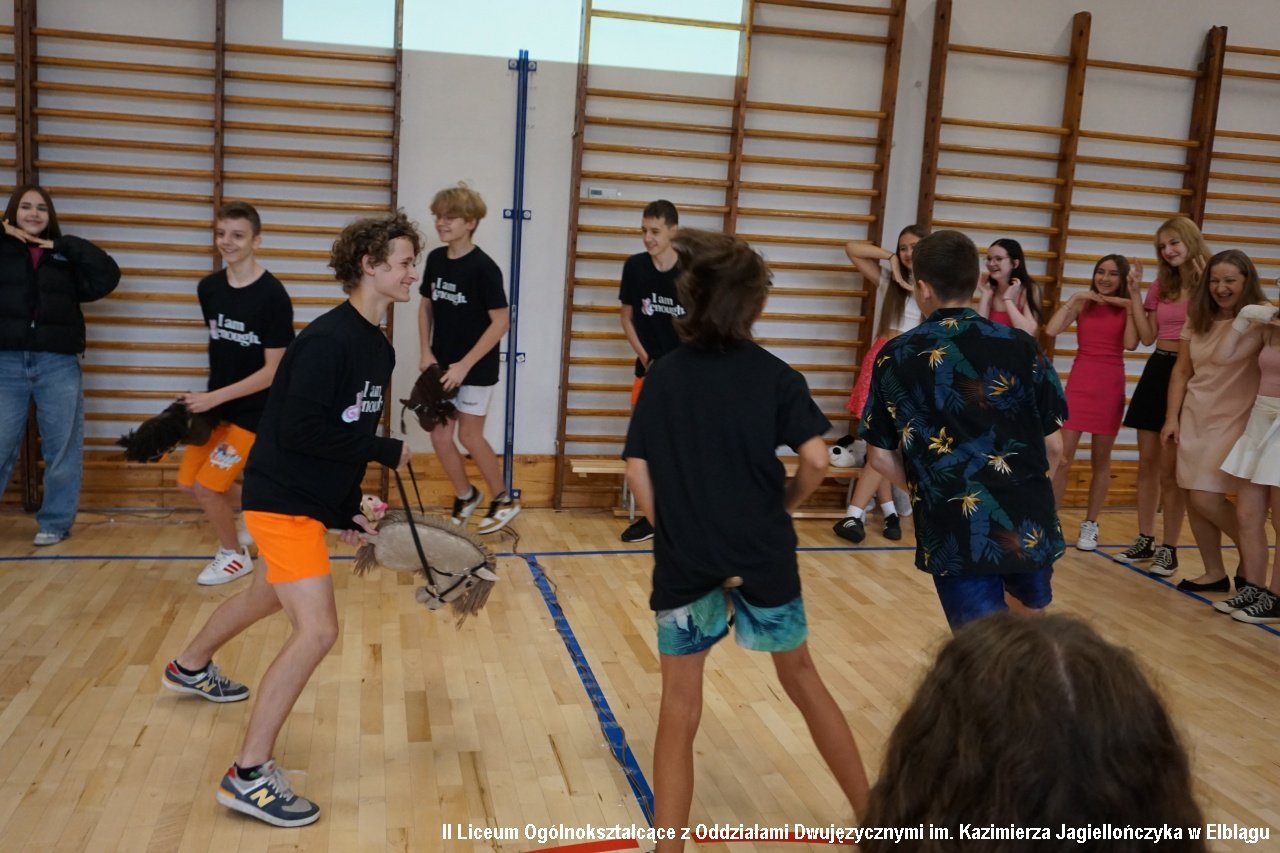 W środę 18 października 2023r. w sali gimnastycznej zabrało się siedem klas pierwszych, czyli ponad dwustu pierwszaków, aby przejść test przyjęcia do grona rodziny Jagiellończyków. Wraz z klasami stawili się ich wspaniali wychowawcy, którzy nie tylko kibicowali swoim klasom, ale również brali razem z nimi udział w wielu konkurencjach. Brawo wychowawcy!