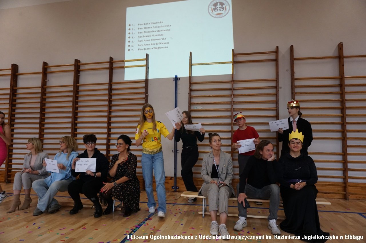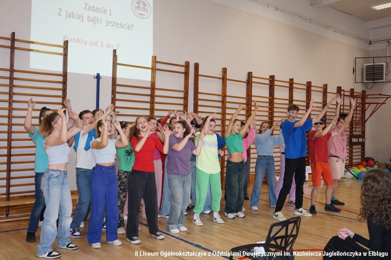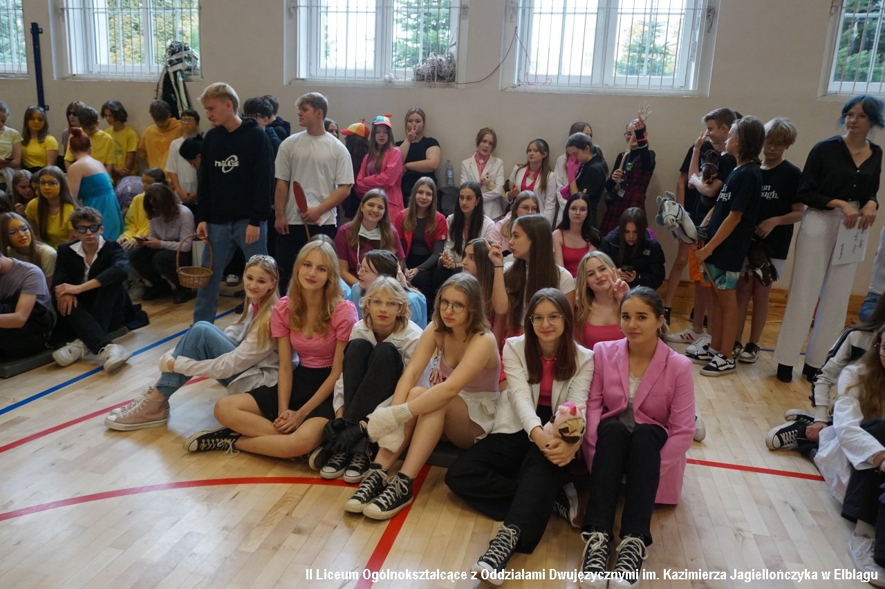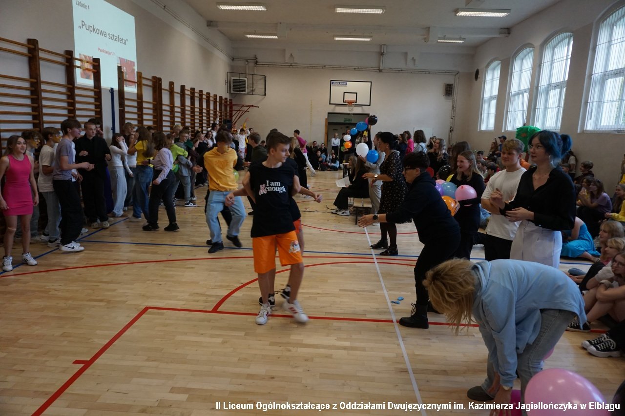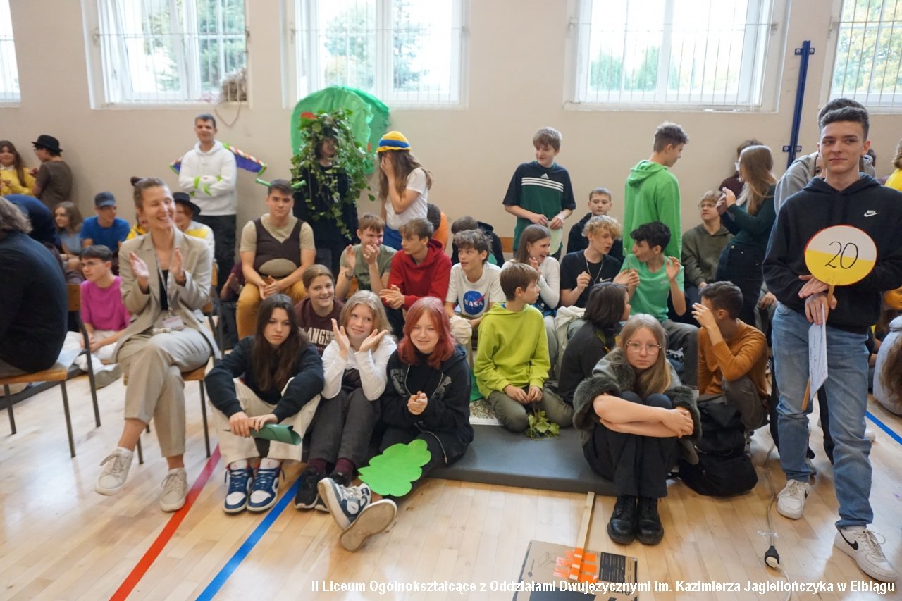 W środę 18 października 2023r. w sali gimnastycznej zabrało się siedem klas pierwszych, czyli ponad dwustu pierwszaków, aby przejść test przyjęcia do grona rodziny Jagiellończyków. Wraz z klasami stawili się ich wspaniali wychowawcy, którzy nie tylko kibicowali swoim klasom, ale również brali razem z nimi udział w wielu konkurencjach. Brawo wychowawcy!