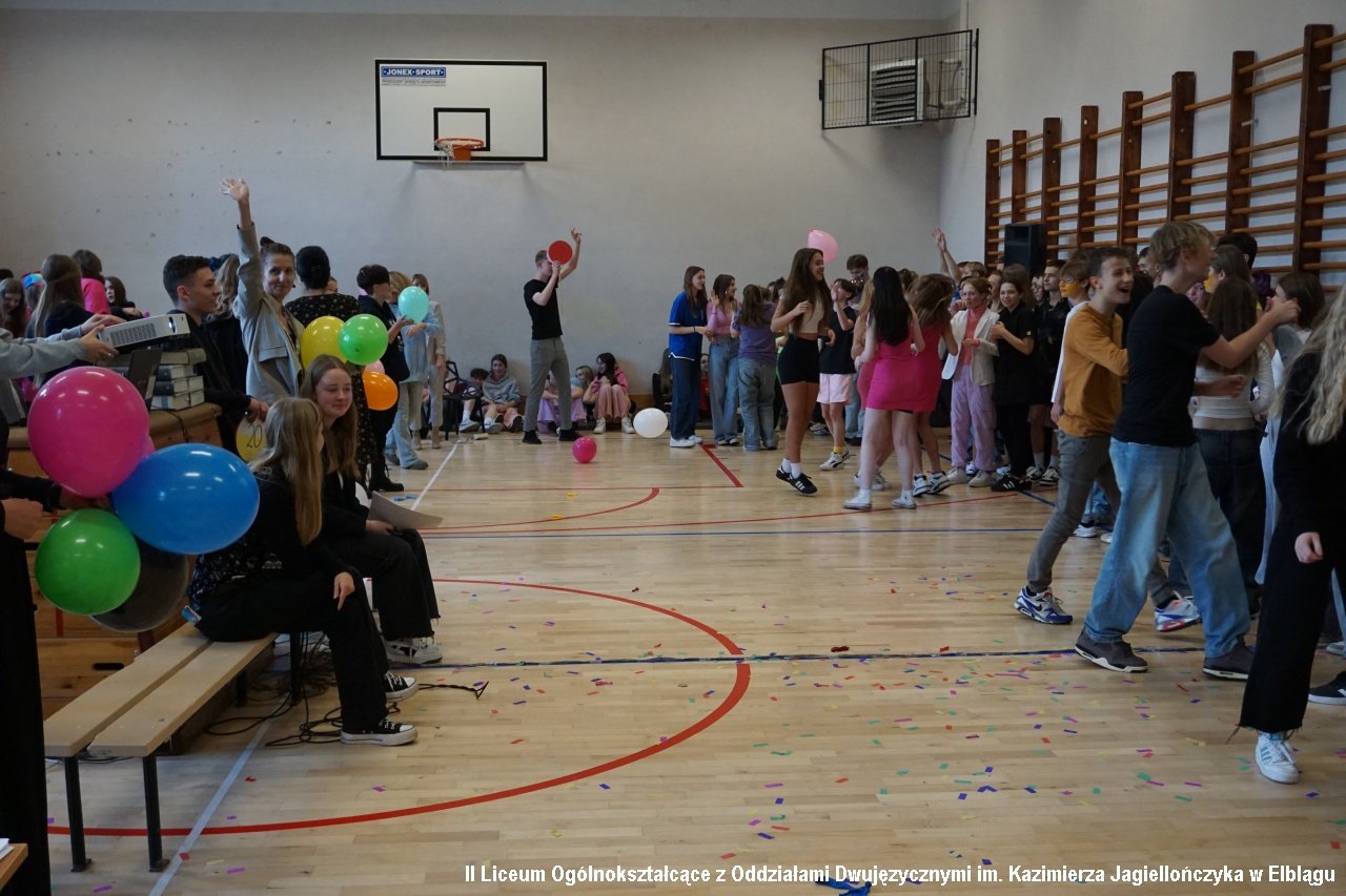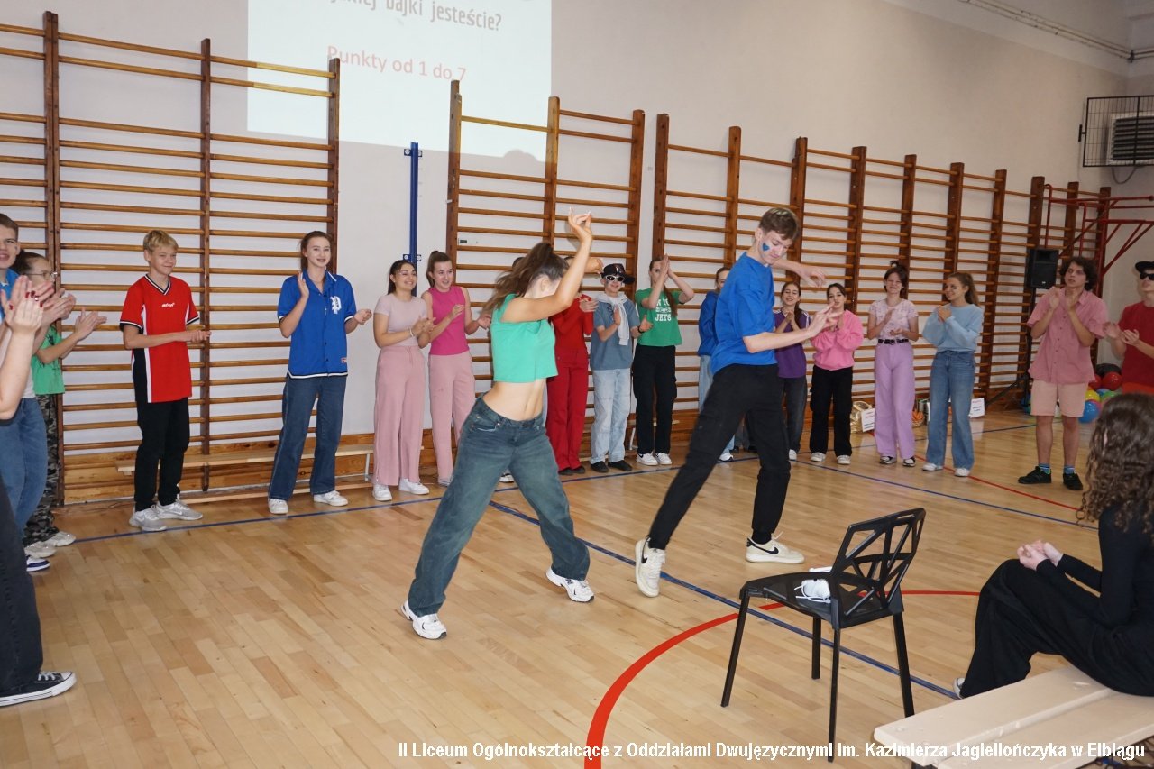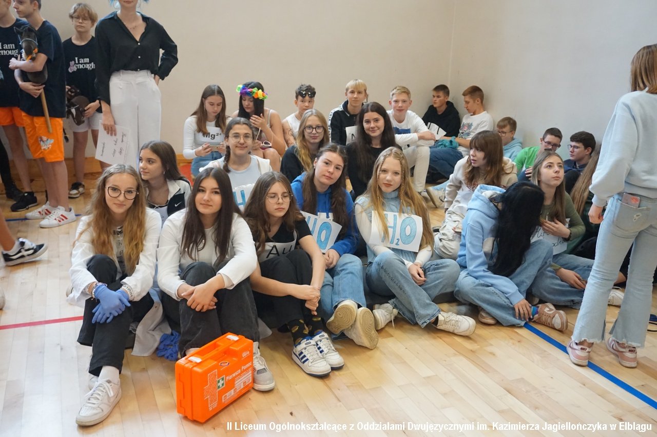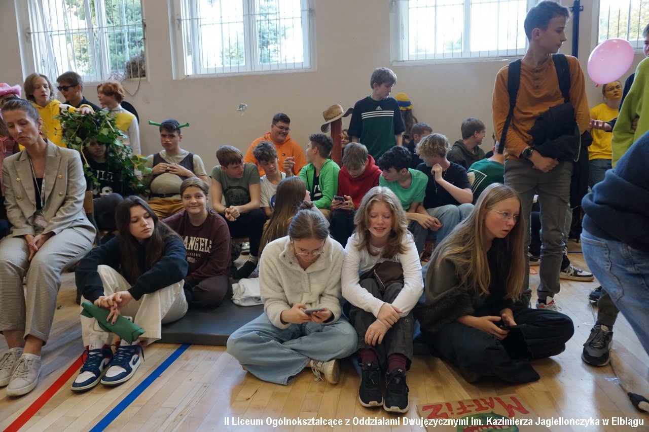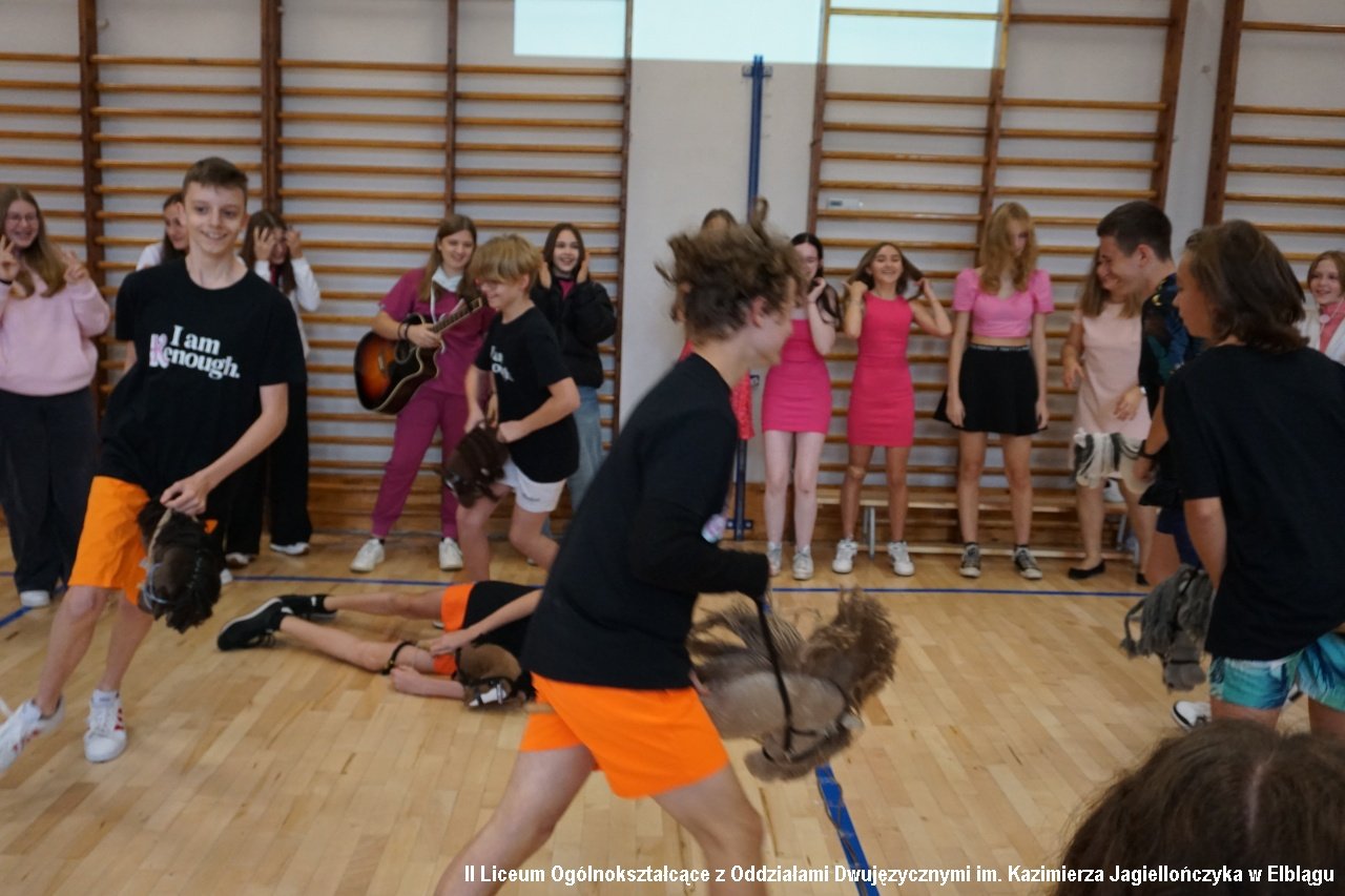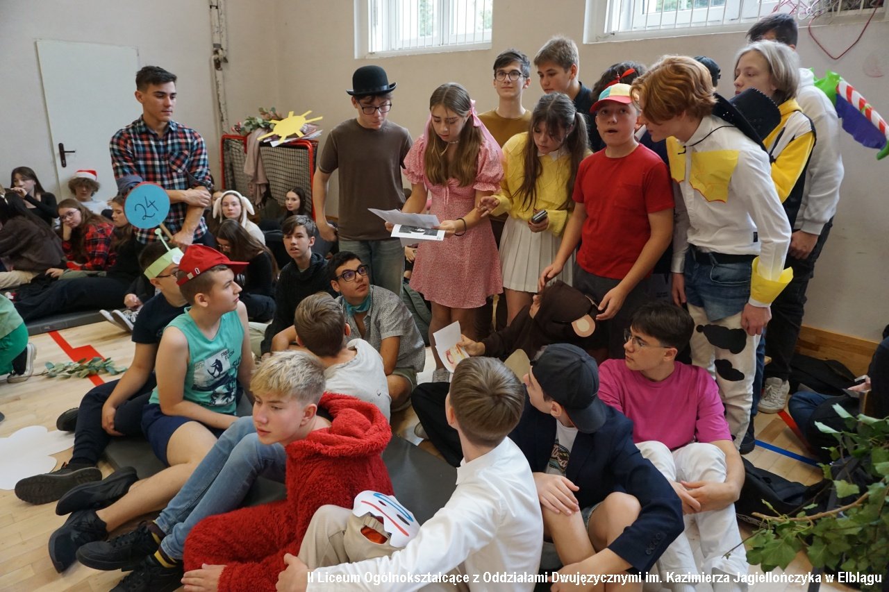 W środę 18 października 2023r. w sali gimnastycznej zabrało się siedem klas pierwszych, czyli ponad dwustu pierwszaków, aby przejść test przyjęcia do grona rodziny Jagiellończyków. Wraz z klasami stawili się ich wspaniali wychowawcy, którzy nie tylko kibicowali swoim klasom, ale również brali razem z nimi udział w wielu konkurencjach. Brawo wychowawcy!