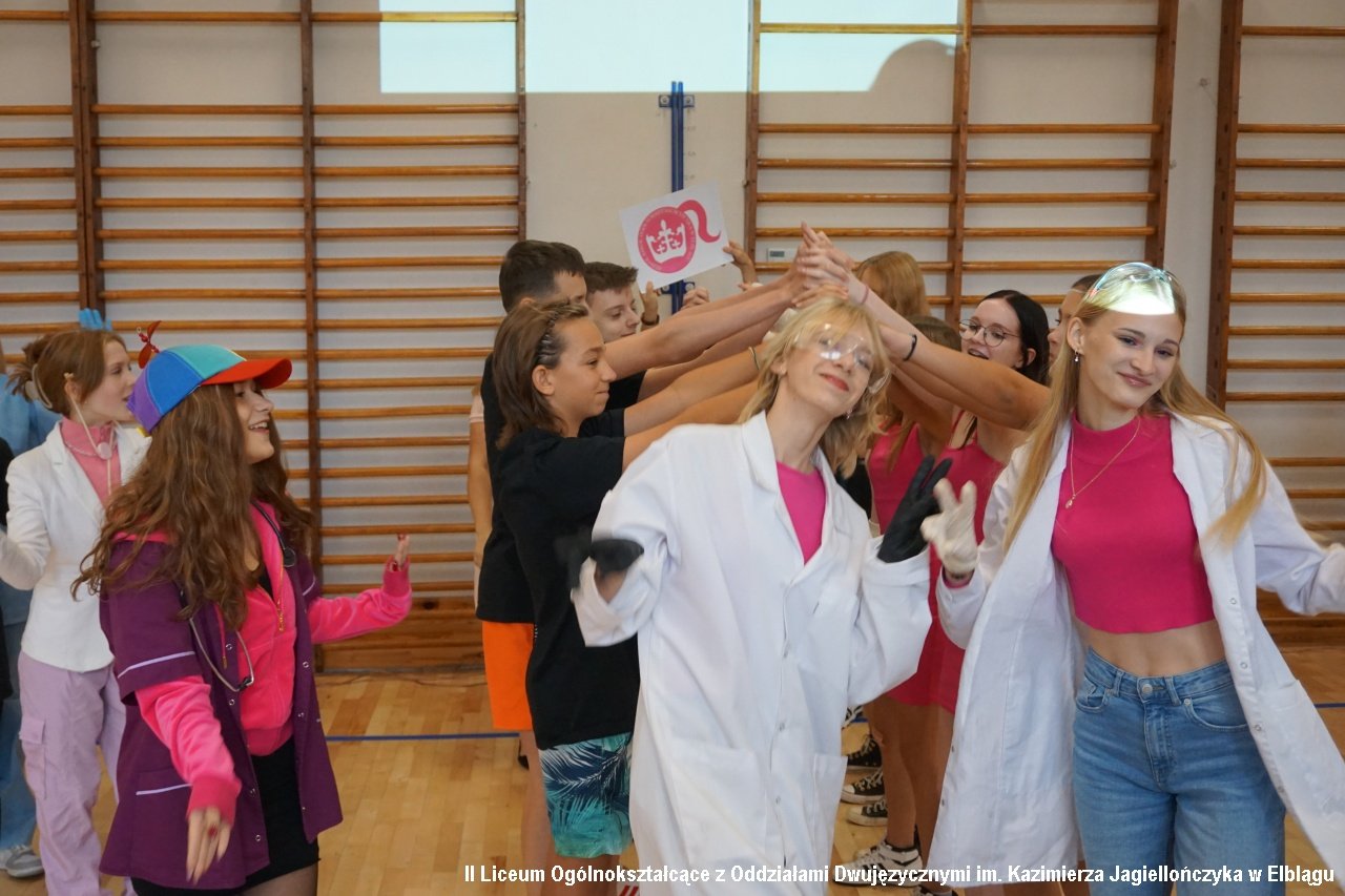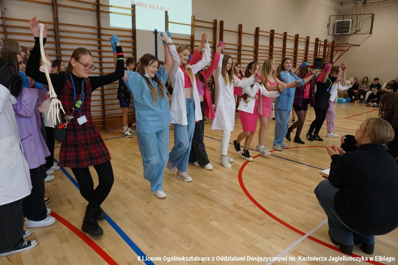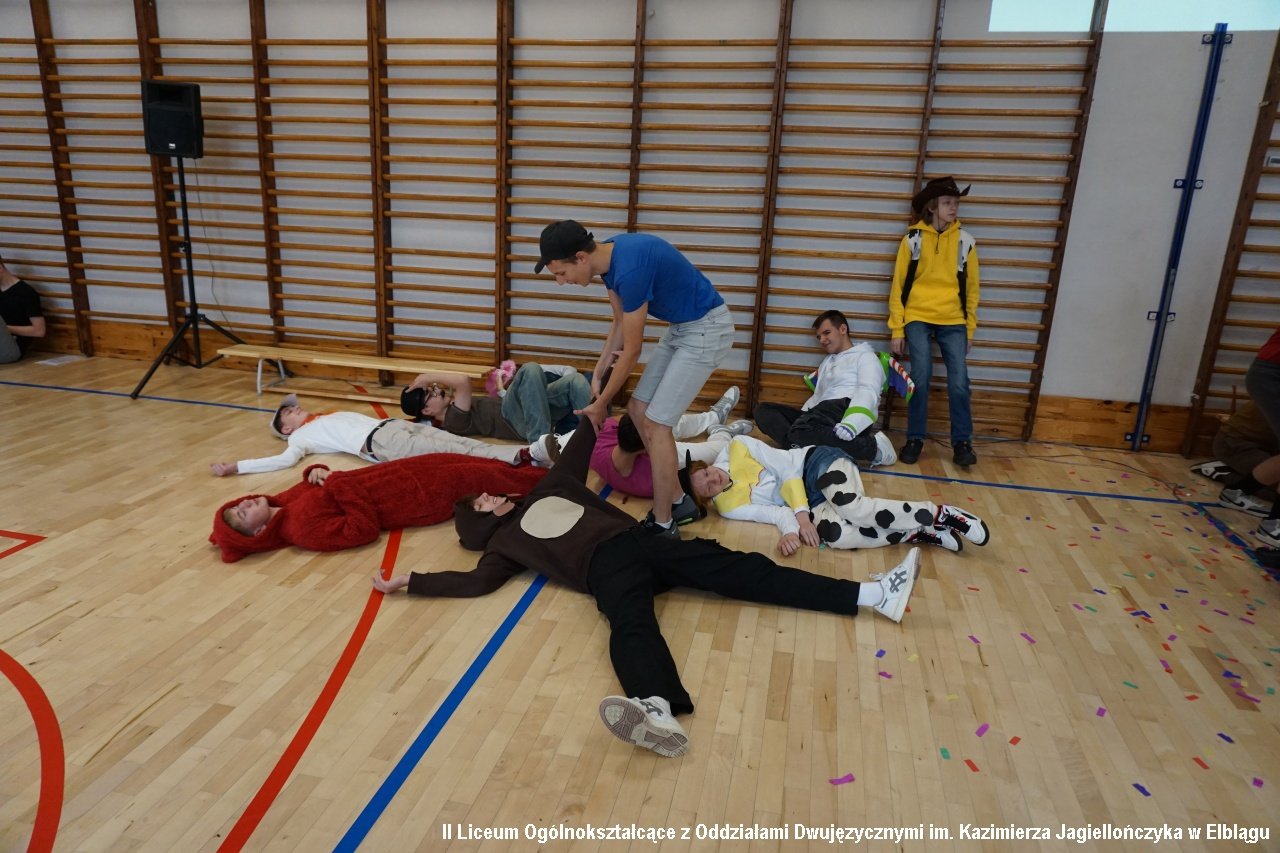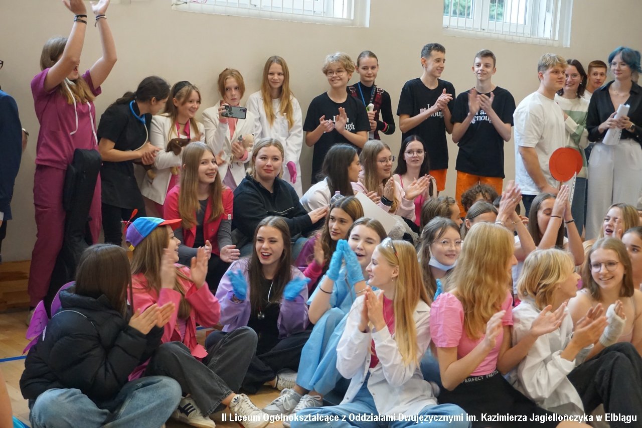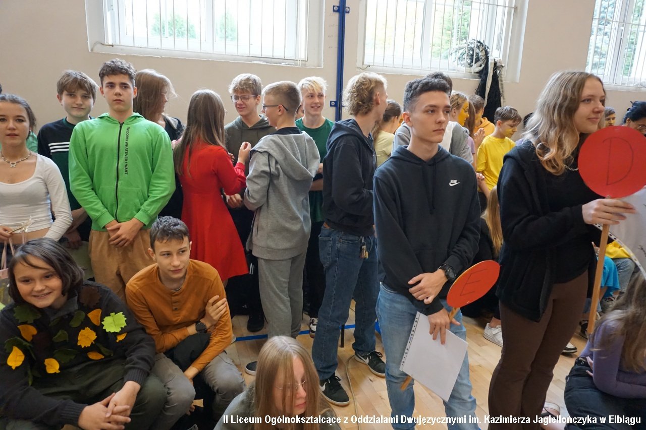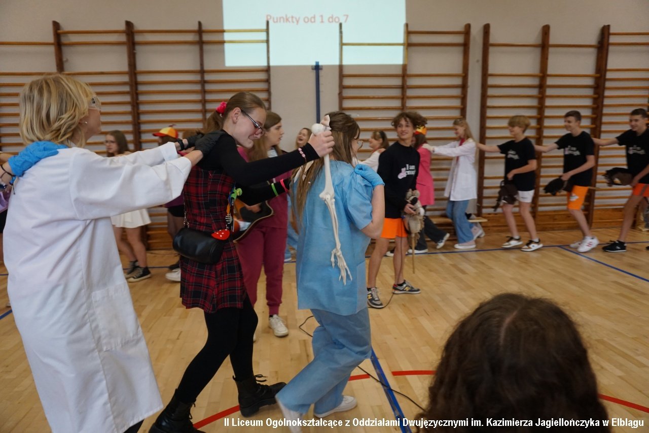 W środę 18 października 2023r. w sali gimnastycznej zabrało się siedem klas pierwszych, czyli ponad dwustu pierwszaków, aby przejść test przyjęcia do grona rodziny Jagiellończyków. Wraz z klasami stawili się ich wspaniali wychowawcy, którzy nie tylko kibicowali swoim klasom, ale również brali razem z nimi udział w wielu konkurencjach. Brawo wychowawcy!