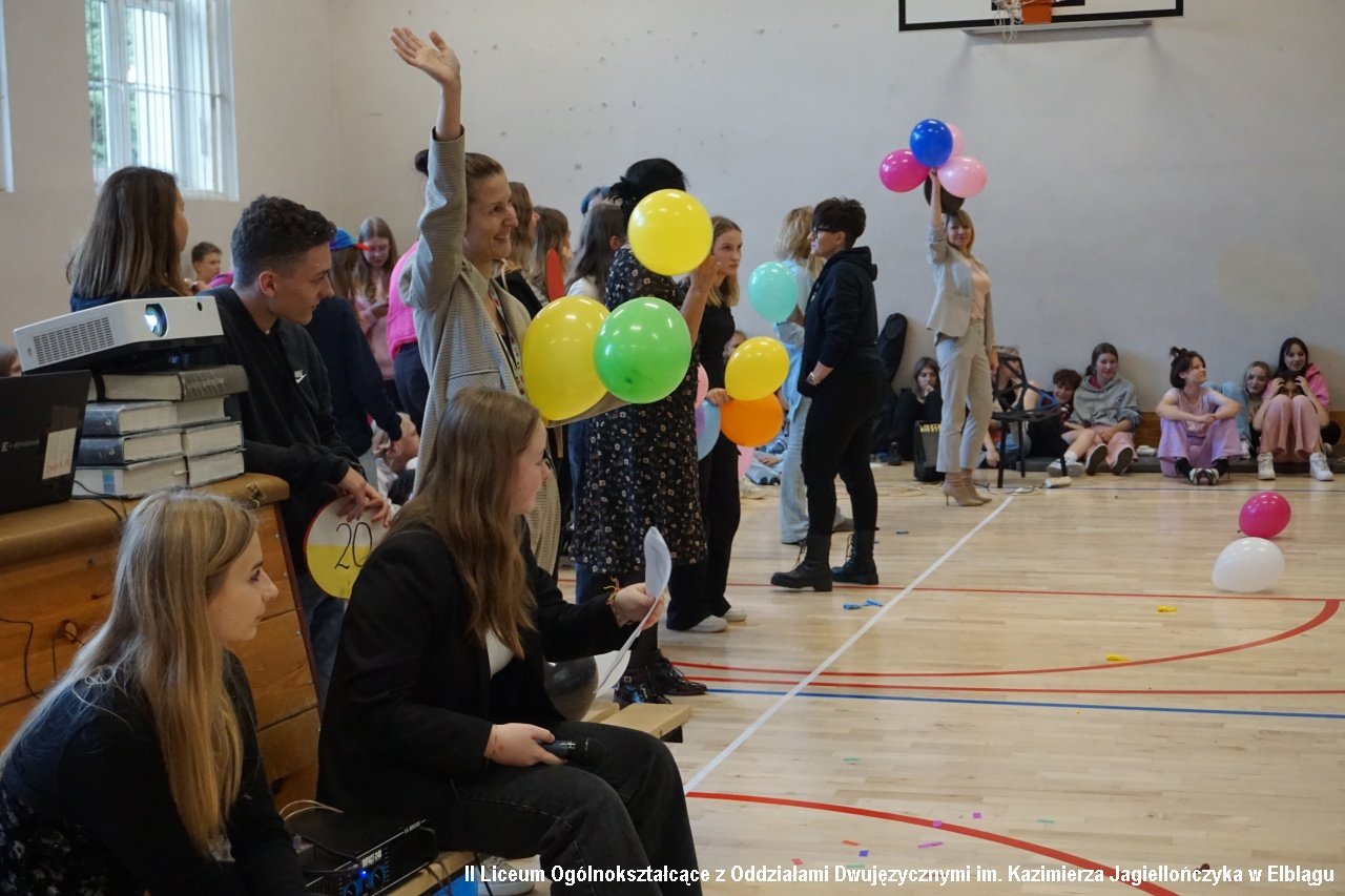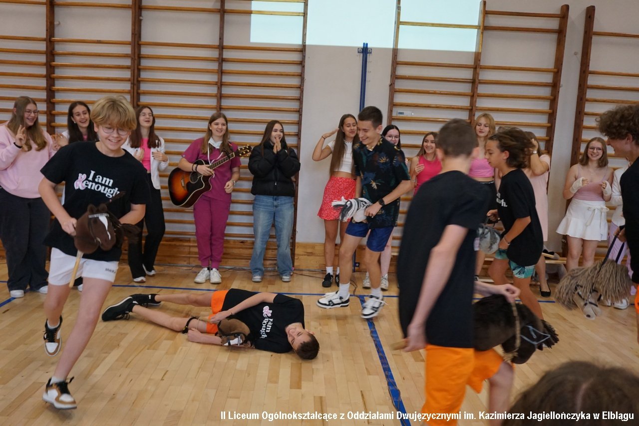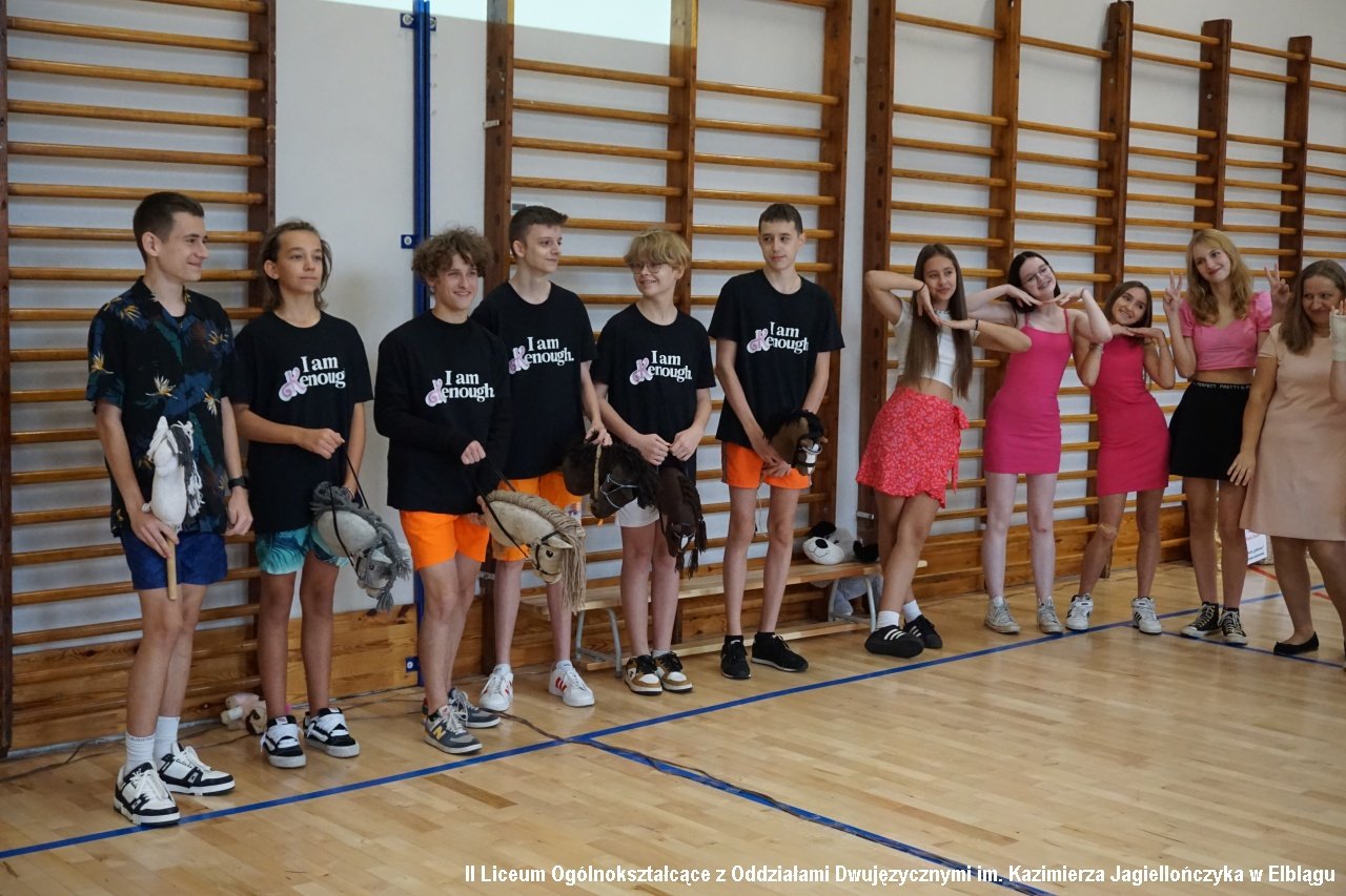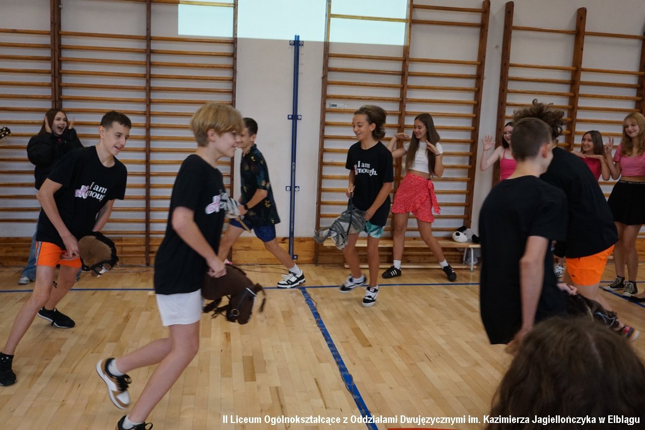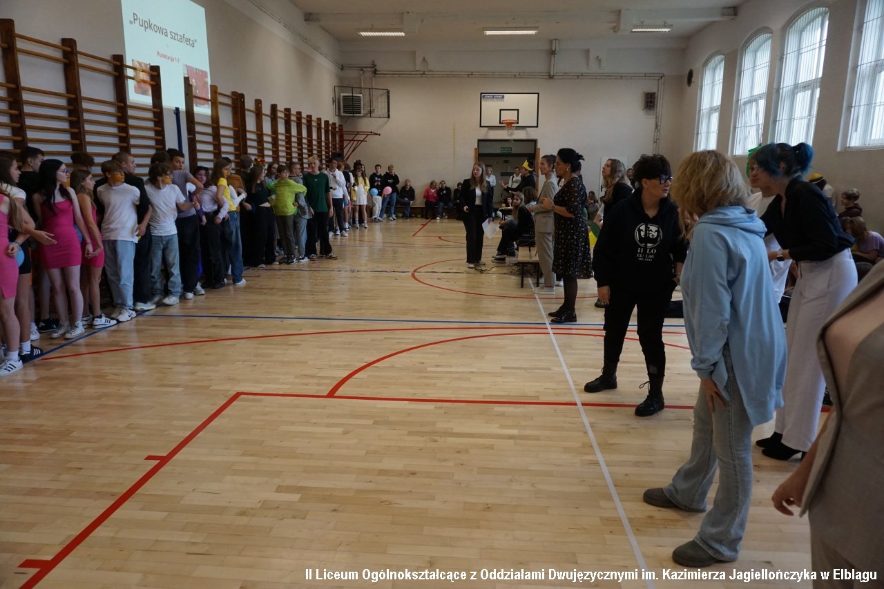 W środę 18 października 2023r. w sali gimnastycznej zabrało się siedem klas pierwszych, czyli ponad dwustu pierwszaków, aby przejść test przyjęcia do grona rodziny Jagiellończyków. Wraz z klasami stawili się ich wspaniali wychowawcy, którzy nie tylko kibicowali swoim klasom, ale również brali razem z nimi udział w wielu konkurencjach. Brawo wychowawcy!