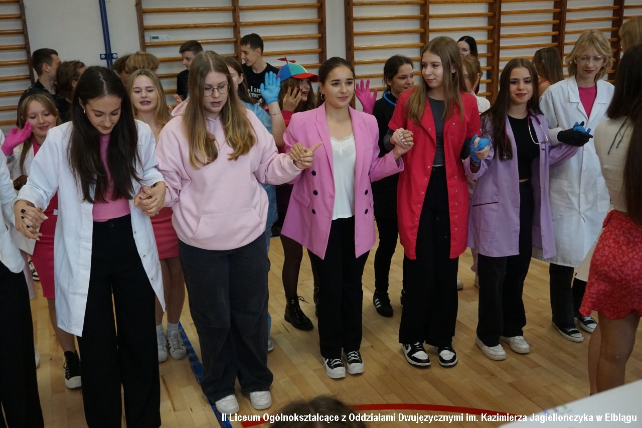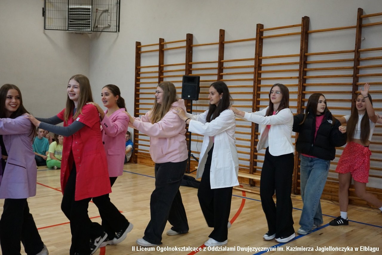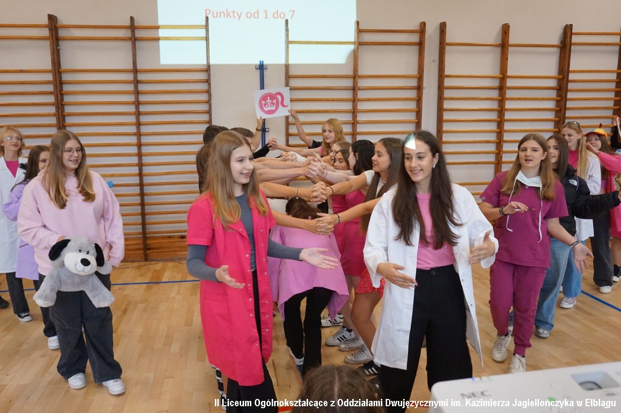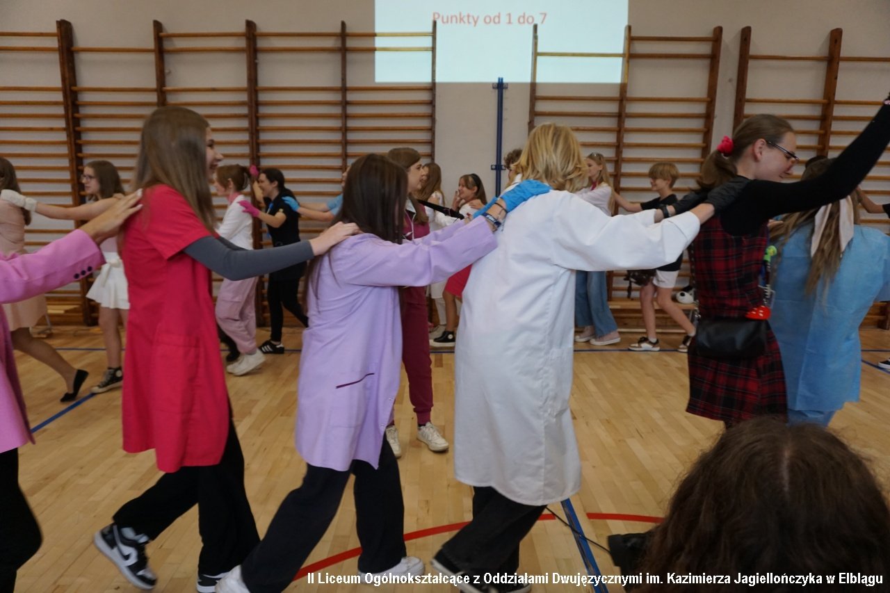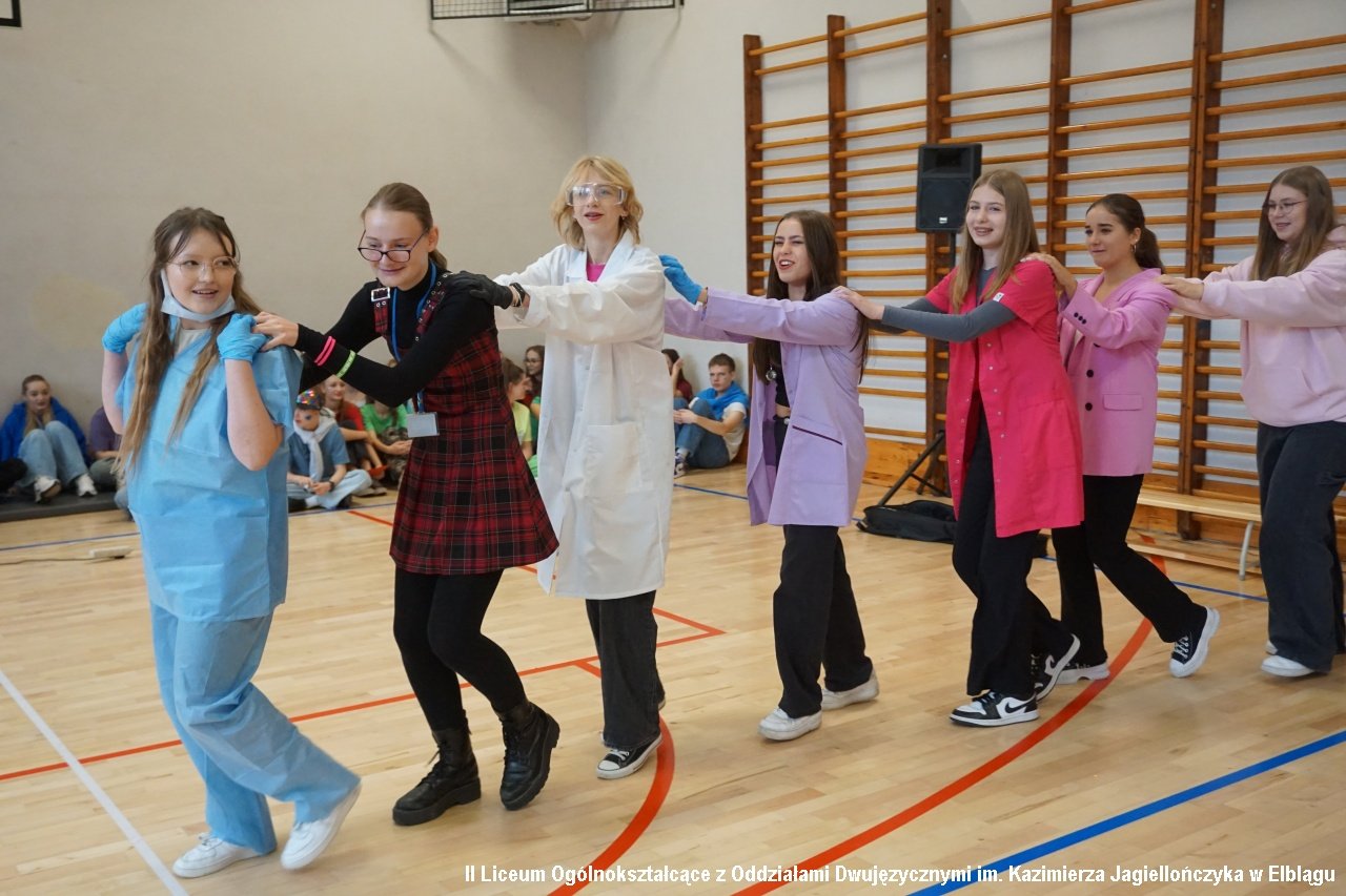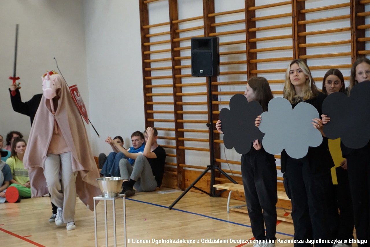 W środę 18 października 2023r. w sali gimnastycznej zabrało się siedem klas pierwszych, czyli ponad dwustu pierwszaków, aby przejść test przyjęcia do grona rodziny Jagiellończyków. Wraz z klasami stawili się ich wspaniali wychowawcy, którzy nie tylko kibicowali swoim klasom, ale również brali razem z nimi udział w wielu konkurencjach. Brawo wychowawcy!