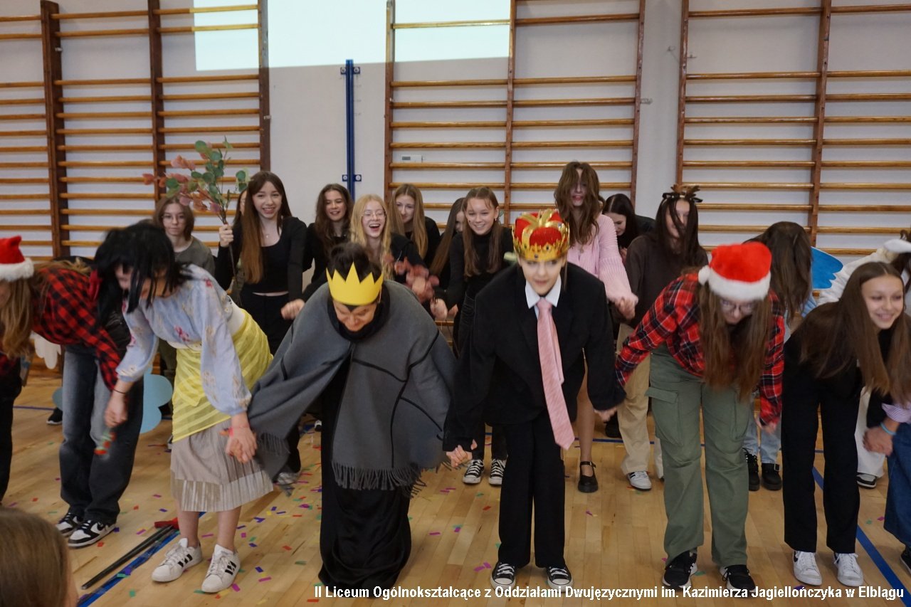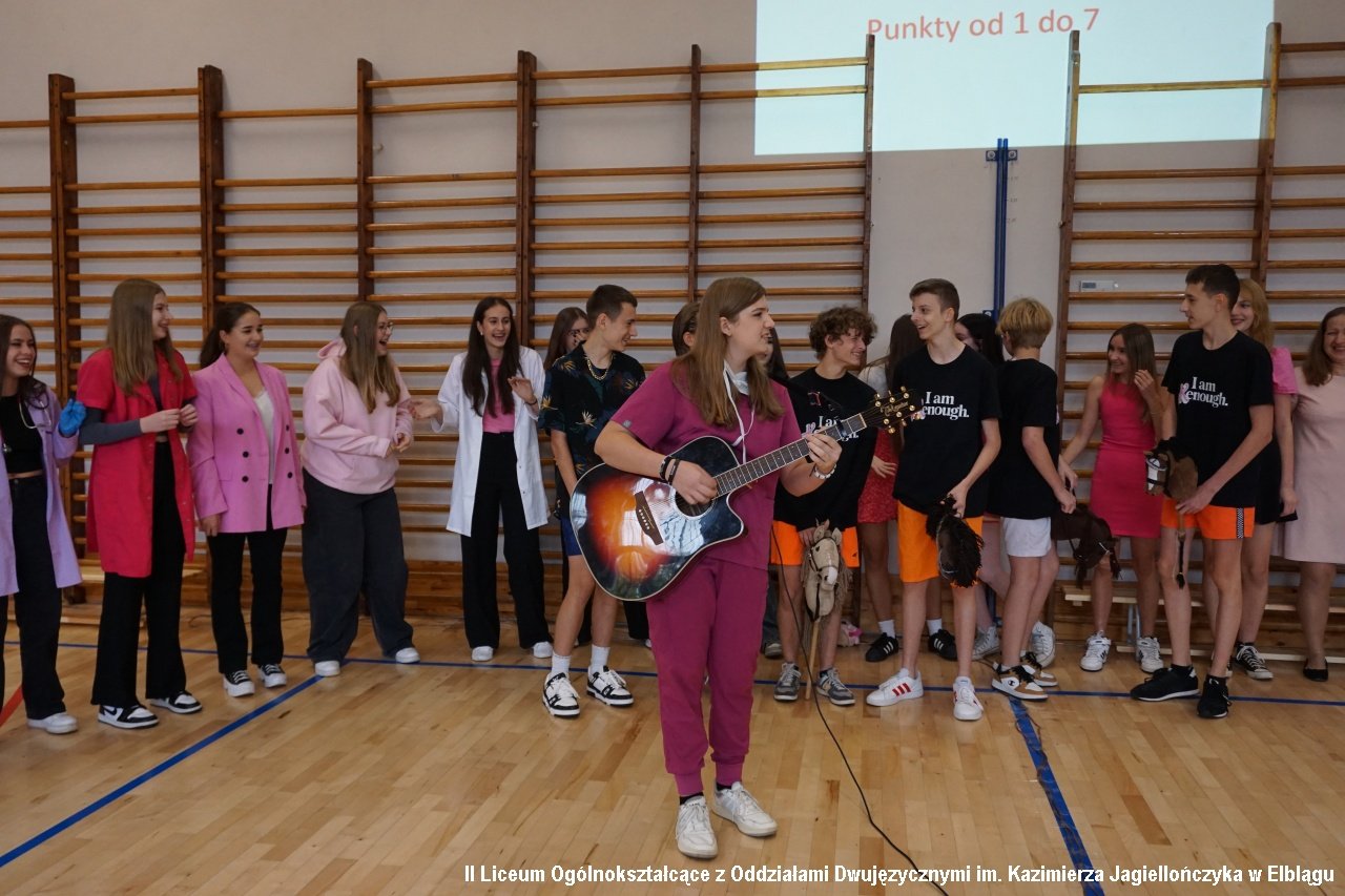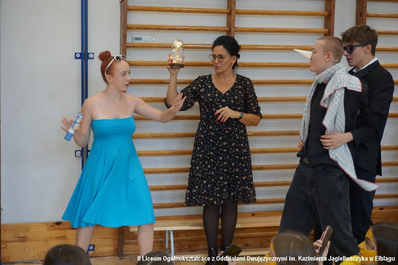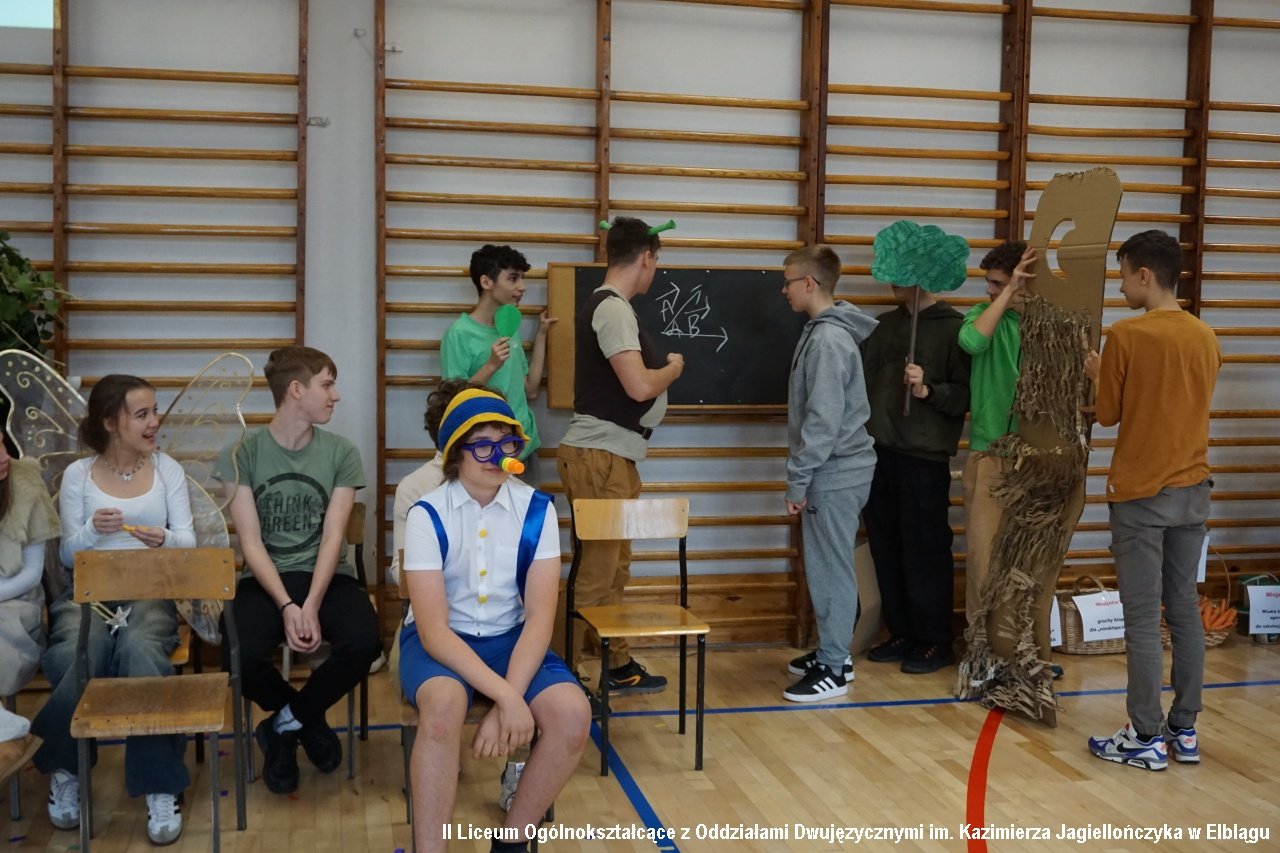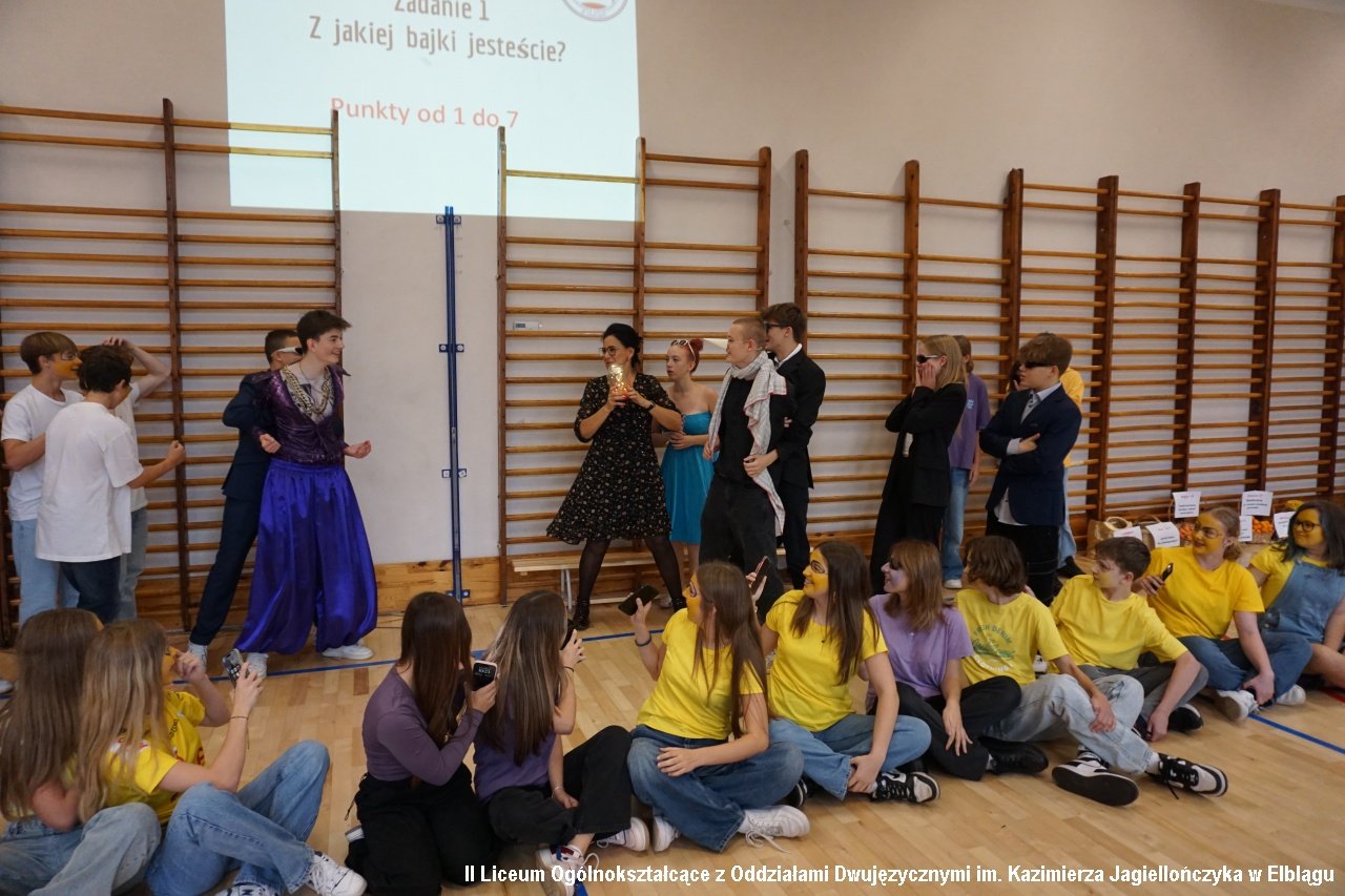Klasy musiały przygotować się wcześniej do konkurencji pt. Z jakiej bajki jesteście? I tak oto na naszej otrzęsinowej scenie znalazły się postaci z bajki Trolle (1a), Vaiana (1b), Barbie (1c), Minionków (1d), Shreka (1e), Toy Story (1f) oraz Z Królewny Śnieżki (1g). Mini-scenki były zabawne, z pomysłem i z przygotowaną bogatą scenografią oraz kostiumami scenicznymi.