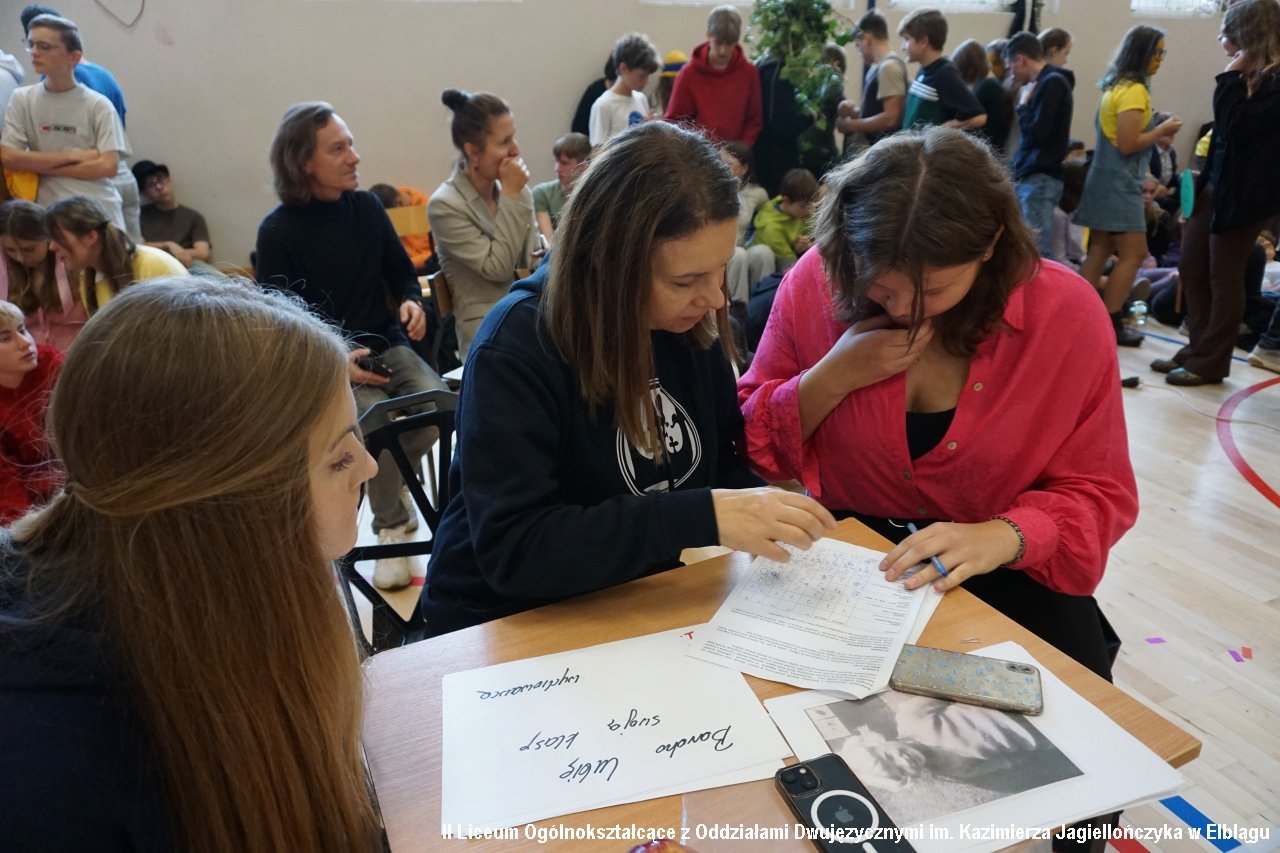Punkty za zadania przyznawała komisja w składzie pani Agnieszka Jurewicz –dyrektor szkoły oraz dziewczyny z samorządu uczniowskiego: Anna Koronowska (4b) i Magdalena Biłas (3d).