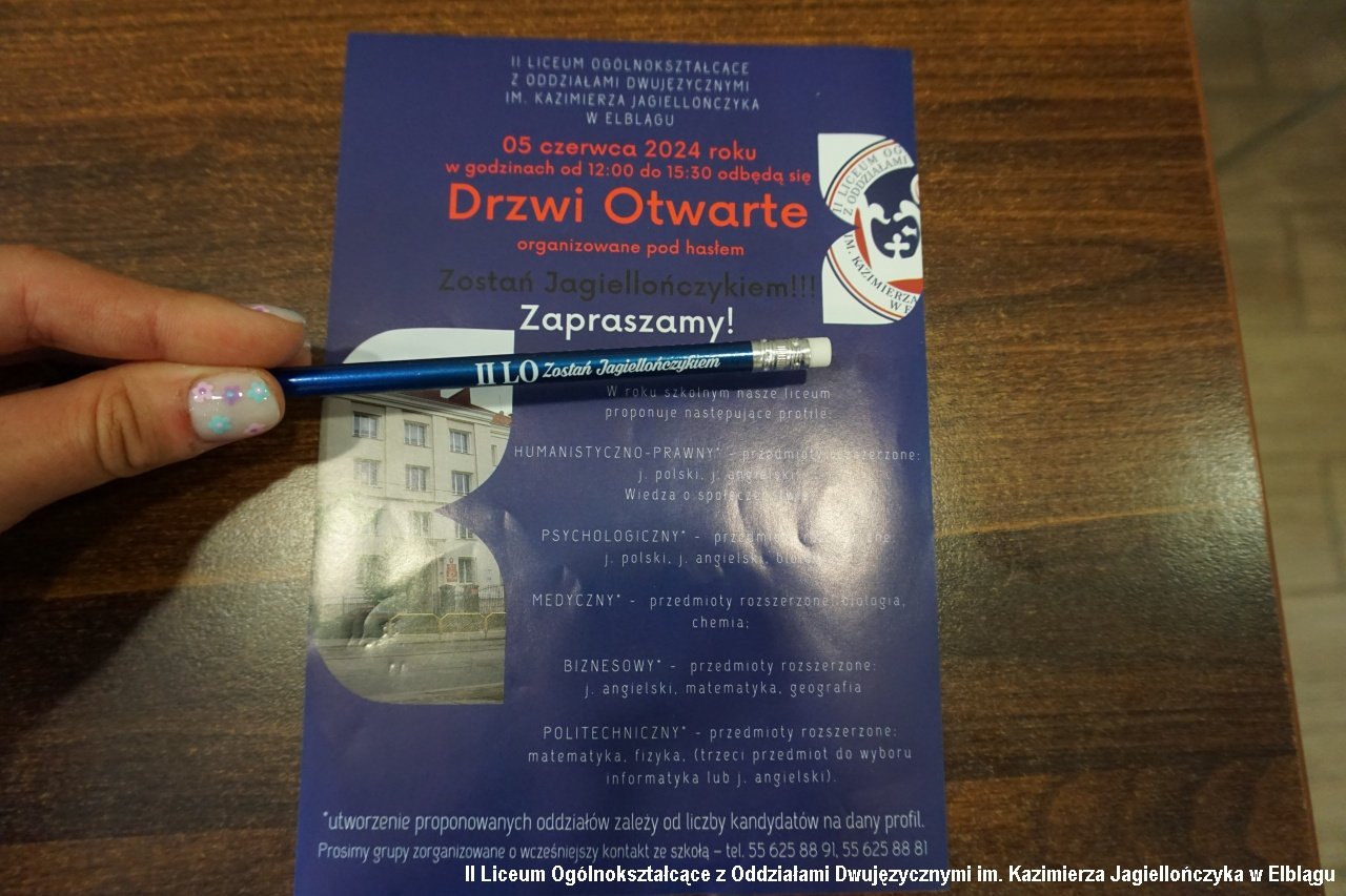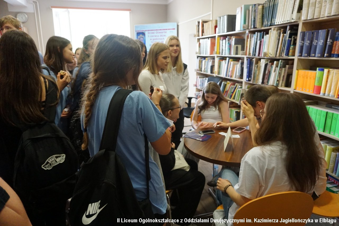 W środę 5 czerwca 2024r. gościliśmy w naszej szkole uczniów klas ósmych szkół podstawowych. Z przyjemnością otworzyliśmy drzwi wielu gabinetów i sal, by zaprezentować wyposażenie i infrastrukturę naszego liceum. Zależało nam na pokazaniu wielu zajęć różnotematycznych, które realizowane są na lekcjach. Chcieliśmy podkreślić, że szkoła to nie tylko nauka, że bezcenna jest jej aura, a u nas panuje ciepły rodzinny klimat, a Rodzina Jagiellończyka sedecznie powita nowych jej członków.