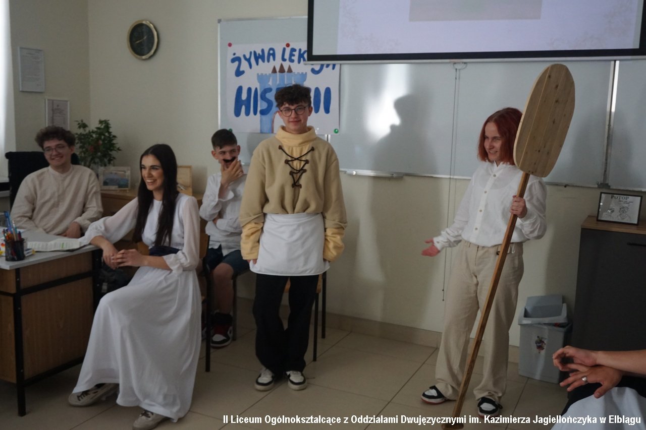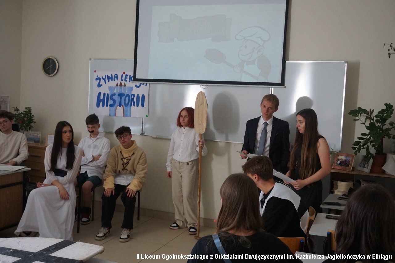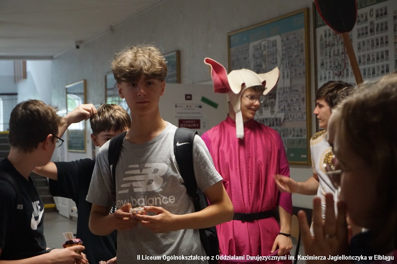 Przedstawienie pt. „Tego na pewno nie wiecie. O pewnej legendzie z Elbląga” w sposób zabawny zaprezentowało szkolną wersję naszej elbląskiej legendy. Piekarczyk przechadzał się po korytarzach wraz naszym patronem królem Kazimierzem Jagiellończykiem oraz wspomnianymi wcześniej szkolnymi szczurkami.