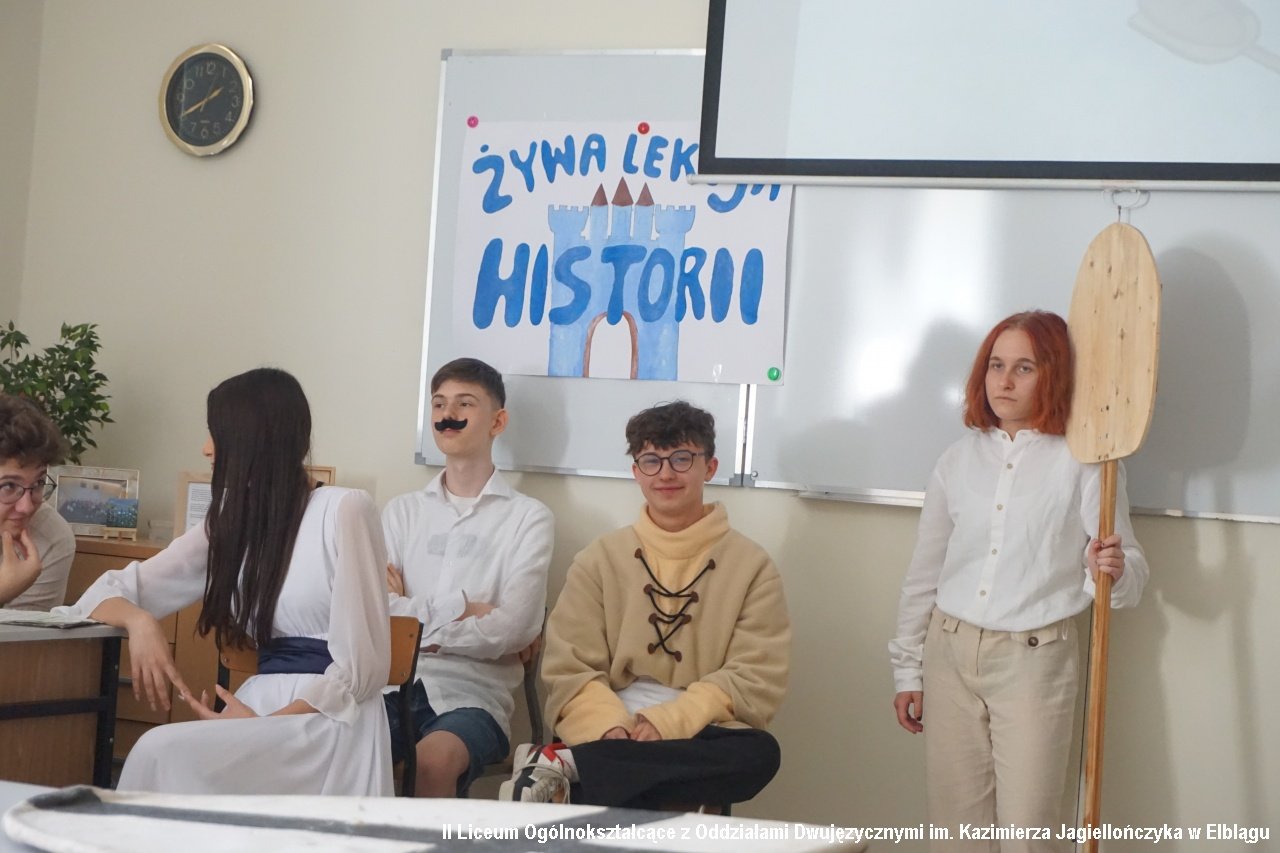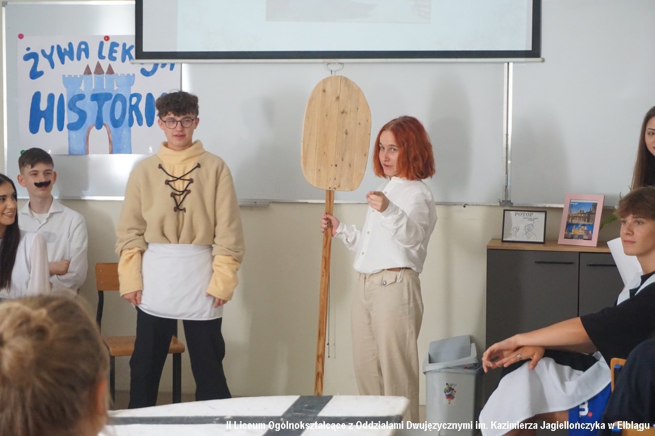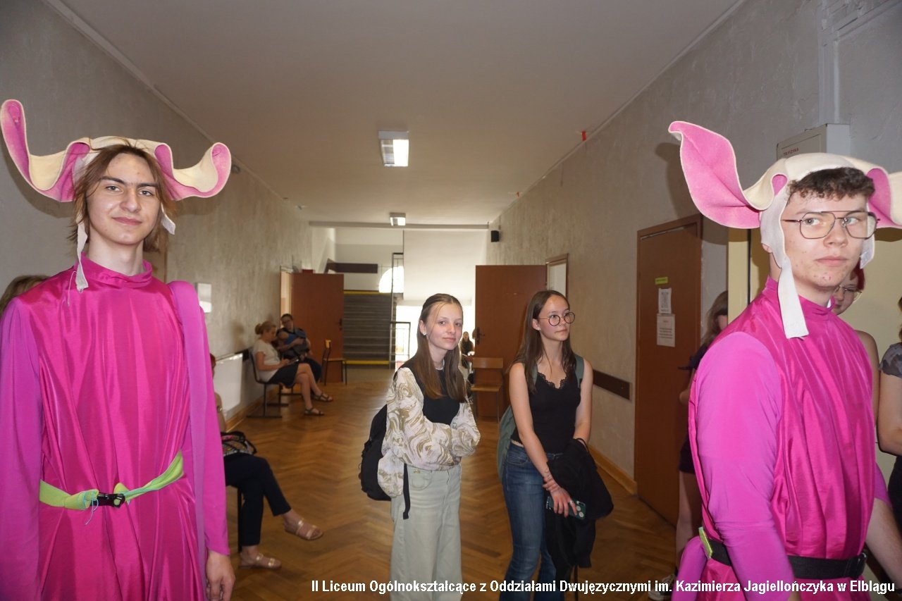 Przedstawienie pt. „Tego na pewno nie wiecie. O pewnej legendzie z Elbląga” w sposób zabawny zaprezentowało szkolną wersję naszej elbląskiej legendy. Piekarczyk przechadzał się po korytarzach wraz naszym patronem królem Kazimierzem Jagiellończykiem oraz wspomnianymi wcześniej szkolnymi szczurkami.