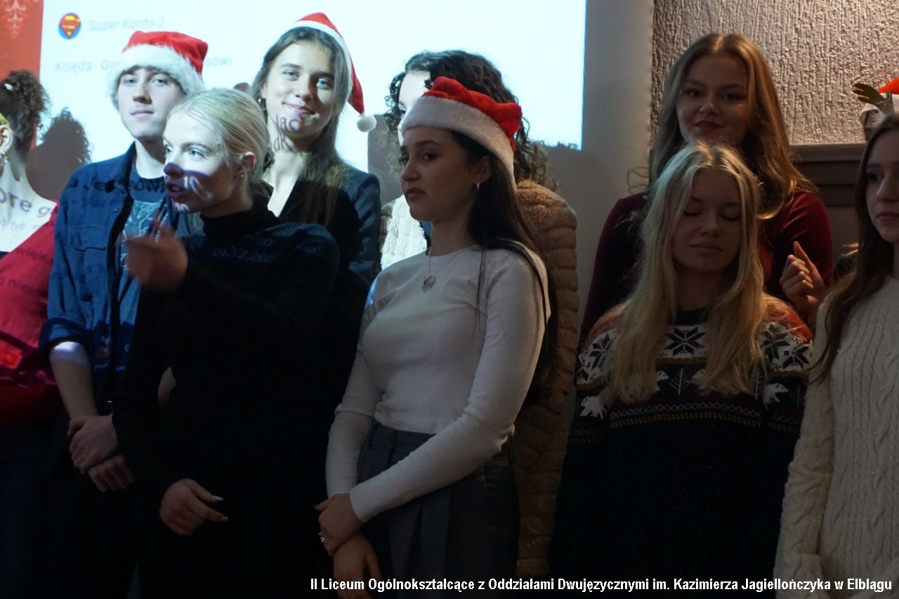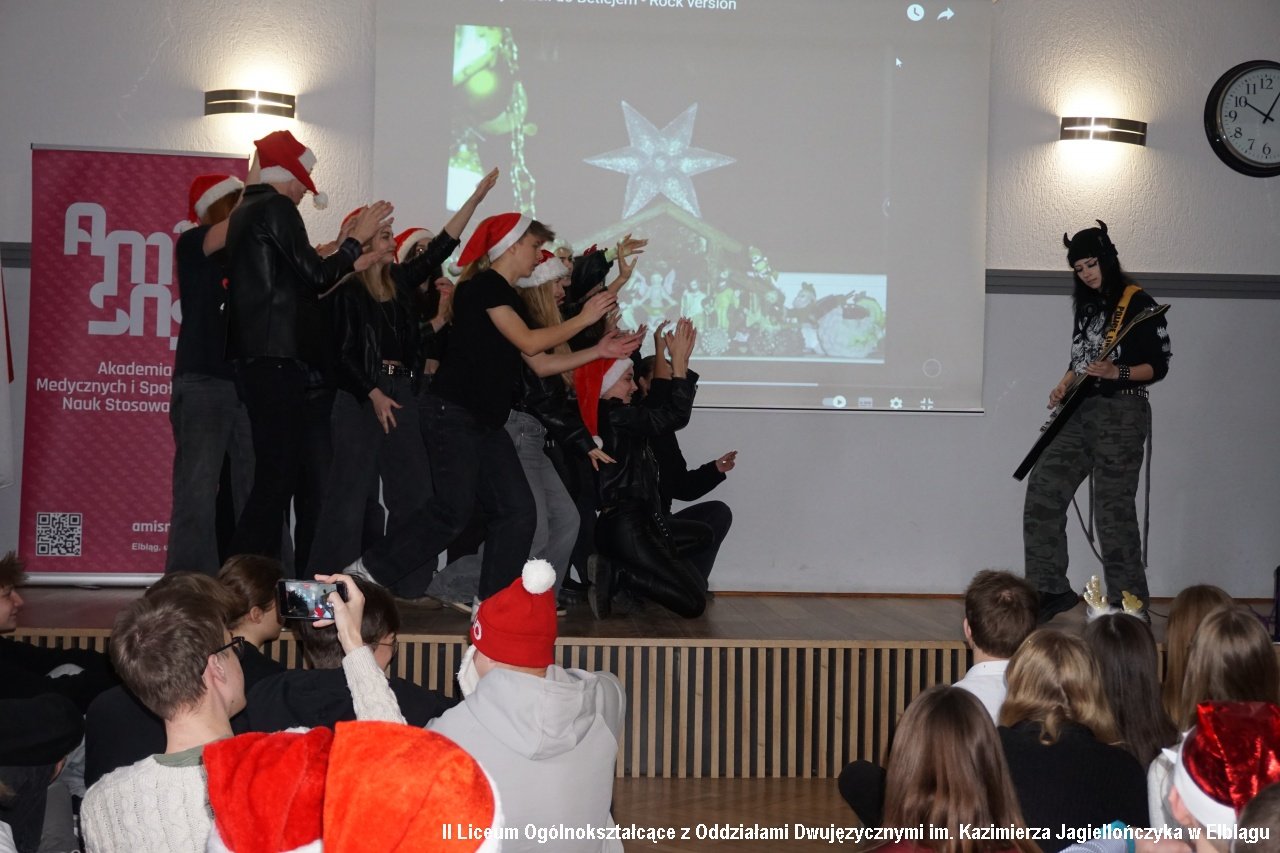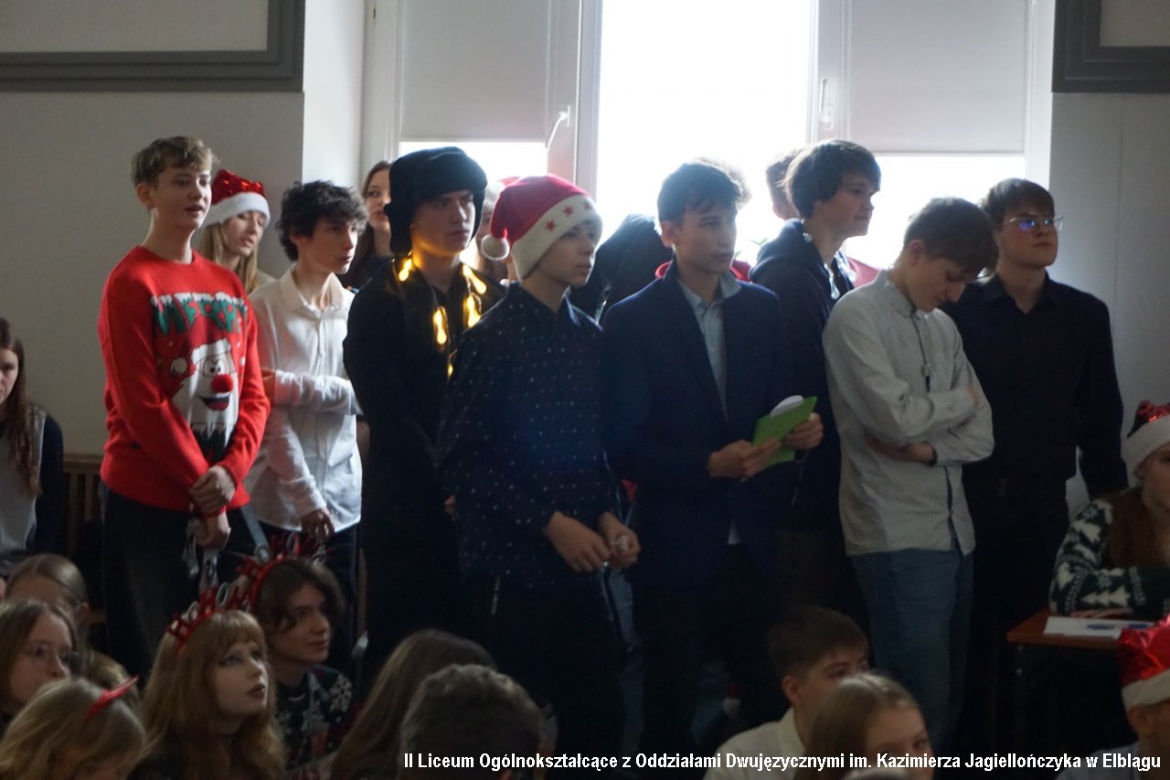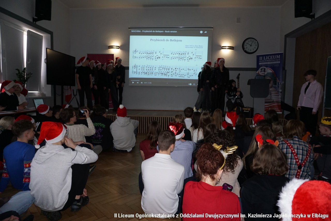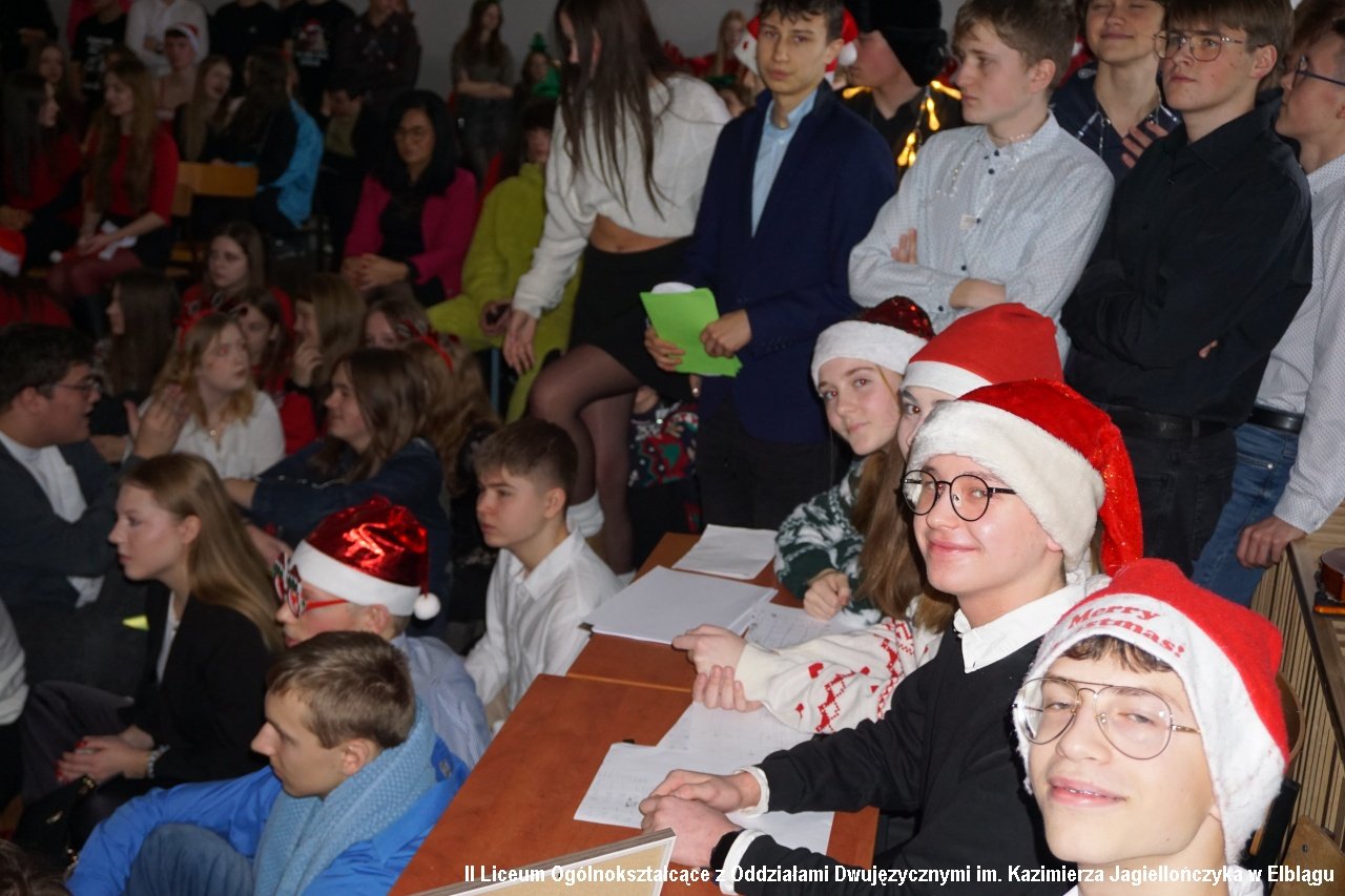 W świątecznym śpiewaniu wzięły udział prawie wszystkie klasy. Zaskoczyła nas różnorodność interpretacji, pomysły na wykonanie kolęd, kreatywne aranżacje a przede wszystkim cudowny klimat świąteczny.