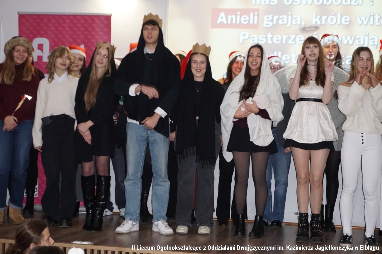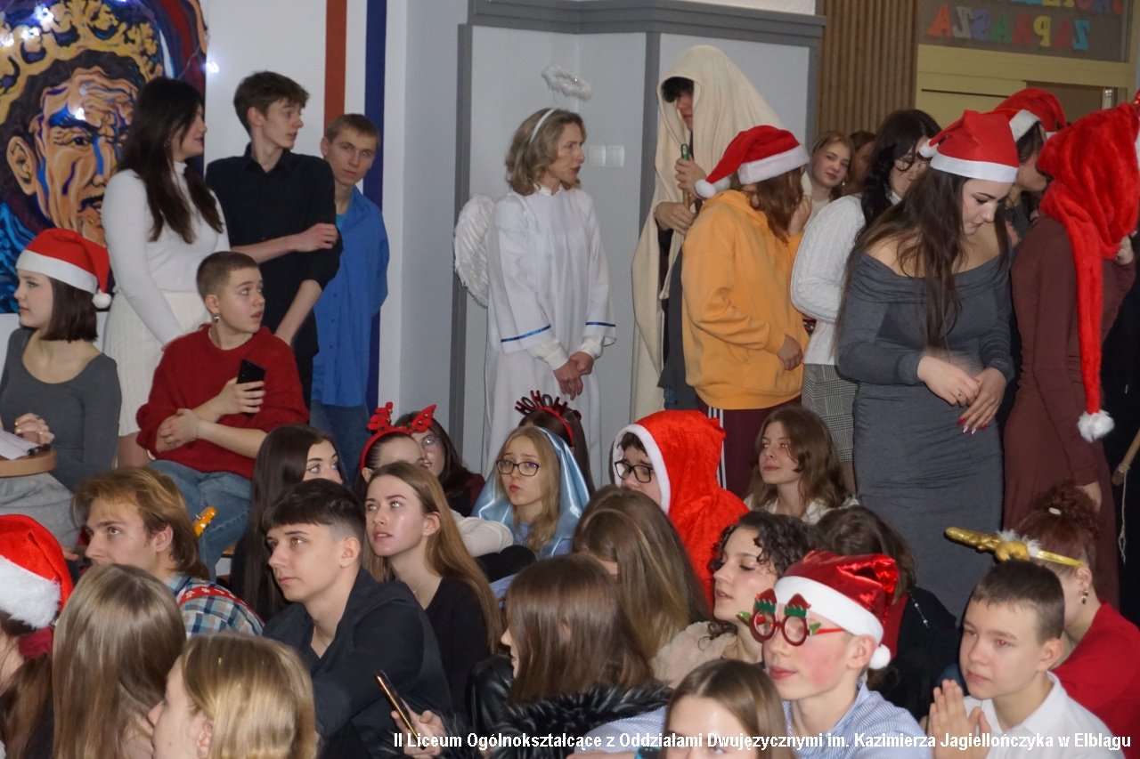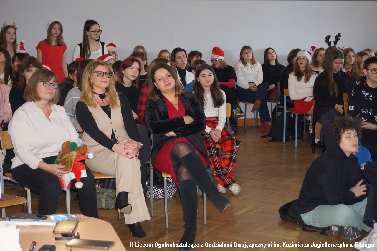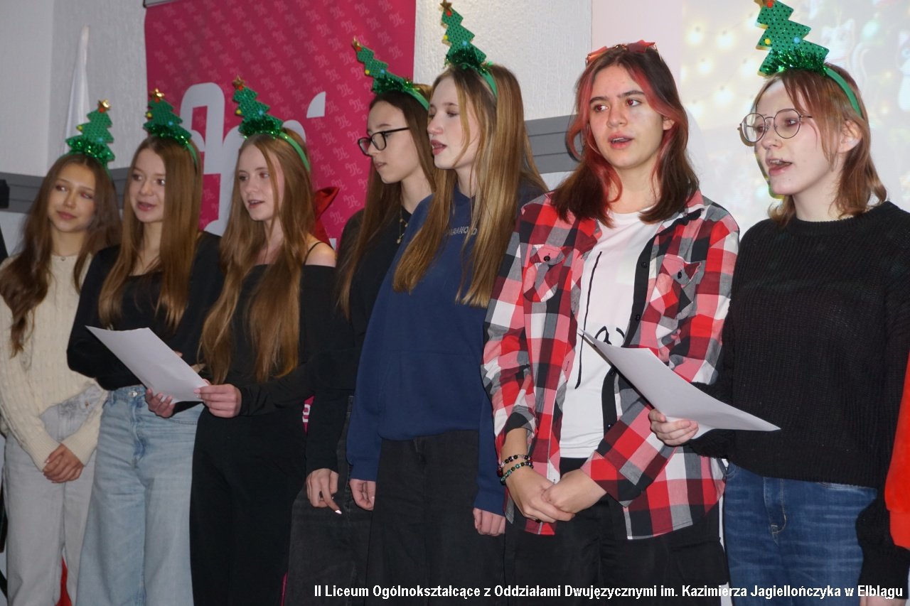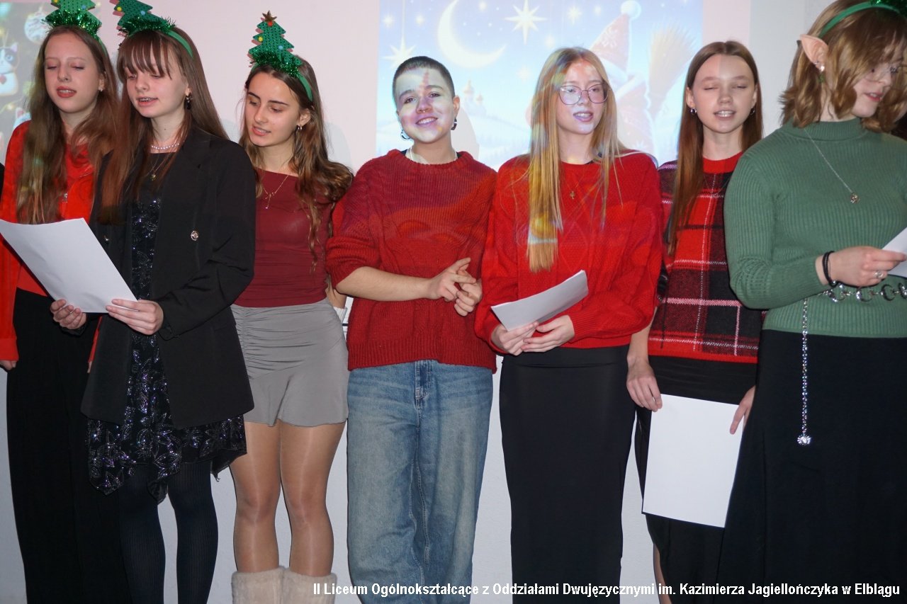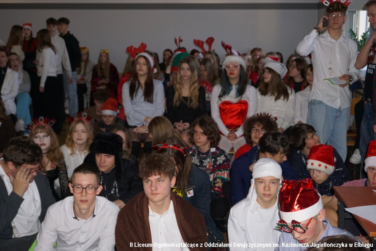 W świątecznym śpiewaniu wzięły udział prawie wszystkie klasy. Zaskoczyła nas różnorodność interpretacji, pomysły na wykonanie kolęd, kreatywne aranżacje a przede wszystkim cudowny klimat świąteczny.
