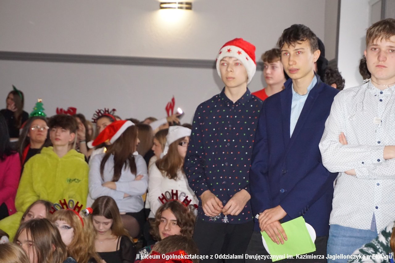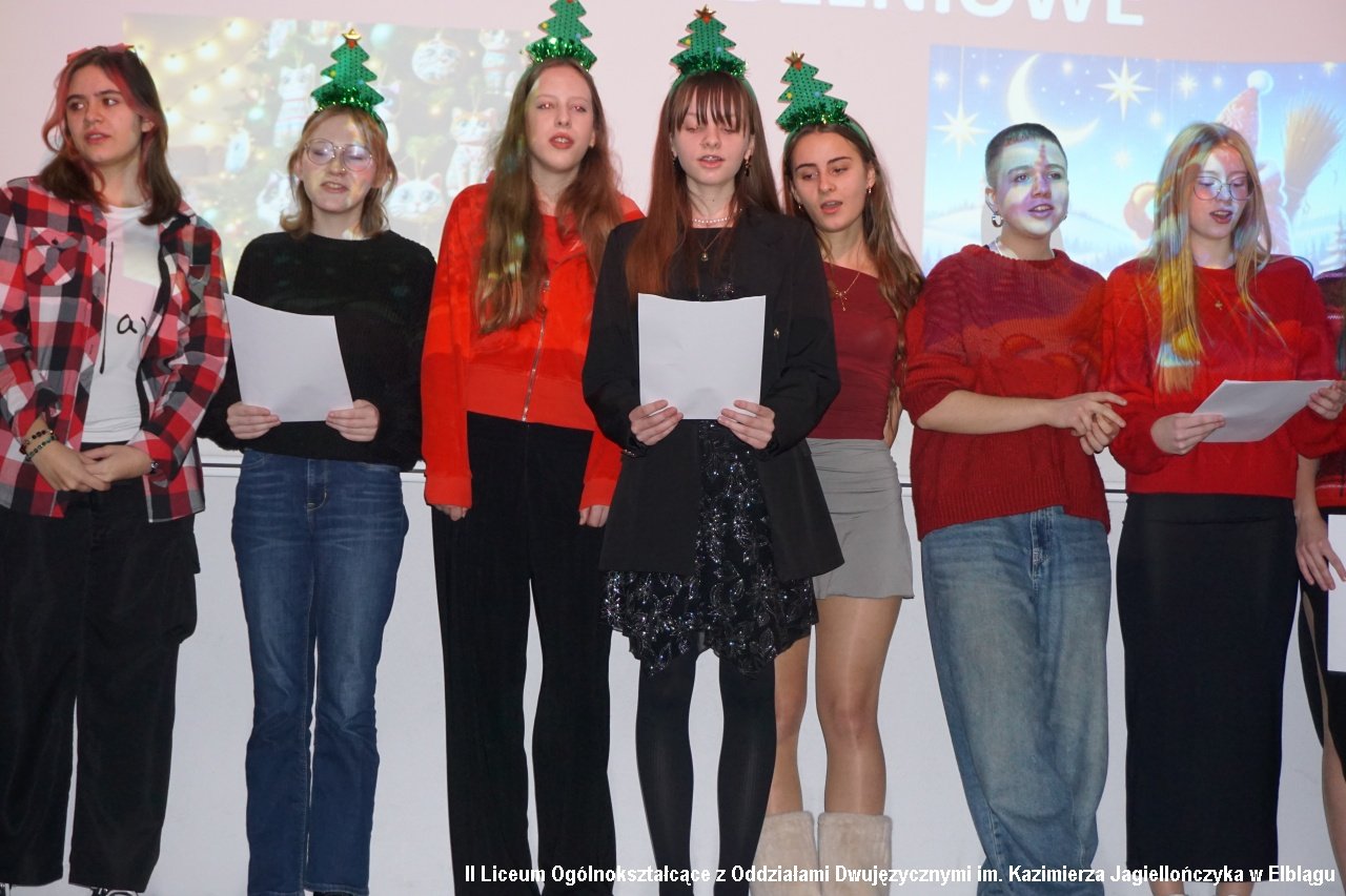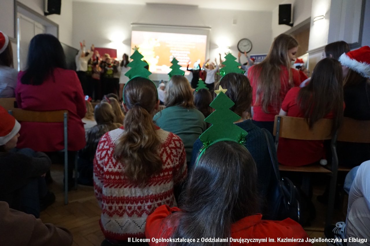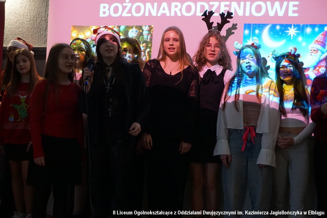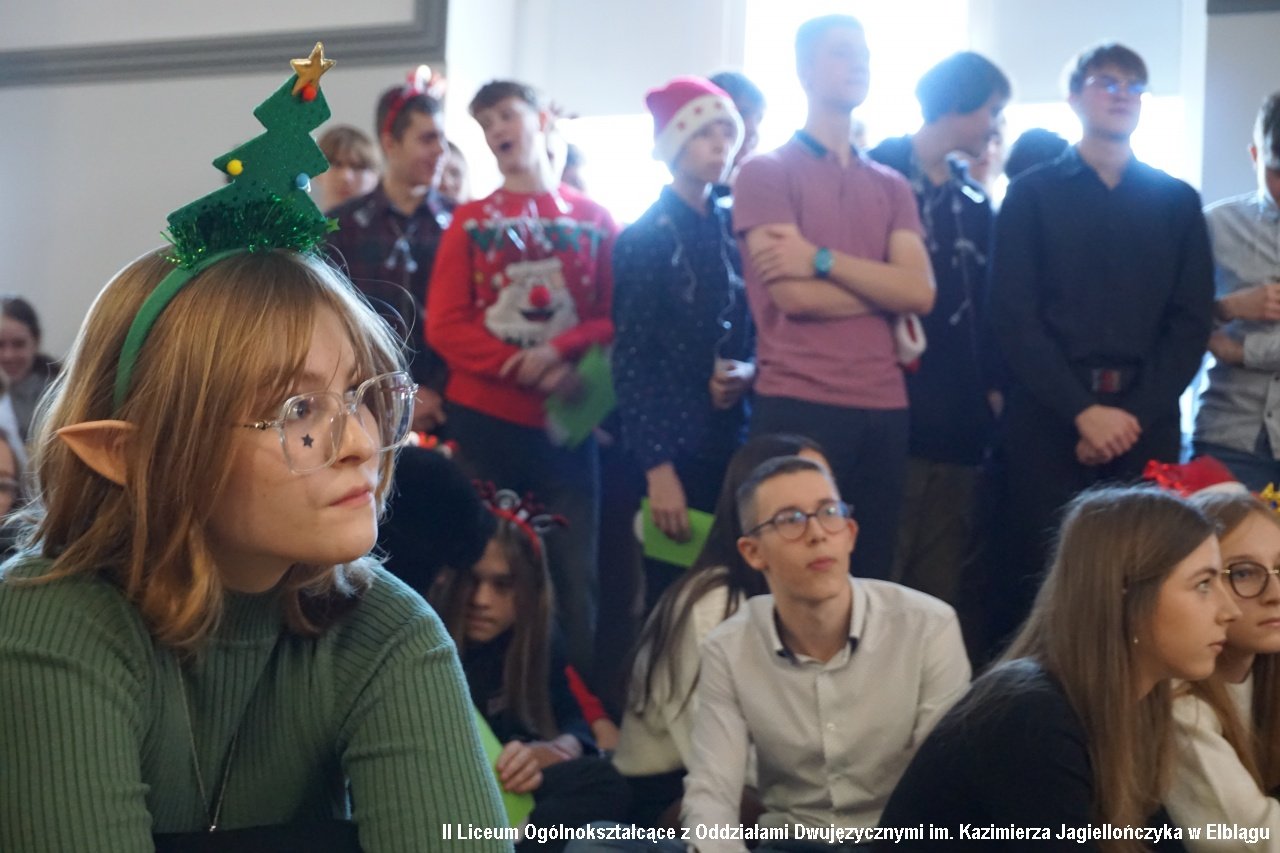 W świątecznym śpiewaniu wzięły udział prawie wszystkie klasy. Zaskoczyła nas różnorodność interpretacji, pomysły na wykonanie kolęd, kreatywne aranżacje a przede wszystkim cudowny klimat świąteczny.