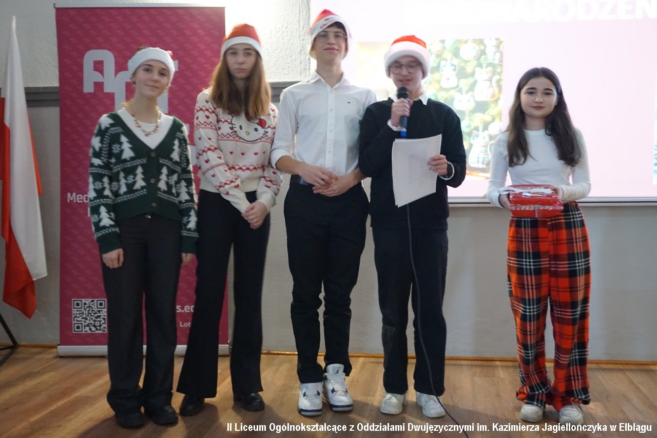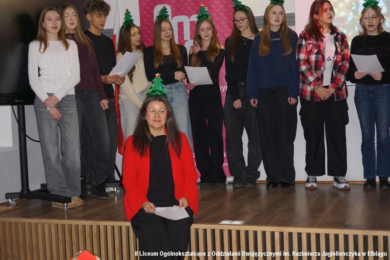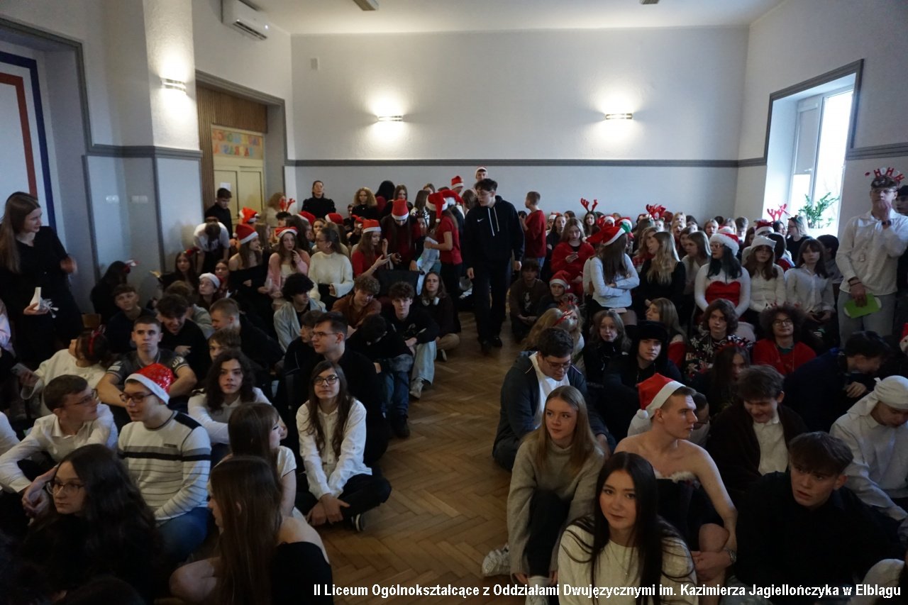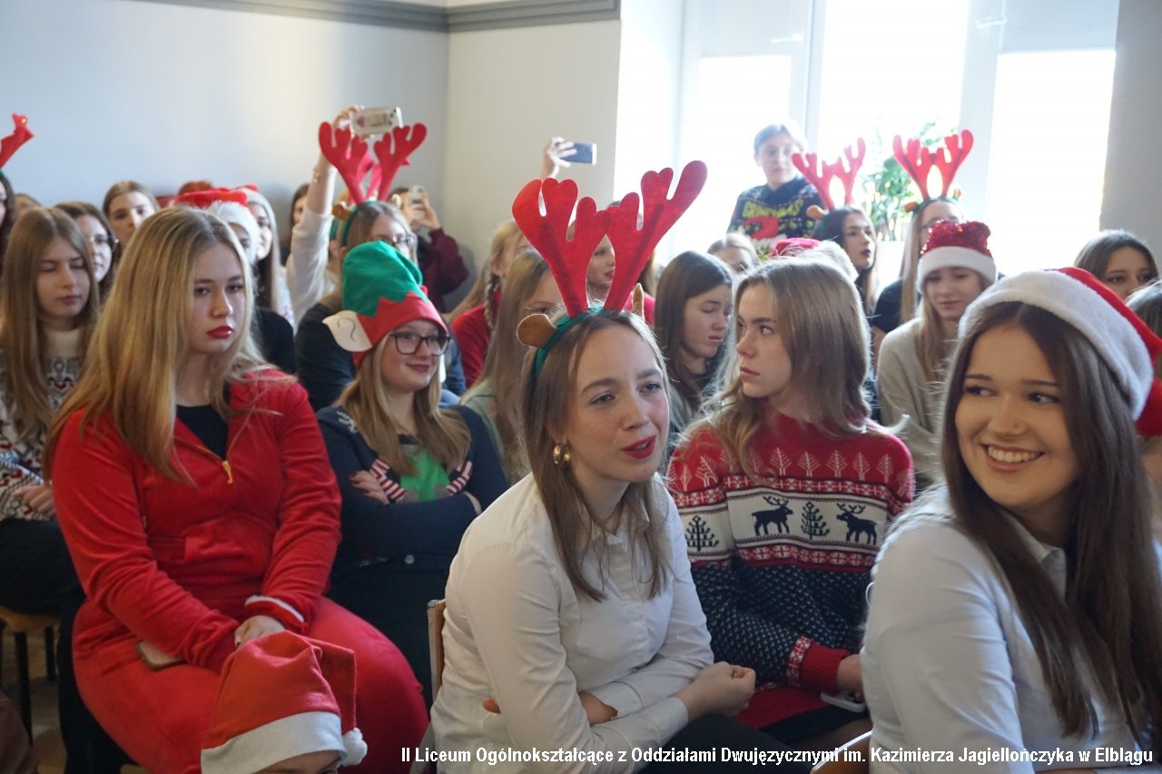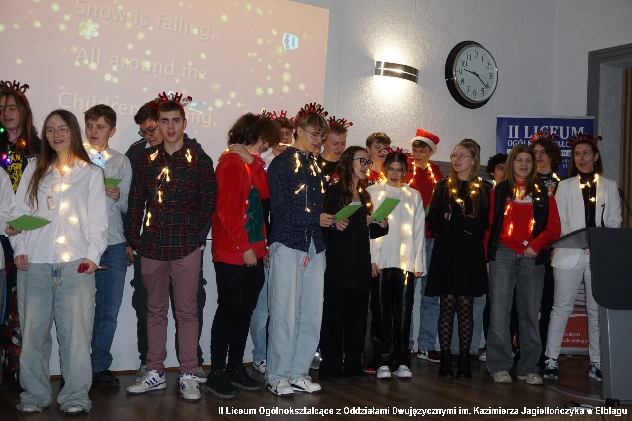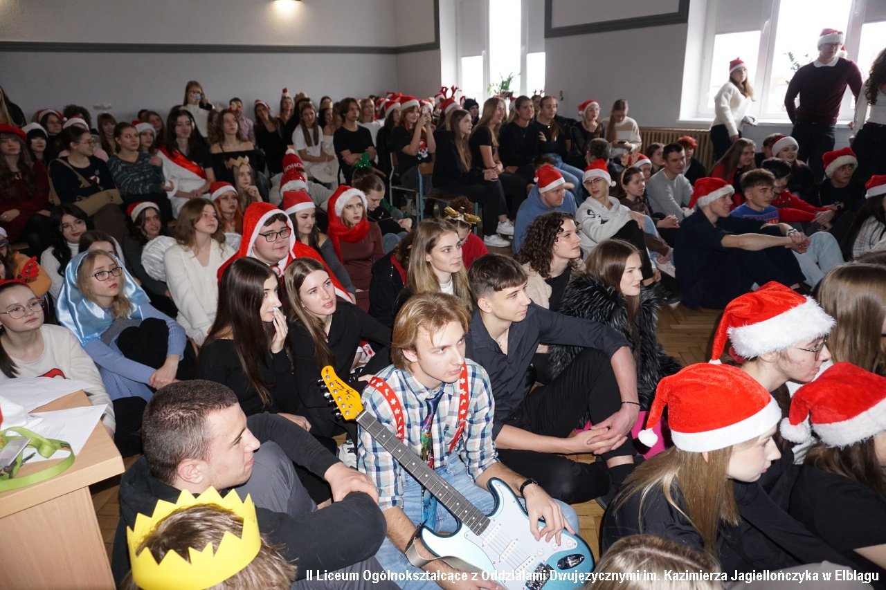 W świątecznym śpiewaniu wzięły udział prawie wszystkie klasy. Zaskoczyła nas różnorodność interpretacji, pomysły na wykonanie kolęd, kreatywne aranżacje a przede wszystkim cudowny klimat świąteczny.