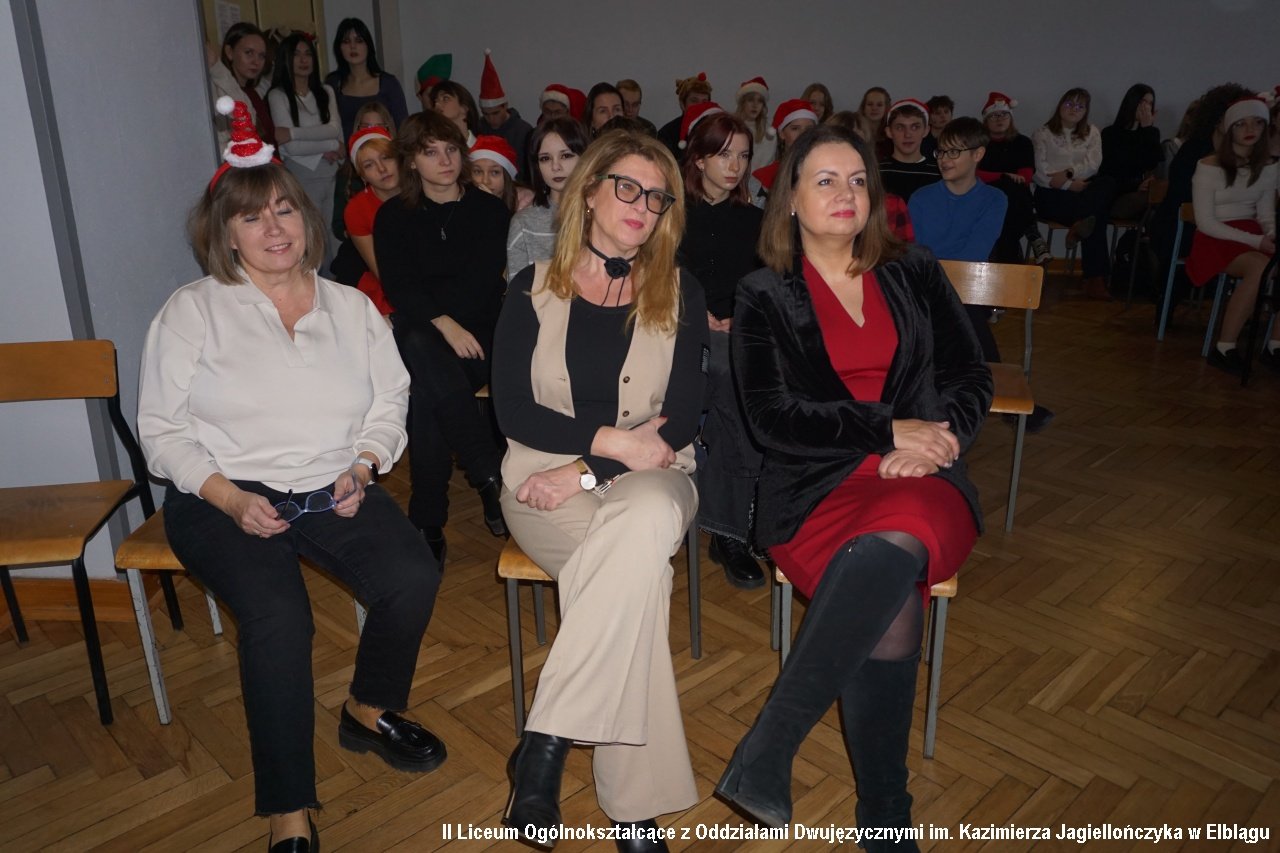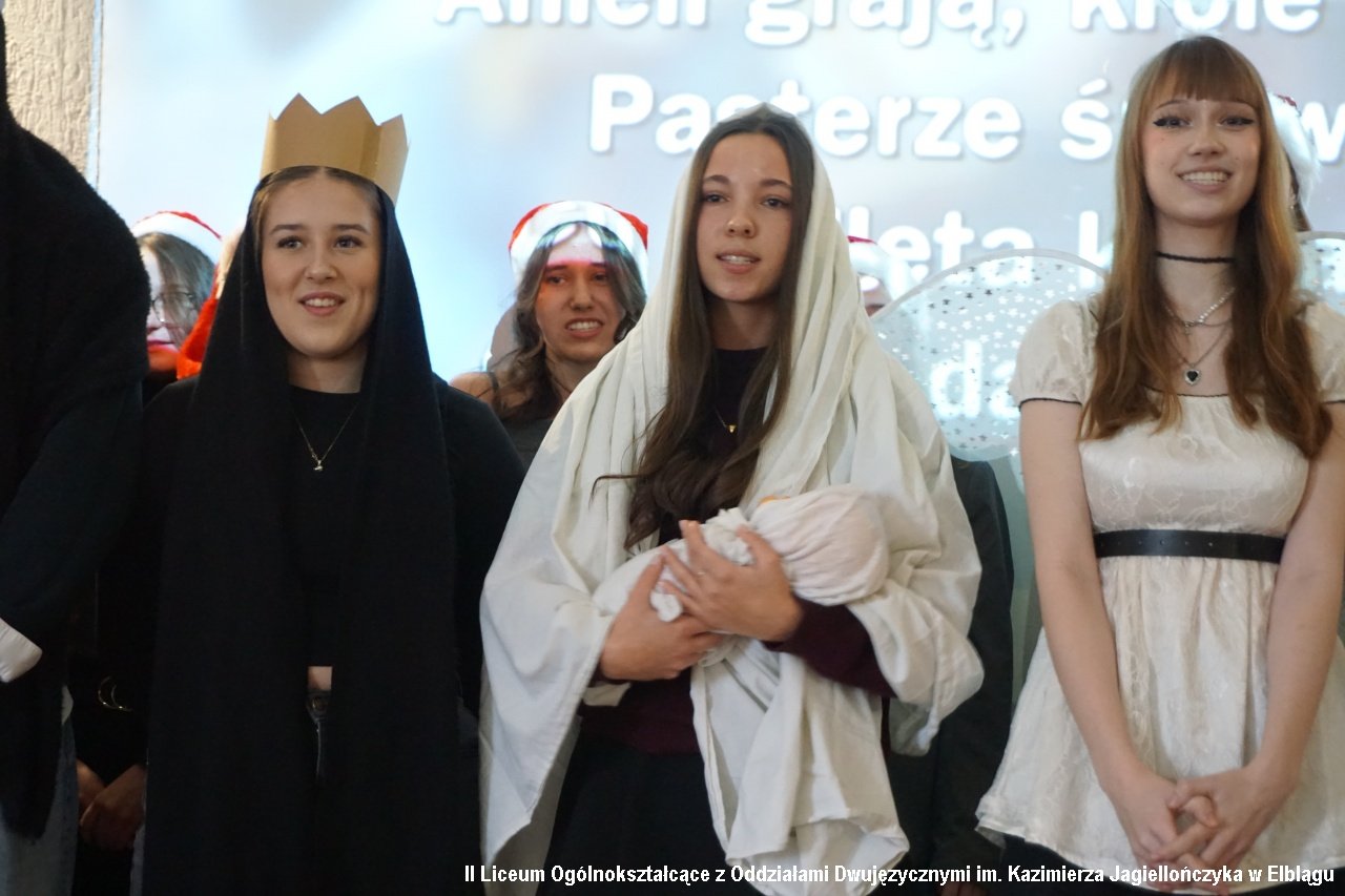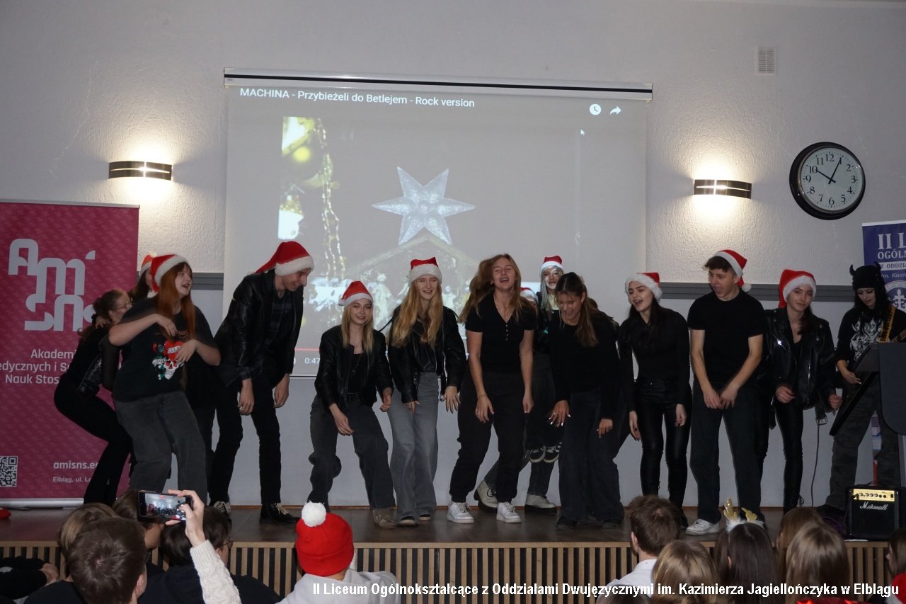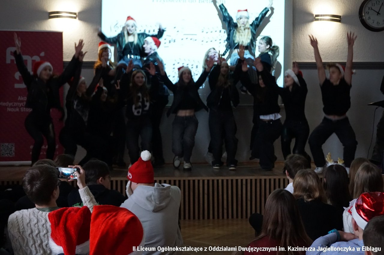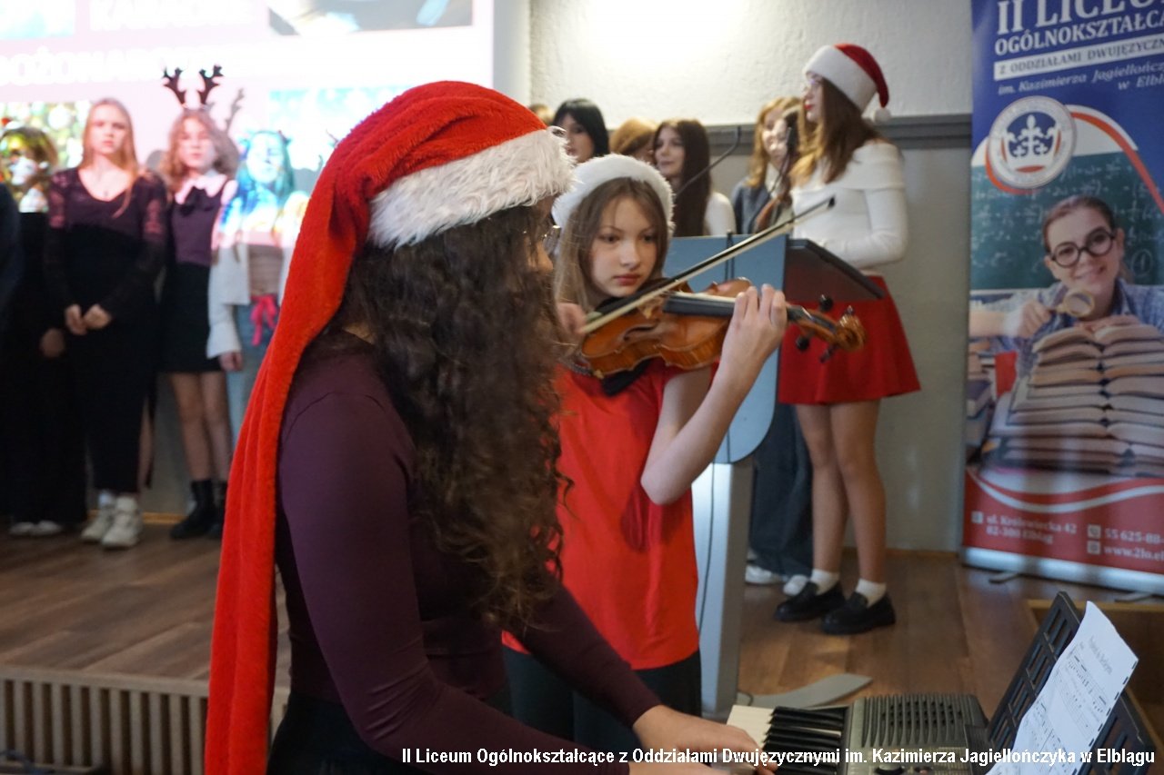 W świątecznym śpiewaniu wzięły udział prawie wszystkie klasy. Zaskoczyła nas różnorodność interpretacji, pomysły na wykonanie kolęd, kreatywne aranżacje a przede wszystkim cudowny klimat świąteczny.