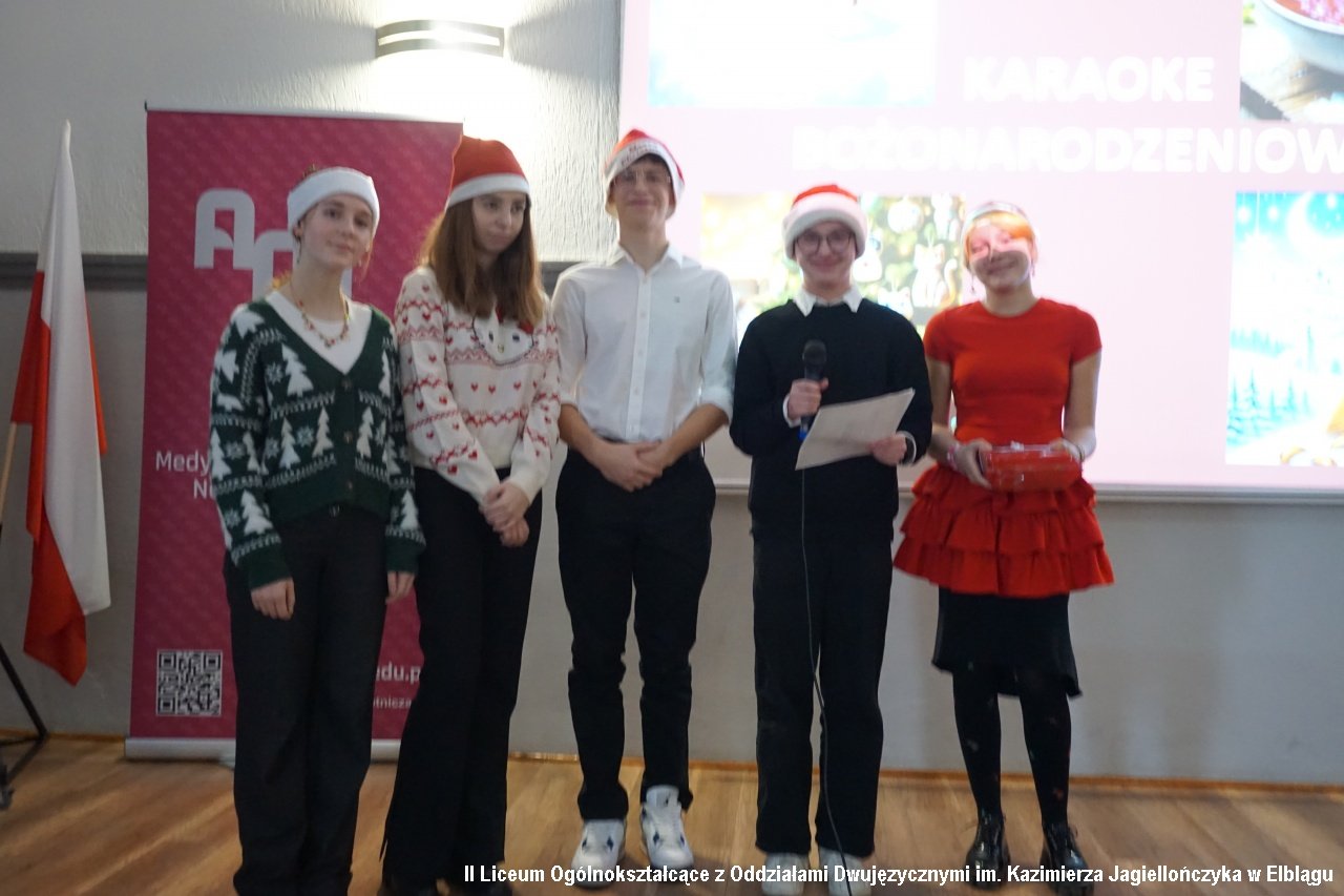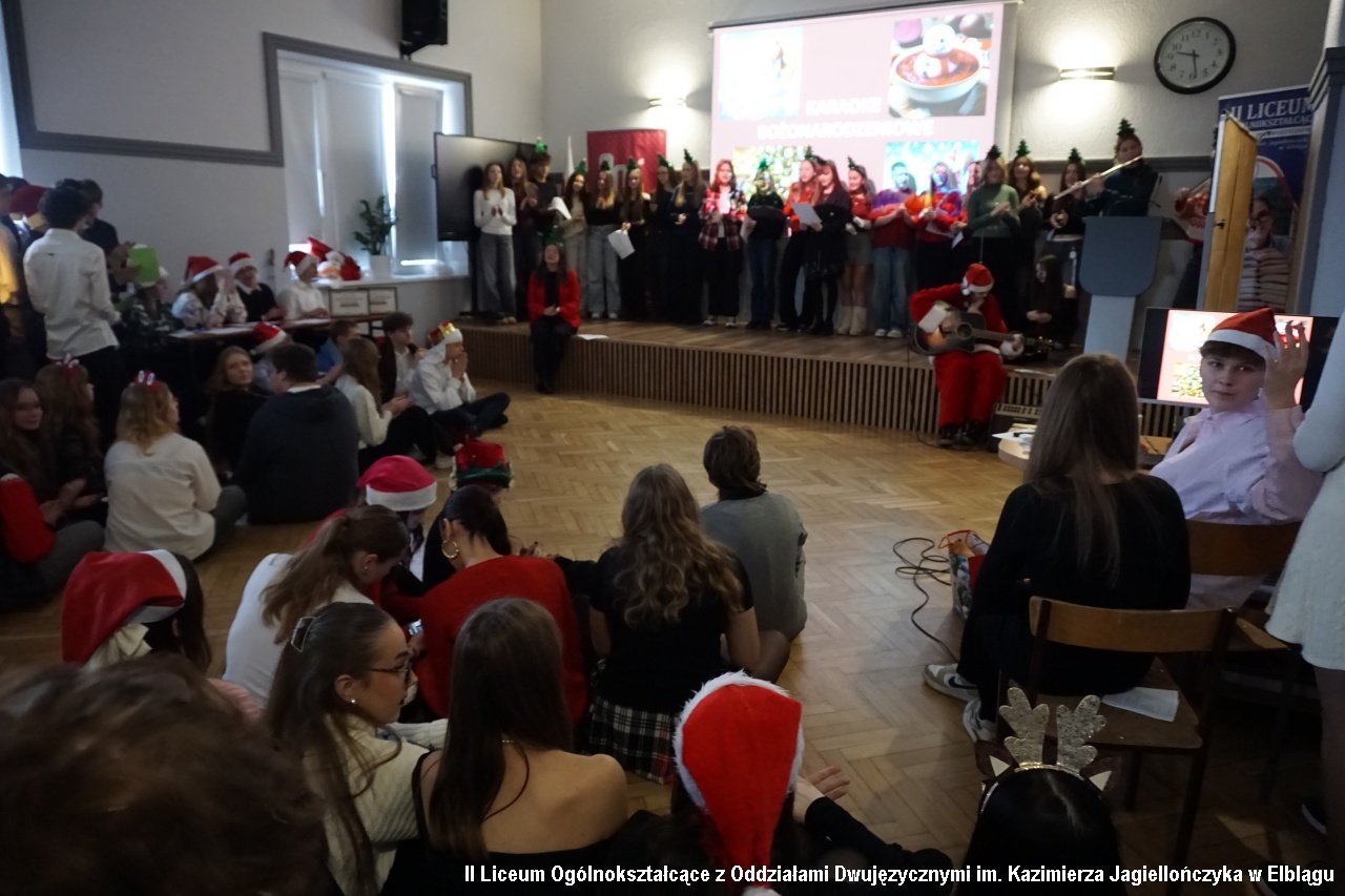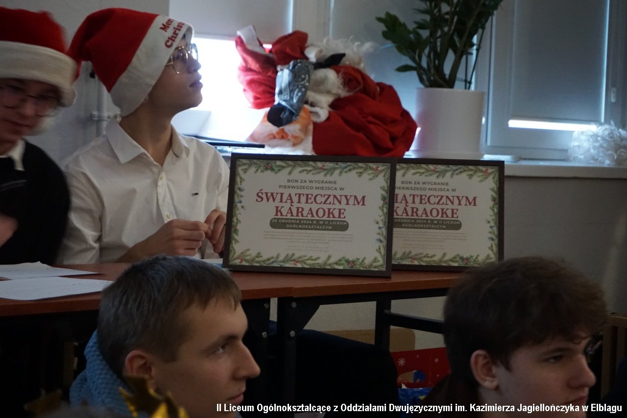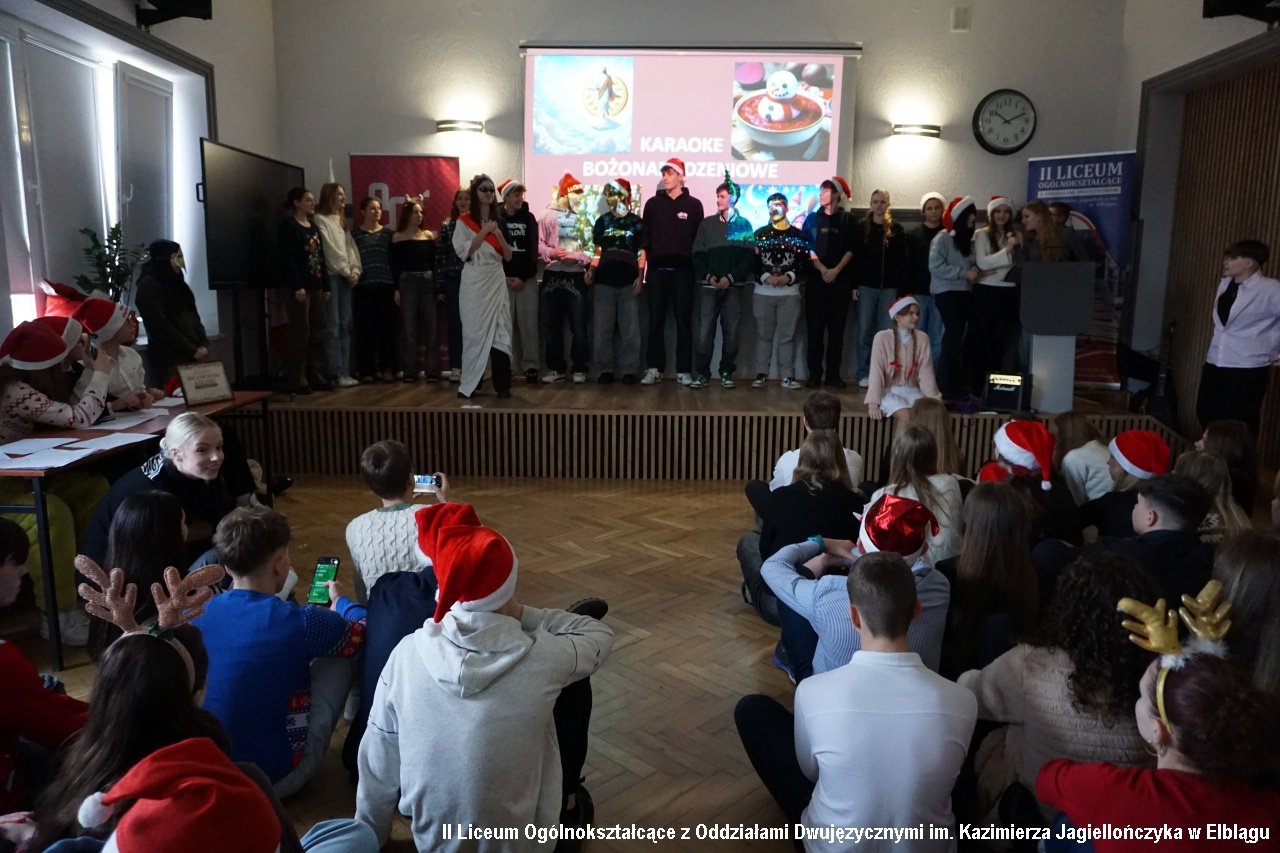 Ostatniego dnia szkoły przed przerwą Świąt Bożego Narodzenia Samorząd Uczniowski zorganizował karaoke kolęd i piosenek świątecznych??????.