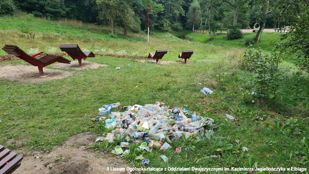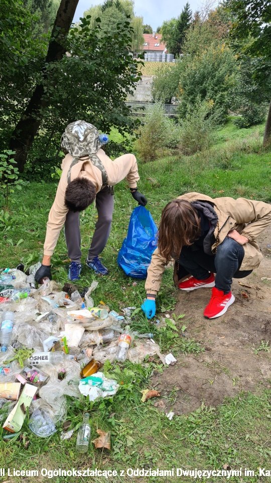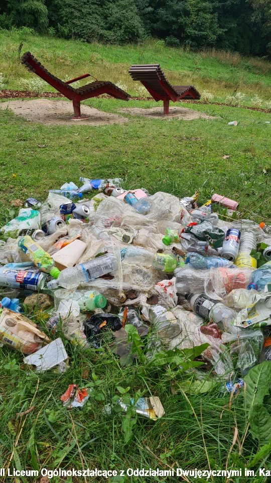 II LO również aktywnie bierze udział w tej zacnej akcji. Z jednej strony pomagamy Ziemi, z drugiej jest to porządkowanie i poprawianie estetyki najbliższego otoczenia. Jak bardzo jest ono zabrudzone, jak bardzo zaśmiecone mogła przekonać się klasa IIIE, która wyruszyła na sprzątanie do Parku Dolinka. Park Dolinka to cudowne miejsce zieleni w samym środku miasta. Niestety w centralnym punkcie placyku do wypoczynku, na którym znajdują się drewniane siedziska/fotele znajduje się śmietnisko puszek, butelek po alkoholu i innych śmieci. Smutne i przykre. Było co sprzątać! :-(