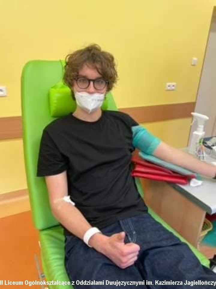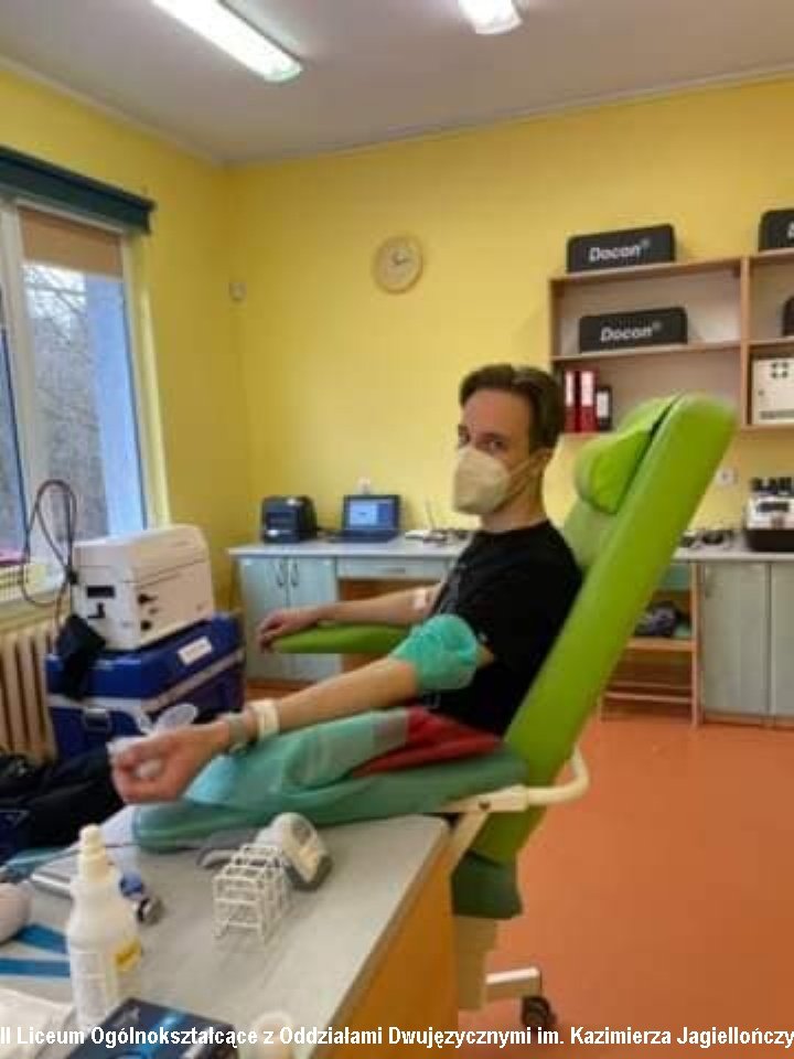 Kolejny raz uczniowie klasy IVD udali się do Regionalnego Centrum Krwiodawstwa i Krwiolecznictwa. Małgosia, Jakub, Filip i Jakub oddali łącznie 1800 ml krwi. Serdecznie gratulujemy ich zaangażowania i dobroci! Jednocześnie zachęcamy wszystkich uczniów, którzy ukończyli już 18 rok życia do zaangażowania w klubie krwiodawcy działającym w naszej szkole. Bliższych informacji i pomocy w zgłoszeniu się na donacje krwi udziela ks. Marek Piedziewicz.