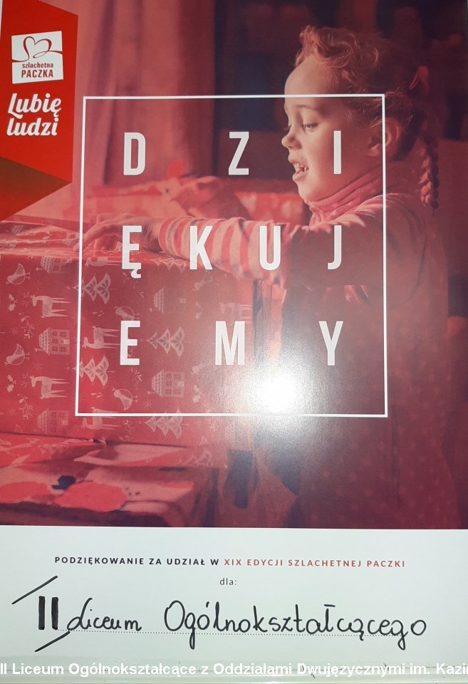 Podziękowania dla uczniów klas: 1a,1b,1c,1f,1A,1C,1D,1F,2B,2E, 3C, jednej osoby z 1d oraz ich rodziców, którzy zaangażowali się w tę akcję.