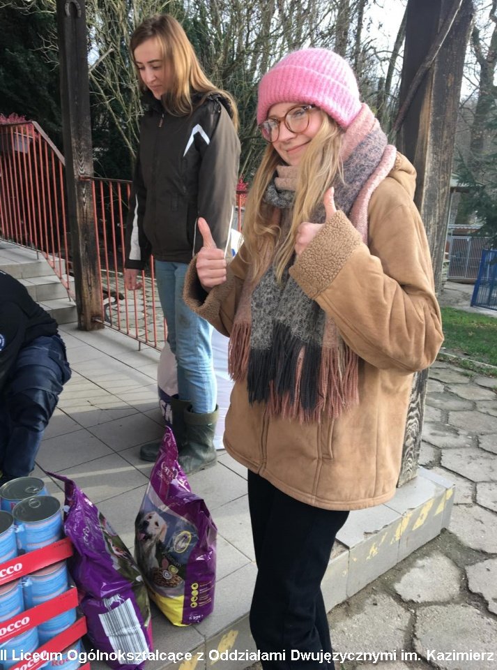 IIIB ze świąteczną wizytą w elbląskim Schronisku dla Bezdomnych ZwierzątW wielu szkołach tradycją jest, że uczniowie podczas klasowych spotkań wigilijnych wręczają sobie również drobne podarunki. Uczniowie IIIB w tym roku postanowili od tej tradycji odejść, a za pieniądze, które mieliby przeznaczyć na upominki dla koleżanek i kolegów, kupili karmę dla bezdomnych zwierząt.