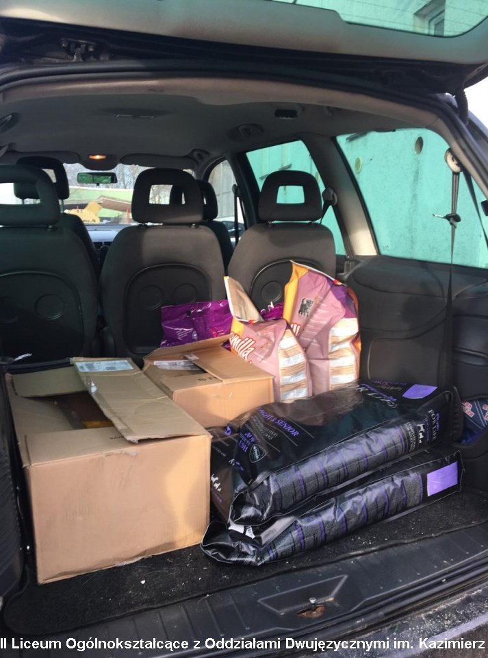 W poniedziałek, 16 grudnia Wiktoria, Agata, Kaja i Maciek odwiedzili elbląskie schronisko i zawieźli tam w prezencie od IIIB 50 puszek mokrej karmy oraz 60 kg suchej karmy dla naszych "braci mniejszych". Zwierzaki ze schroniska bardziej potrzebują prezentów niż my.