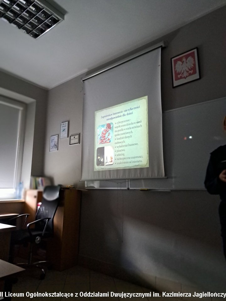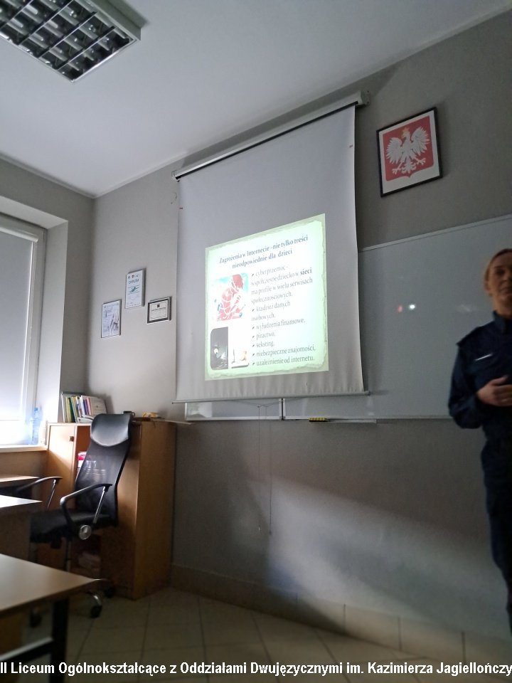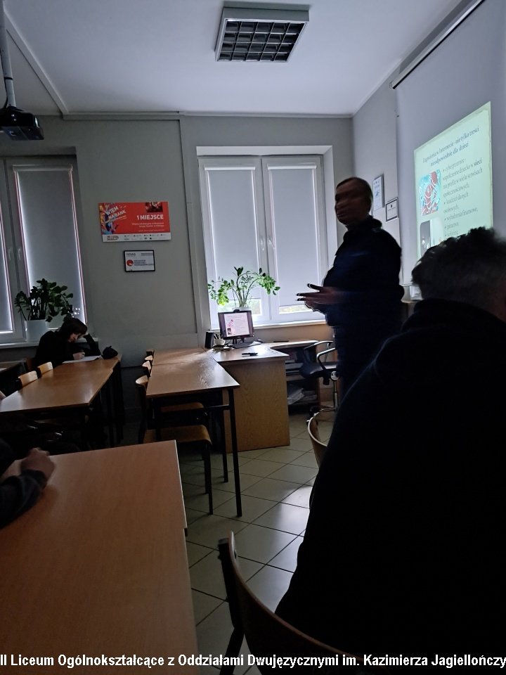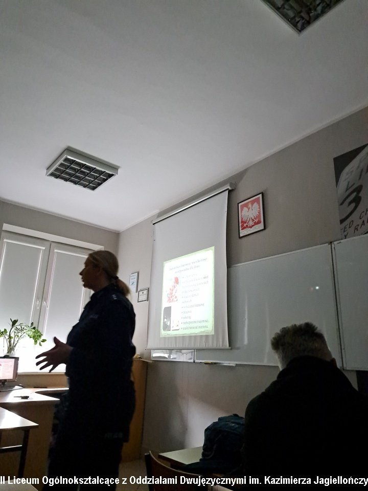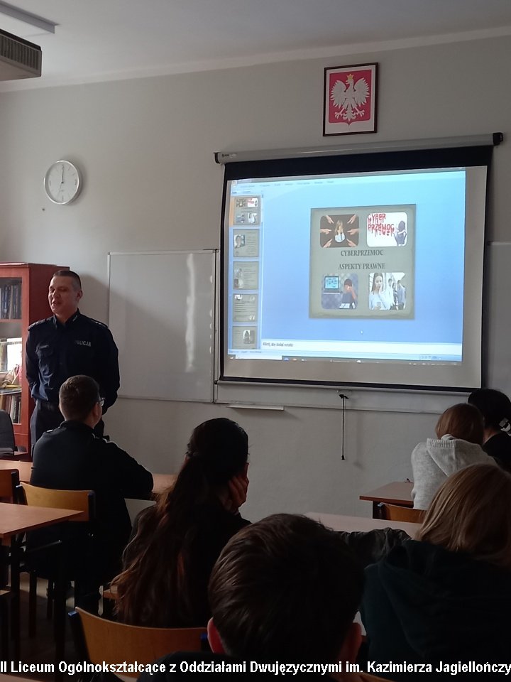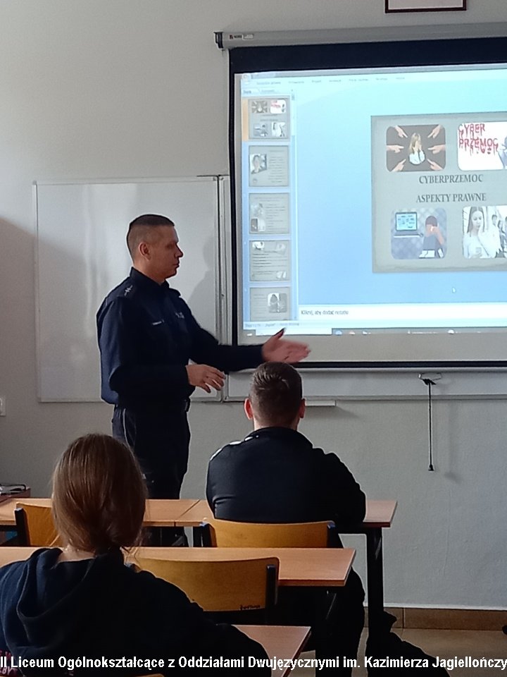 29 października 2024r. uczniowie klas pierwszych uczestniczyli w zajęciach "Odpowiedzialność prawna nastolatków" prowadzone przez kom. K. Stankiewicz i asp. J. Rokowskiego, funkcjonariuszy Komendy Miejskiej Policji w Elblągu. Poruszona została tematyka różnych zachowań ryzykownych występujących u nastolatków, np. cyberprzemocy, przejawów demoralizacji oraz ich prawnych konsekwencji. Szczególną uwagę poświęcono zjawisku hejtu, jego przyczynom i skutkom, a zwłaszcza temu jaki jest jego wpływ na życie młodego człowieka.